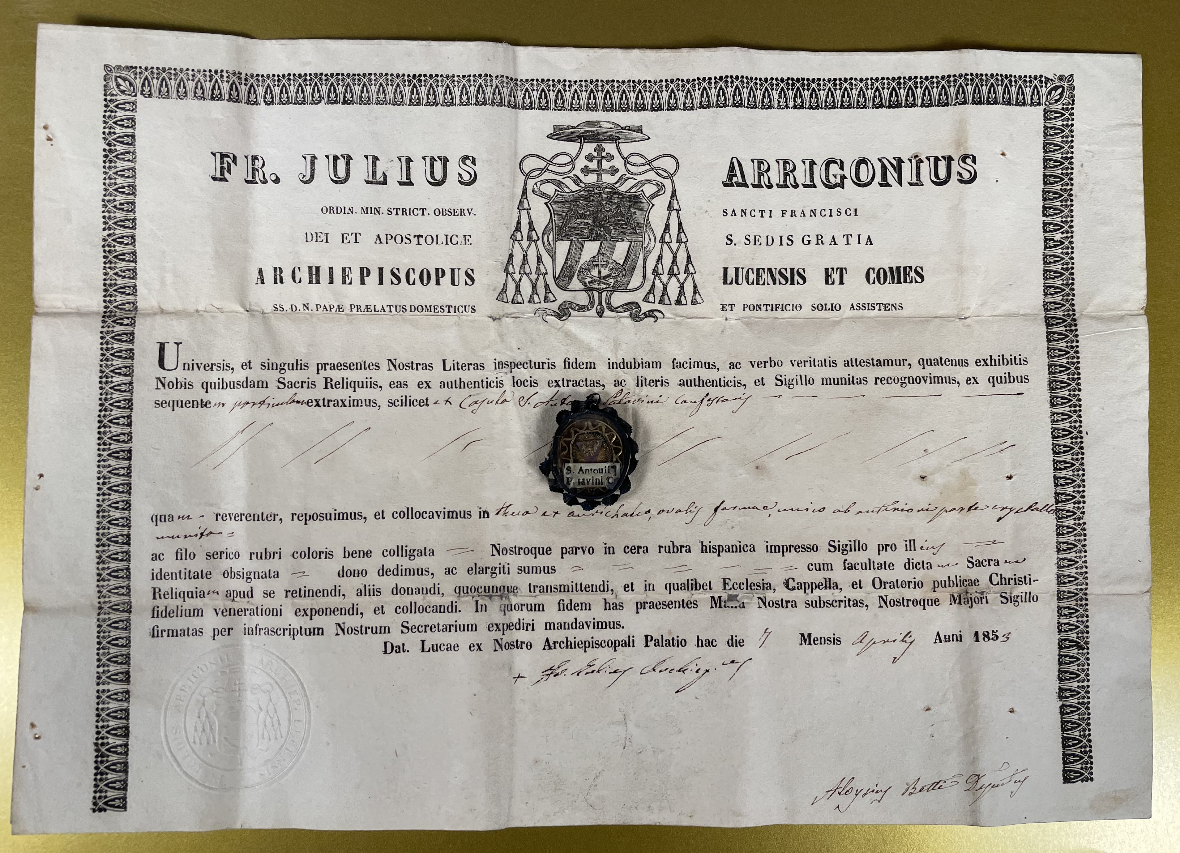 Saint Anthony of Padua († 1231), also known as Anthony of Lisbon, was a Portuguese Catholic priest and friar of the Franciscan Order. Noted by his contemporaries for his powerful preaching, expert knowledge of scripture, and undying love and devotion to the poor and the sick, he was one of the most-quickly canonized saints in church history. He was canonized in 1232 by Pope Gregory IX and was proclaimed a Doctor of the Church in 1946. He is the patron saint of Lisbon, lost items, lost people, lost souls, American Indians; amputees; animals; Brazil; elderly people; faith in the Blessed Sacrament; fishermen; harvests; horses; lower animals; mail; mariners; oppressed people; poor people; Portugal; pregnant women; shipwrecks; starvation; sterility; swineherds; travel hostesses; and travelers. His feast day is celebrated on June 13.