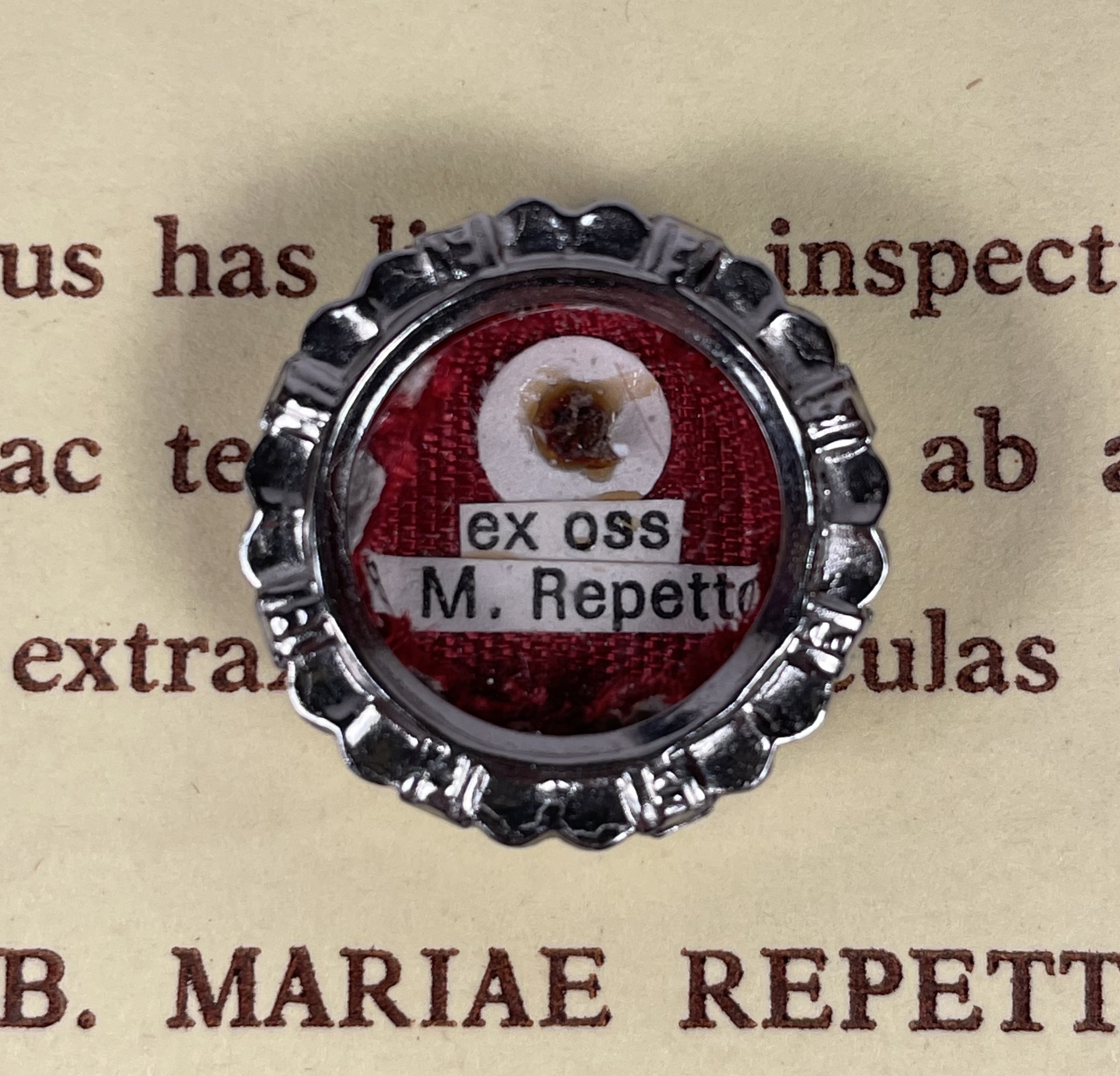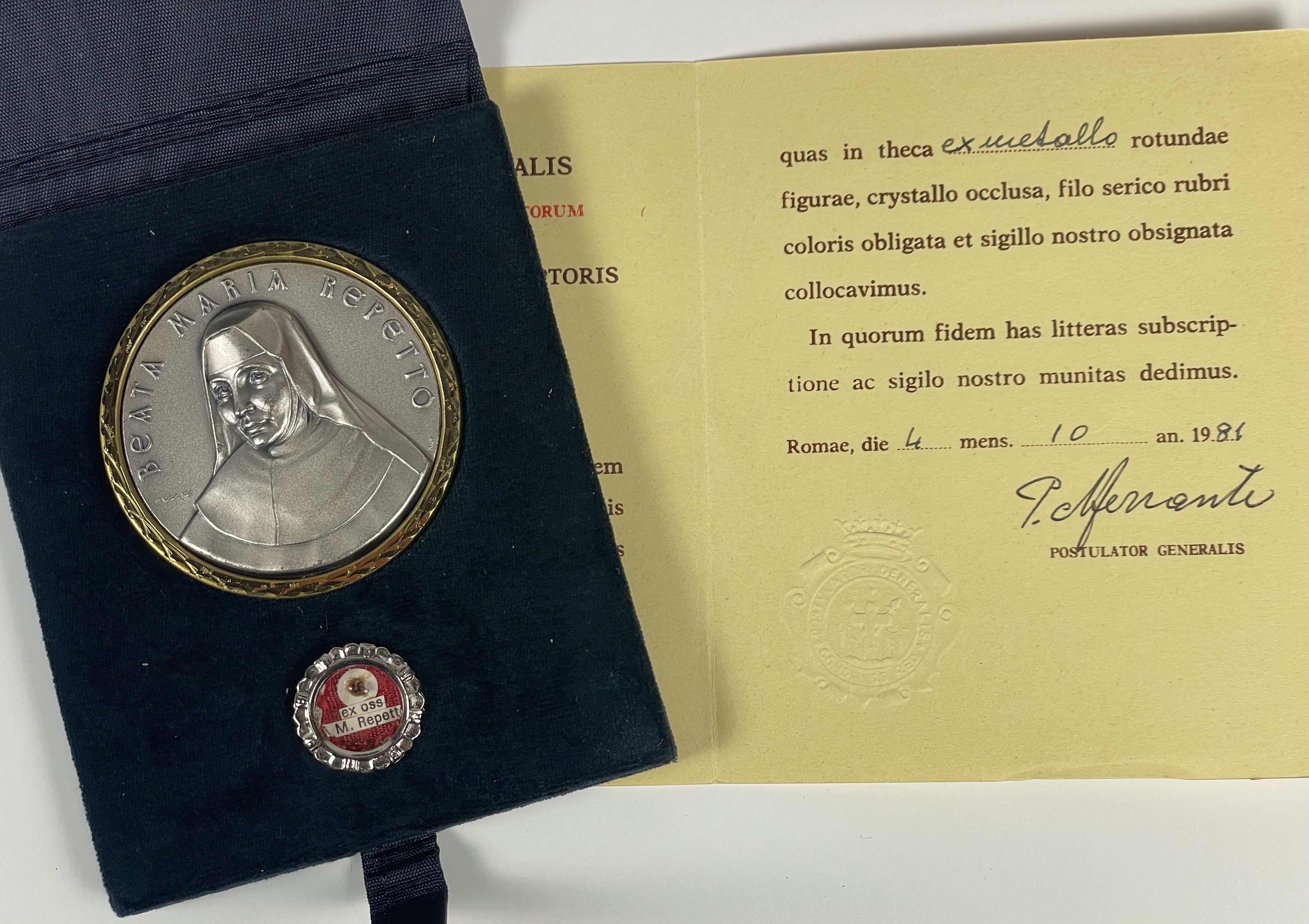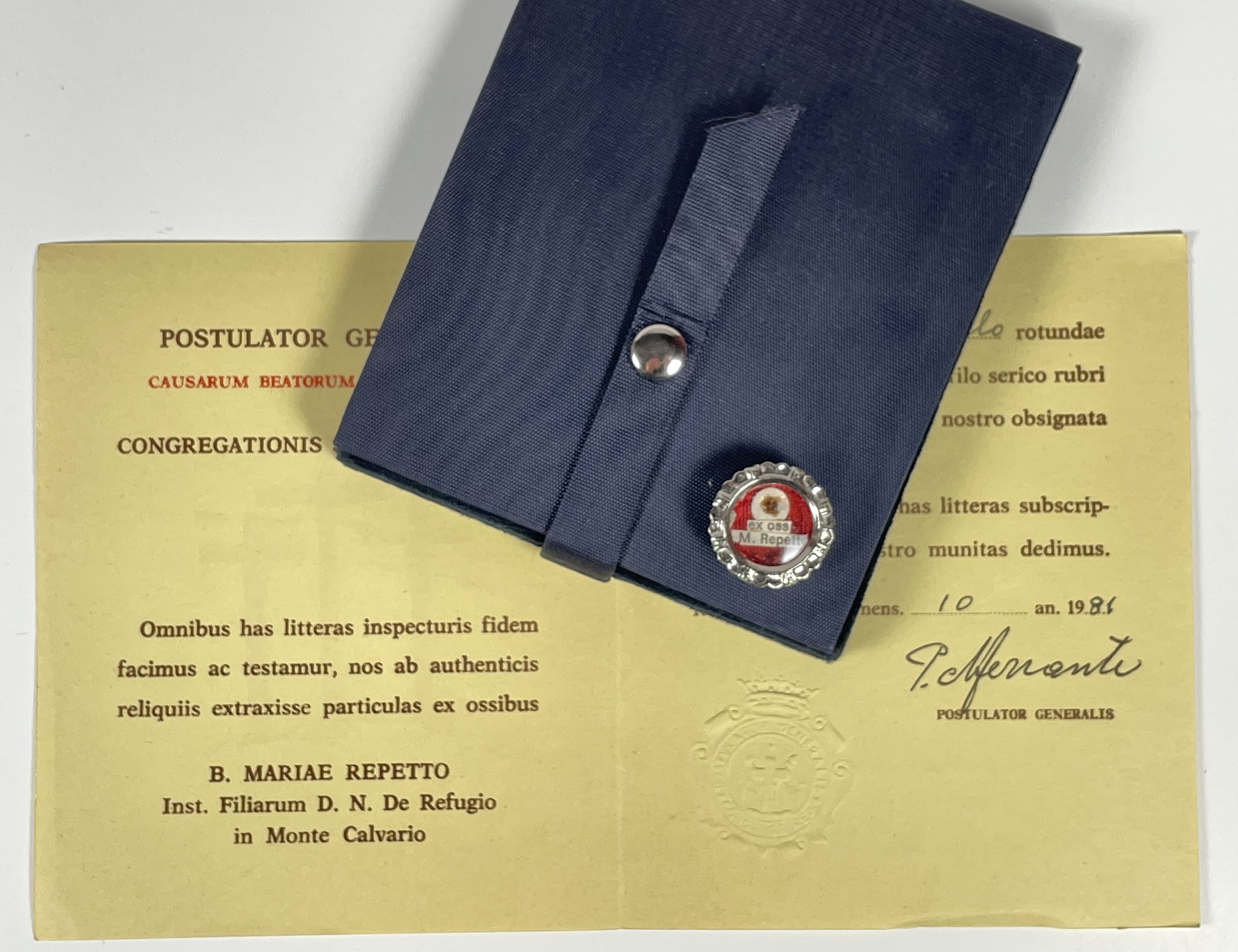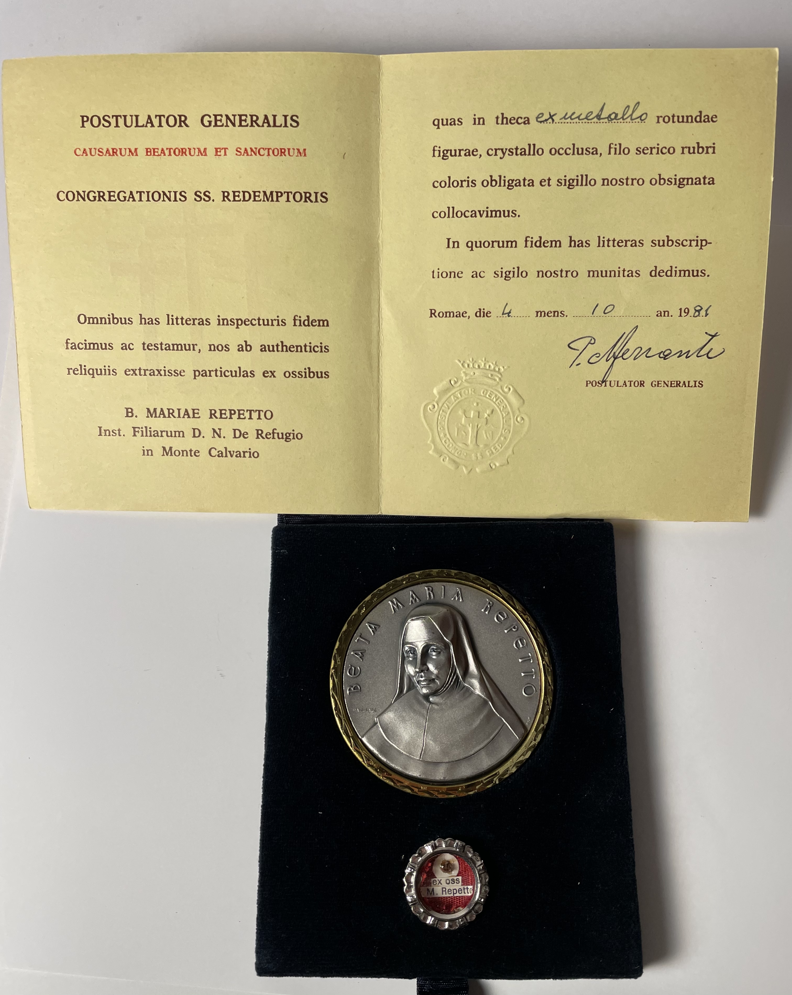 Blessed Maria Repetto (†1890) was an Italian Roman Catholic professed religious from the Sisters of Our Lady of Refuge in Mount Calvary who was an ardent devotee of Saint Joseph and promoted devotion to him while distributing medals and images of him to those who visited the convent she was at; she also distinguished herself as an able carer for cholera victims on two occasions of the epidemic. Repetto's cause for sainthood was introduced under Pope Pius XII in 1949 and Pope Paul VI named her as Venerable in 1968 after confirming her heroic virtue. Pope John Paul II beatified her in Saint Peter's Square on 4 October 1981. Her feast is celebrated on 5 January.