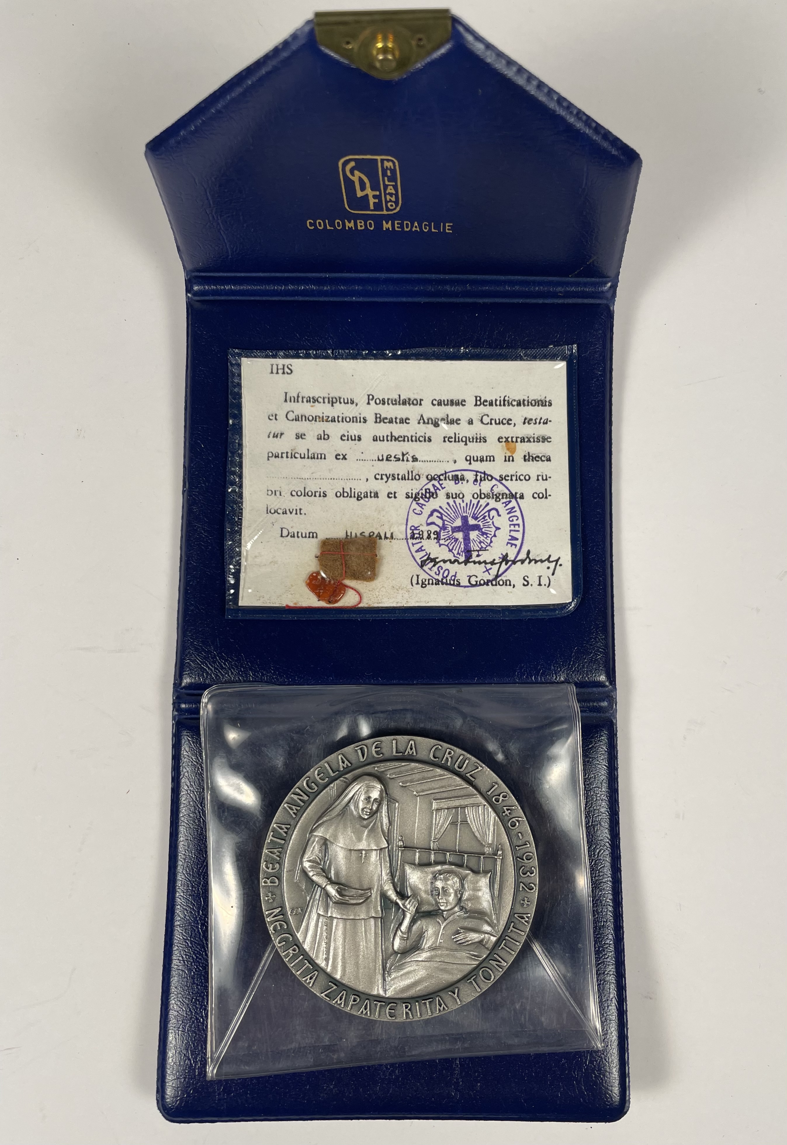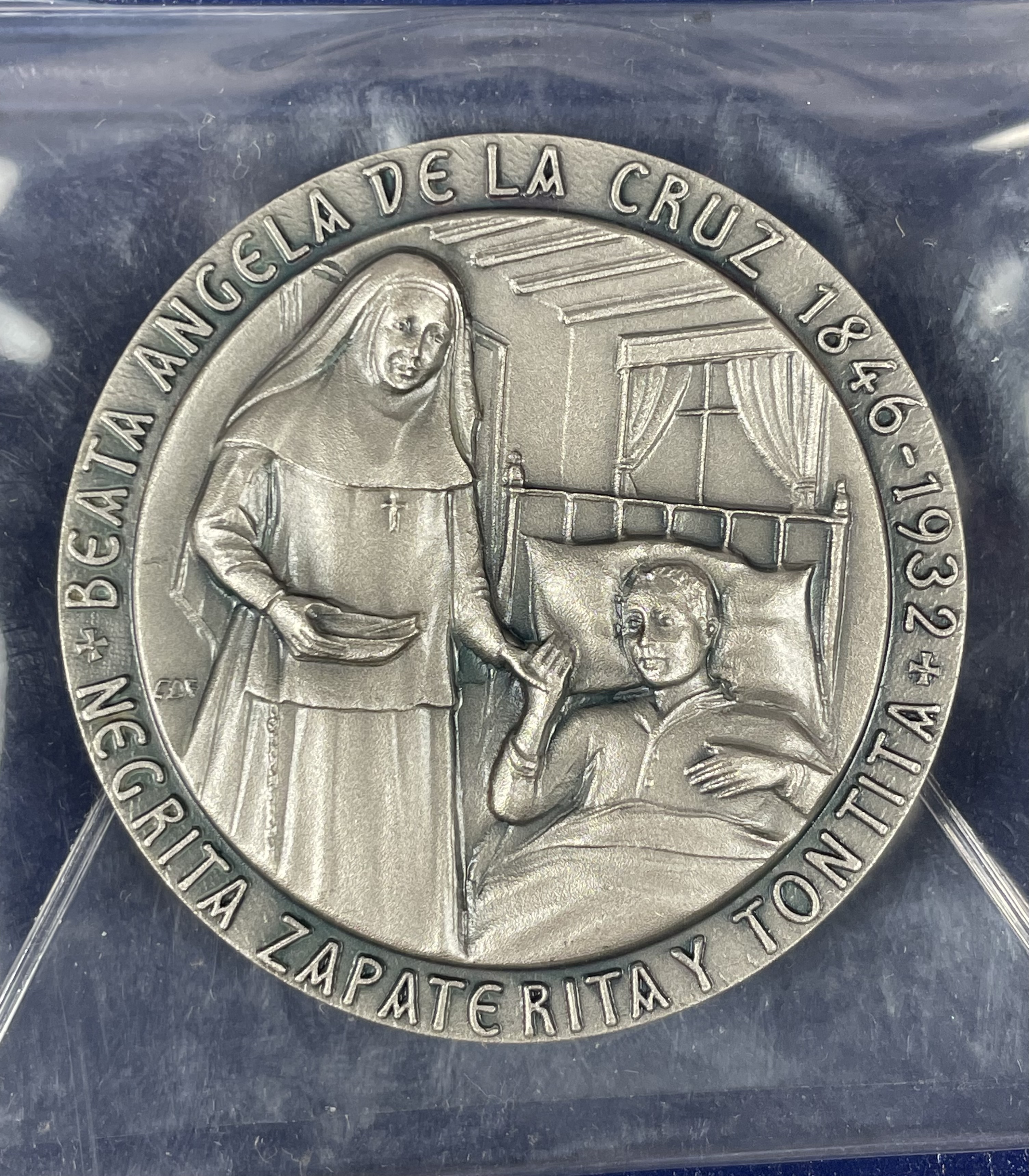 St. Angela of the Cross (Ángela de la Cruz) (†1932) was a Spanish religious sister and the foundress of the Sisters of the Company of the Cross, a Roman Catholic religious institute dedicated to helping the abandoned poor and the ill with no one to care for them. She was beatified on 5 November 1982 by Pope John Paul II in Seville and declared a saint on 4 May 2003 by Pope John Paul II in the Plaza de Colón in Madrid.