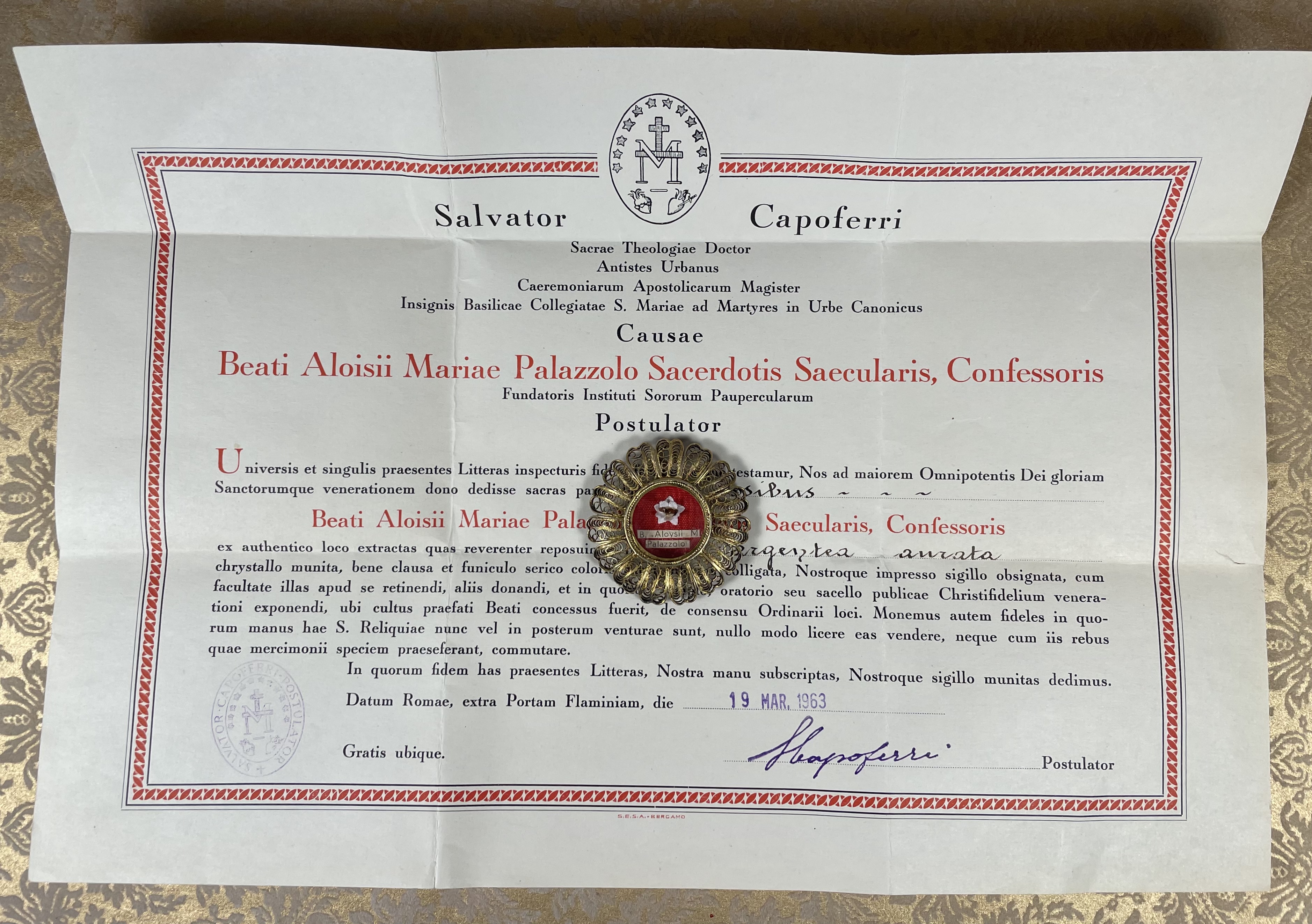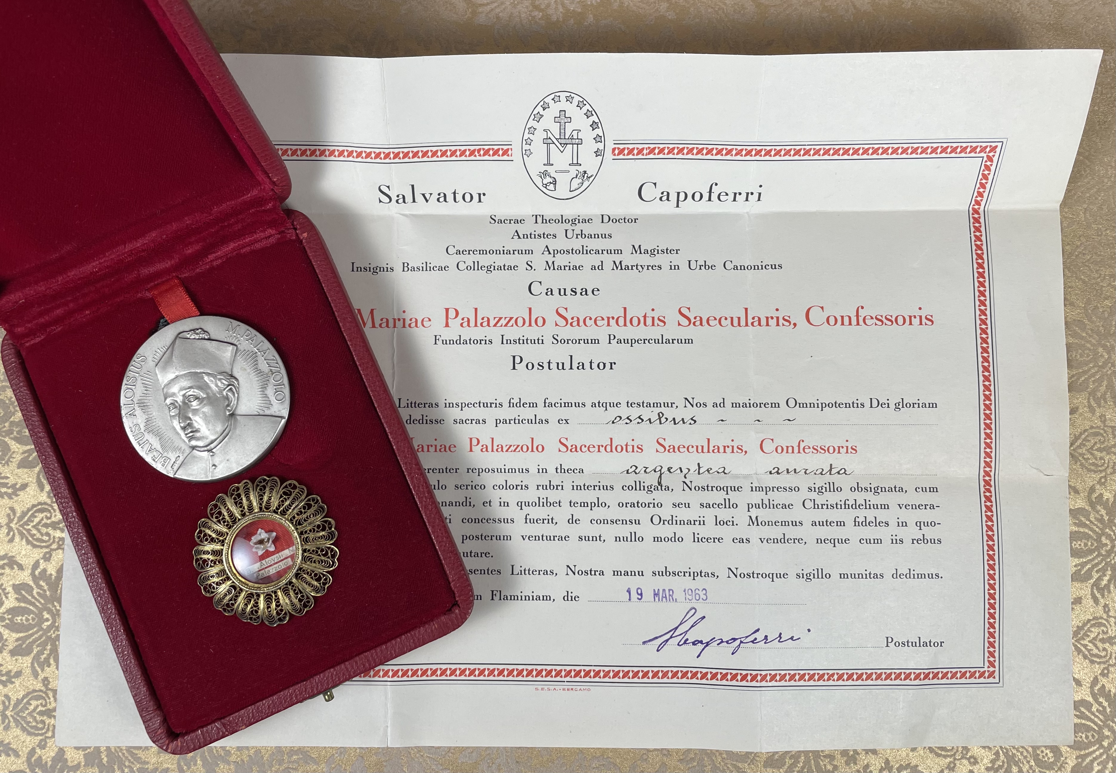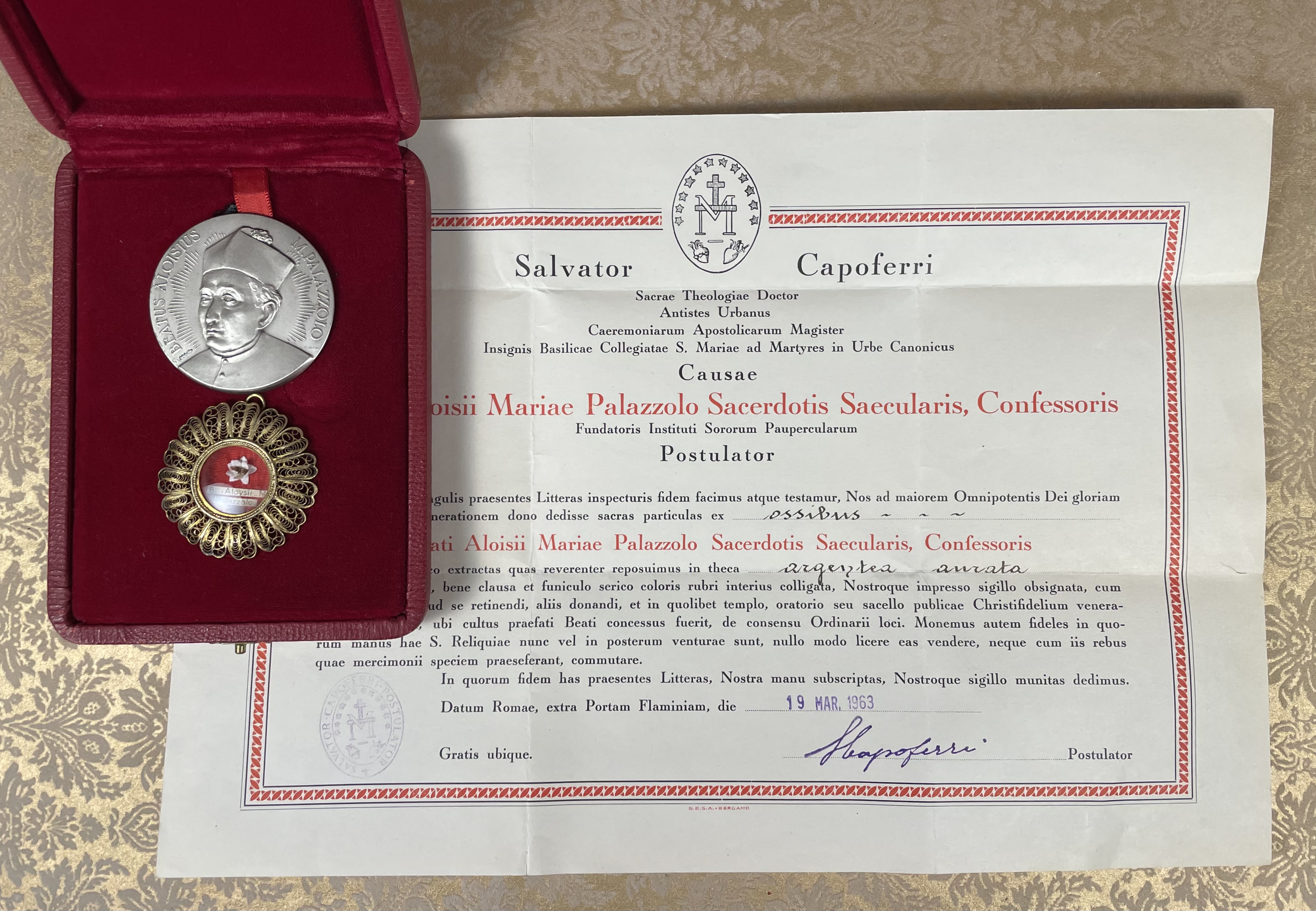 Blessed Luigi Maria Palazzolo (†1886) was an Italian Roman Catholic priest who worked for the poor and the outcast until his death. He established the Sisters of the Poor which was also known as the Palazzolo Institute and the Little House of Divine Providence. Palazzolo was beatified on 19 March 1963 on the account of his well-known holiness and is considered a patron of the Diocese of Bergamo. Pope Francis approved a miracle attributed to him on 28 November 2019 and will canonize him as a saint on 15 May 2022.