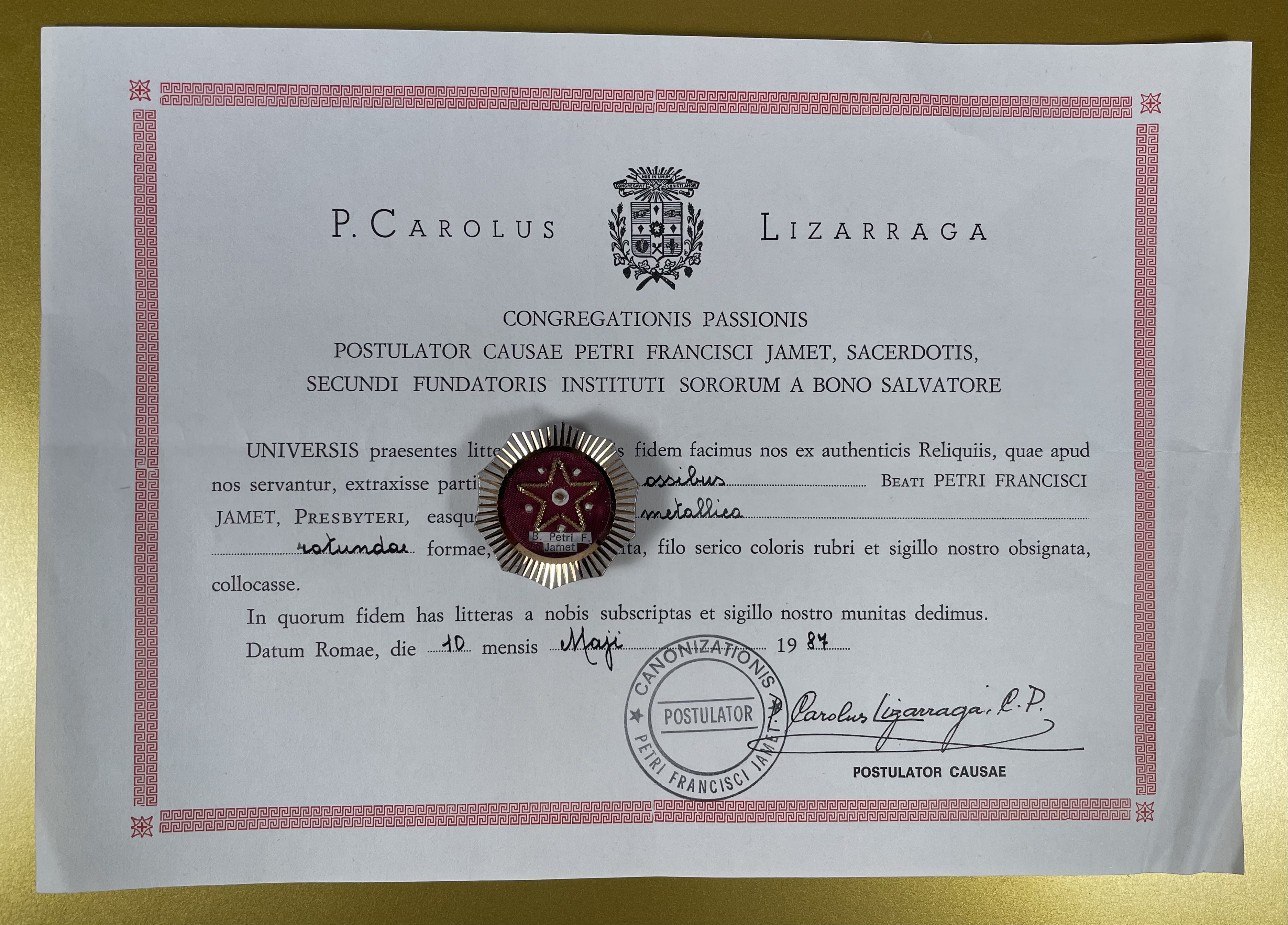 Blessed Pierre-François Jamet (†1845) was a French Roman Catholic priest who refused to take the oath of allegiance during the French Revolution. He is also called the "Second Founder" due to restoring the dwindled order of the Sisters of the Bon Sauveur. In 1827 he was awarded the Legion of Honor for his service as a priest. Jamet was beatified in 1987 after Pope John Paul II approved a miracle attributed to his intercession. Jamet remains the patron of the order he restored.