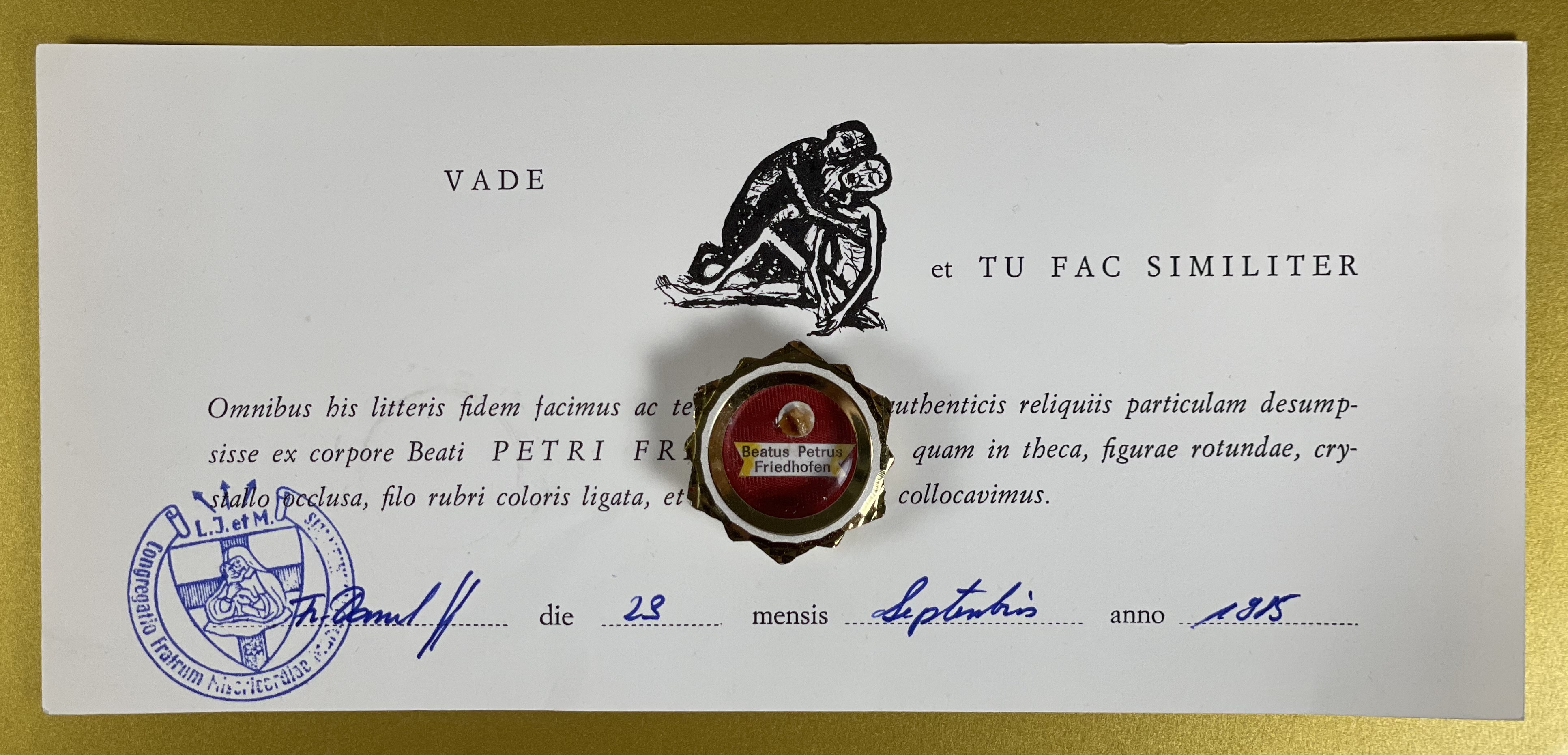 Blessed Peter Friedhofen (†1860) was a German Roman Catholic professed religious and the founder of the Brothers of Mercy of Mary Help of Christians. Friedhofen worked as a chimney sweep with his older brother until the latter died. This prompted Friedhofen to take care of his brother's widow and children until he founded his own religious order in mid-1850. Pope John Paul II beatified Friedhofen on 23 June 1985.