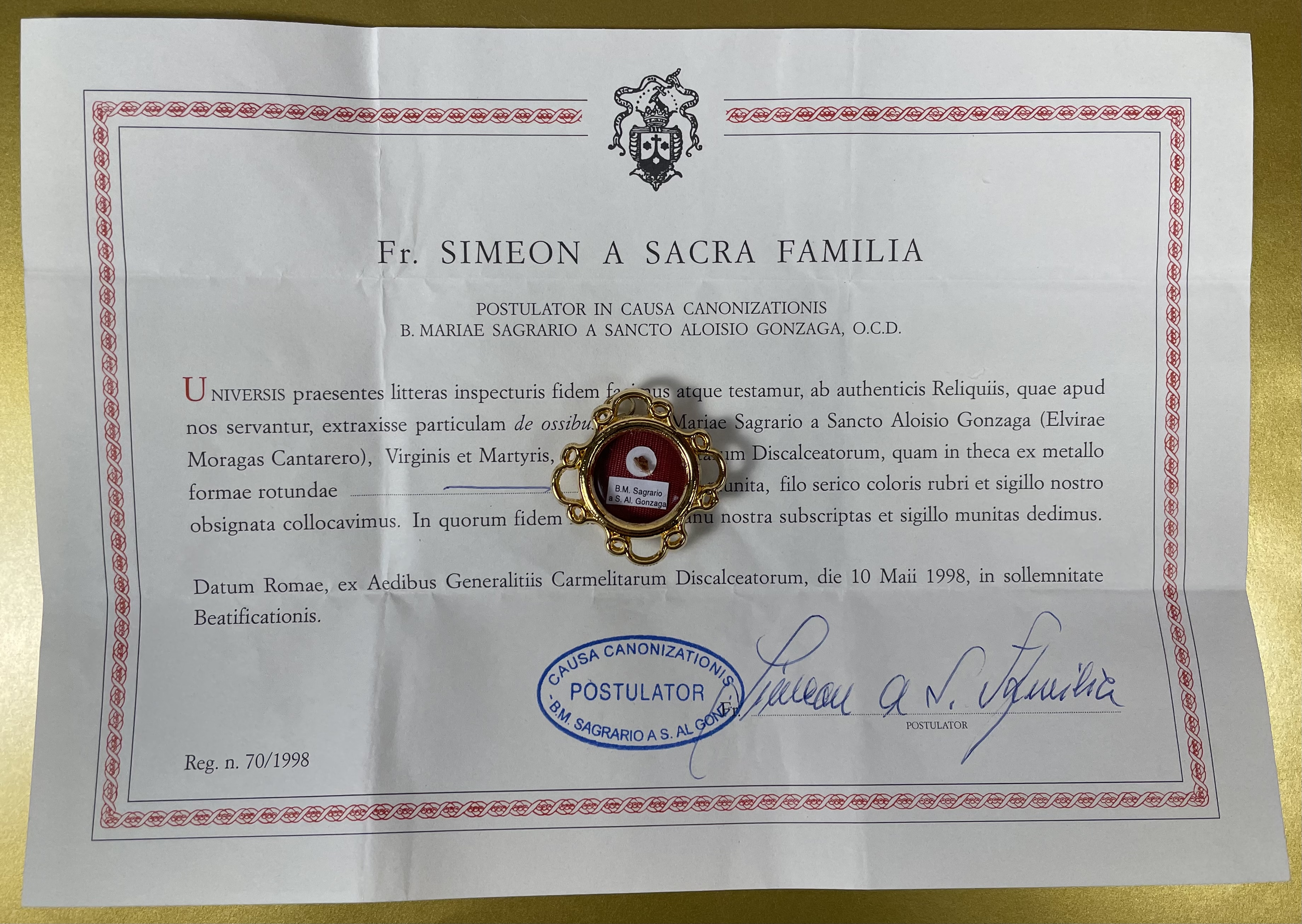 Blessed Elvira Moragas Cantarero, known under her religious name María Sagrario de San Luis Gonzaga, (†1936) was a Spanish nun of the Order of the Discalced Carmelites of the Blessed Virgin Mary of Mount Carmel who is commemorated as a Catholic Martyr of the Spanish Civil war. Her initial path was to follow her father in the pharmaceutical business and continued after the death of her father when she assumed control of the business and later stepped aside for her brother to take over when it became clear that she felt inclined to enter the religious life. Her time in the convent saw her assume leadership roles in which she was protective of her fellow nuns with an amiable disposition. But the outbreak of the Spanish Civil War forced her to flee into hiding alongside another nun while refusing her brother's invitation to live with him since she wanted to ensure her fellow religious were kept safe. But she herself was captured and later shot dead in the middle of the night when the militia grew furious with her silence during interrogations. She was on 10 May 1998 by Pope John Paul II.