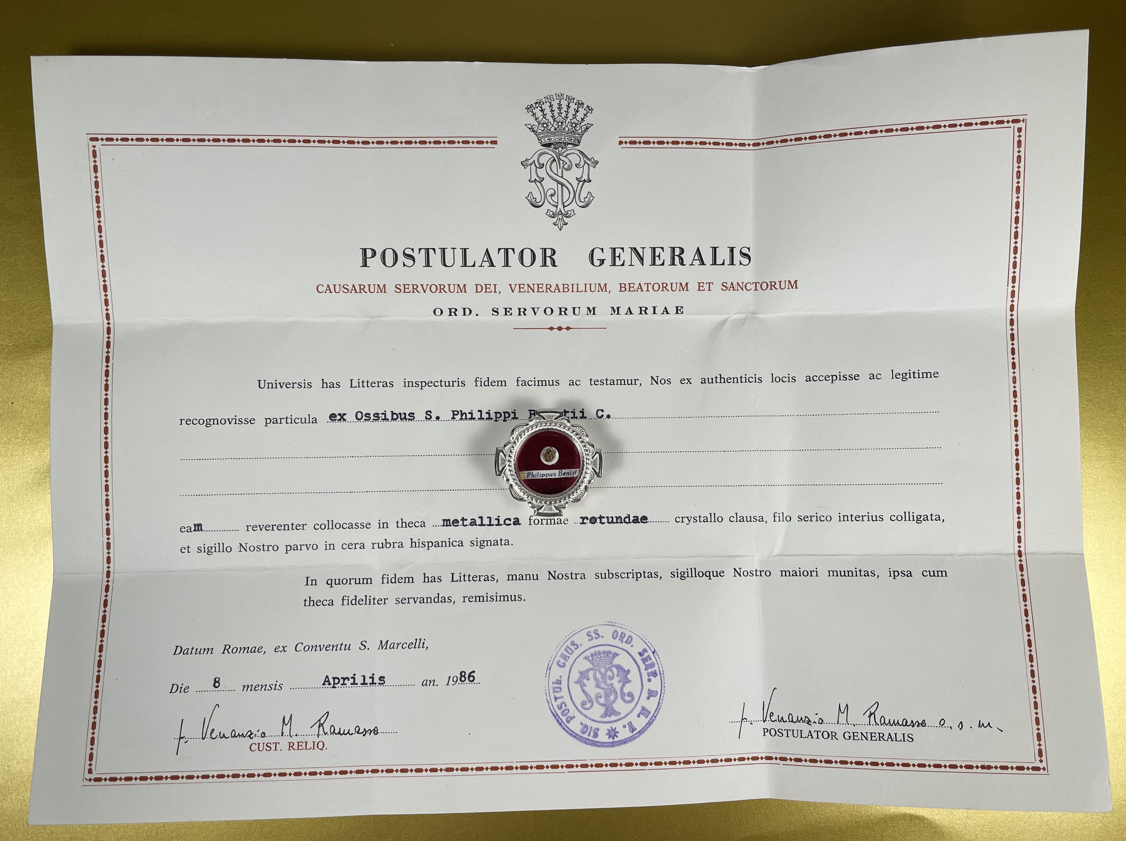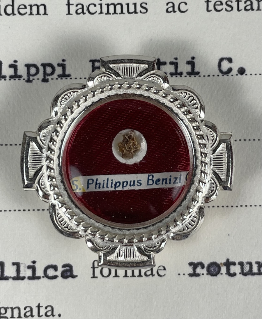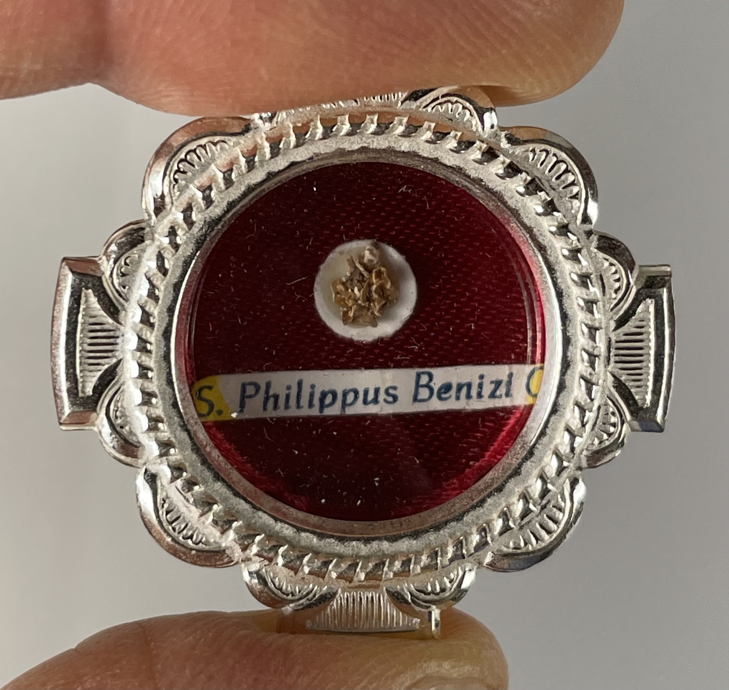 Saint Philip Benitius OSM (Philip Benizi de Damiani) (†1285) was a general superior of the Order of the Servites, and credited with reviving the order. According to tradition, he encountered with an eighteen-year-old Peregrine Laziosi, the son of a Ghibelline leader, who was abusive towards Philip. However, Philip's meeting with the initially antagonistic youth inspired Peregrine to later join the Servites and lead a life of virtue that led to his canonization as a Saint. Pope Leo X had beatified him in 1516; and Pope Clement X canonized him as a saint in 1671. His feast day is celebrated on August 23.