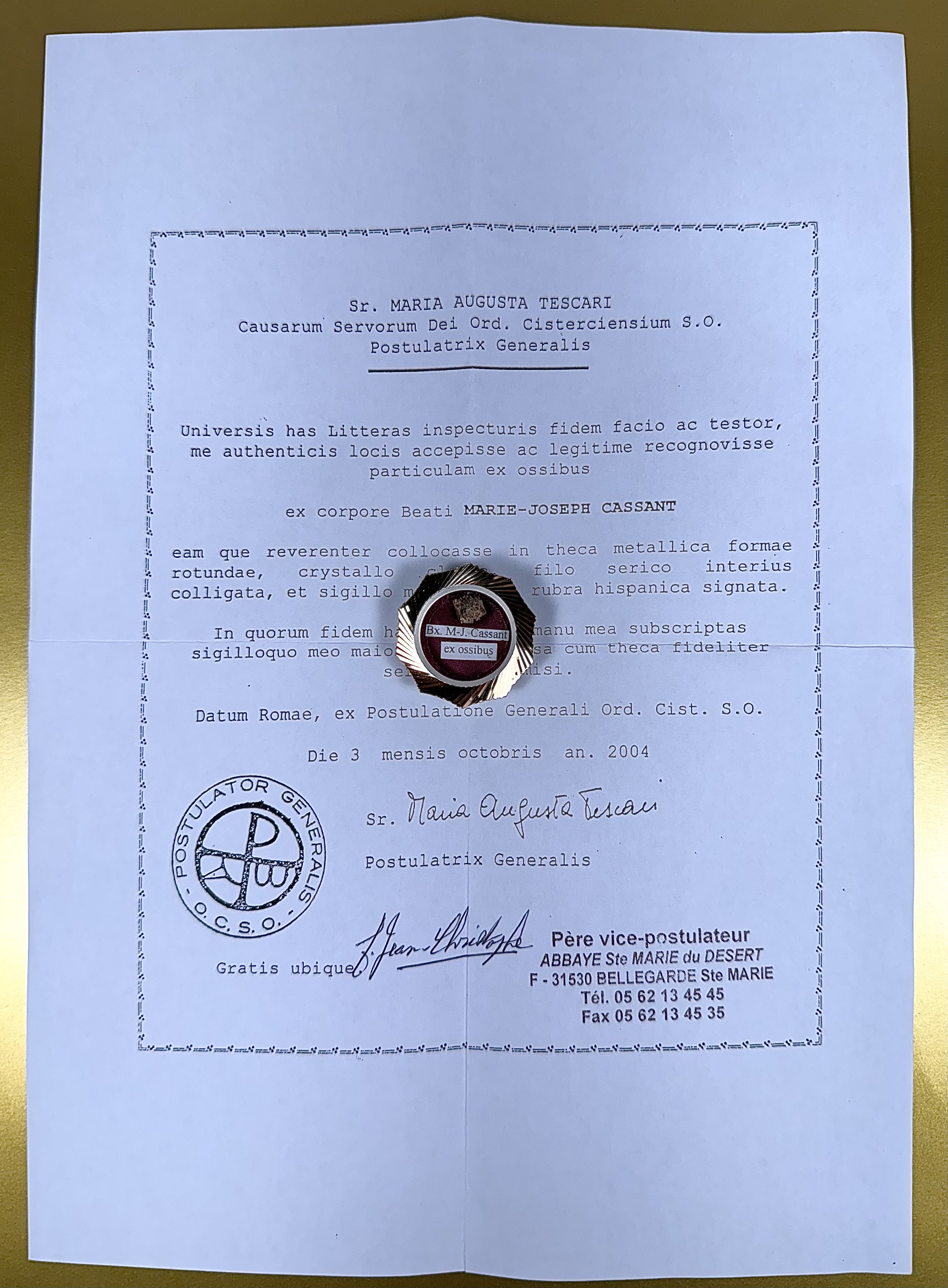 Blessed Pierre-Joseph Cassant O.C.S.O.(†1903) was a French Roman Catholic priest and professed member of the Trappists who received the religious name of Marie-Joseph. He was known for his strong determination to his studies to fulfill his lifelong wish of being ordained to the priesthood. Cassant suffered from extreme tuberculosis around the time of his ordination and died not long after he was made a priest. Pope John Paul II celebrated his beatification on 3 October 2004 and his feast day is celebrated on 17 June.