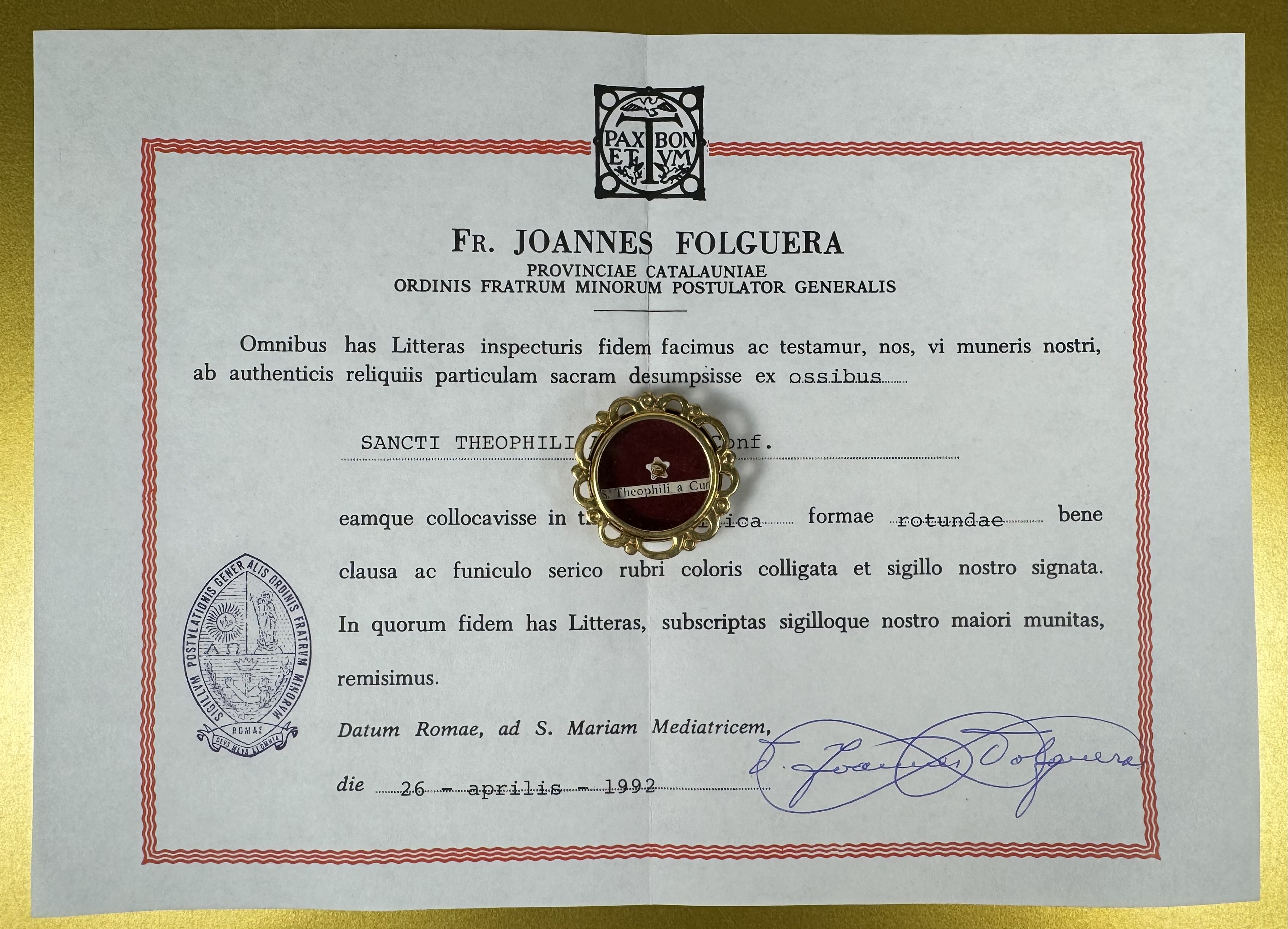 Saint Theophilus of Corte (†1740) - was an Italian Roman Catholic priest and a professed member from the Order of Friars Minor. Arrighi became known for his preaching and evangelization efforts and acted as a reformer in establishing houses for the Franciscans in northern Italian cities and throughout the Corsica island where he was born. He was known for his cheerful demeanor and his willingness to assist others while also known for his tireless dedication to silence and solitude which he exhorted his fellow friars to exercise in order to better commune with God. He was beatified in 1896 and was canonized as a saint on 29 June 1930.