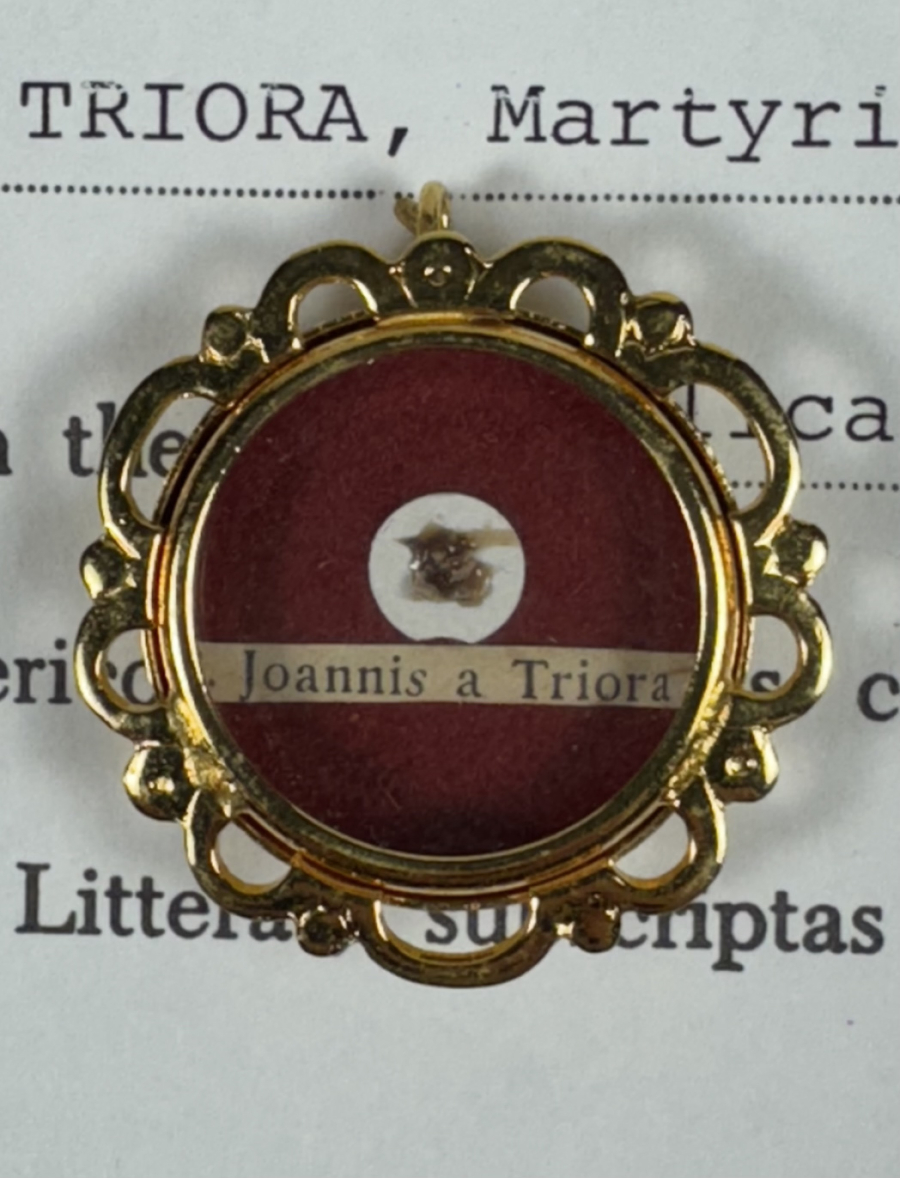 Saint Giovanni (John) of Triora (†1816) is one of the Martyr Saints of China. He joined the Franciscan Friars at age 17 and later became a priest. He became a missionary to China in 1799. After working in China with great success for 18 years, he was arrested, imprisoned, and strangled in 1816. He was Beatified by Pope Leo XIII in 1900 and Canonized in 2000 by Pope John Paul II.