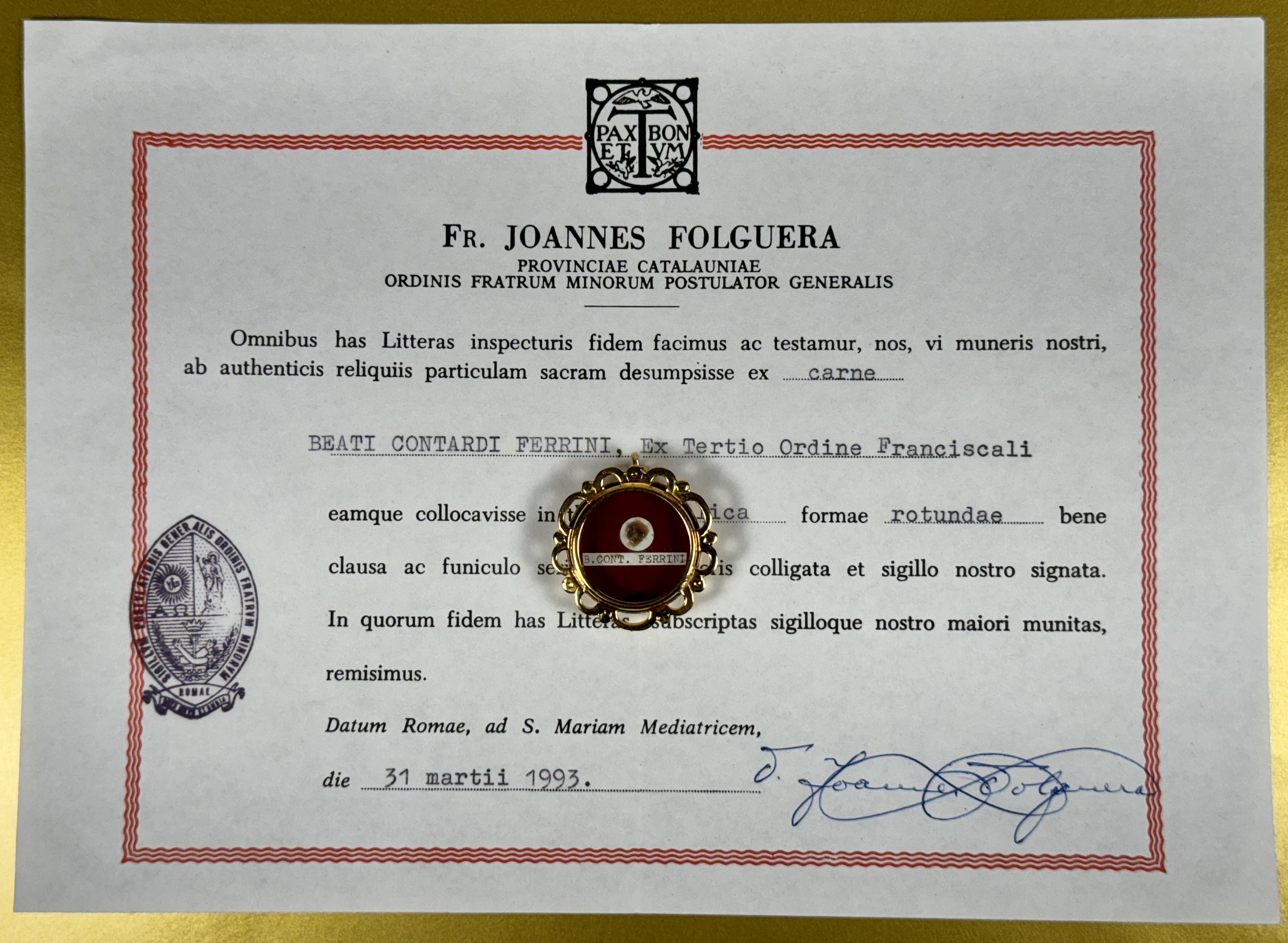 Blessed Contardo Ferrini (†1902) was a noted Italian legal scholar and a fervent Roman Catholic, who lived a devout life of prayer and service to the poor. In 1909 Pope Pius X authorized Cardinal Andrea Carlo Ferrari, the Archbishop of Milan, to open a process to promote Ferrini's canonization. He was subsequently declared Venerable by Pope Pius XI and he was beatified by Pope Pius XII on 13 April 1947. His body is venerated in a chapel of Milan's Catholic University. Ferrini is the patron saint of universities, professors and Homeric scholarship. His Feastday is celebrated on 17 October (22 October (in the Archdiocese of Berlin).