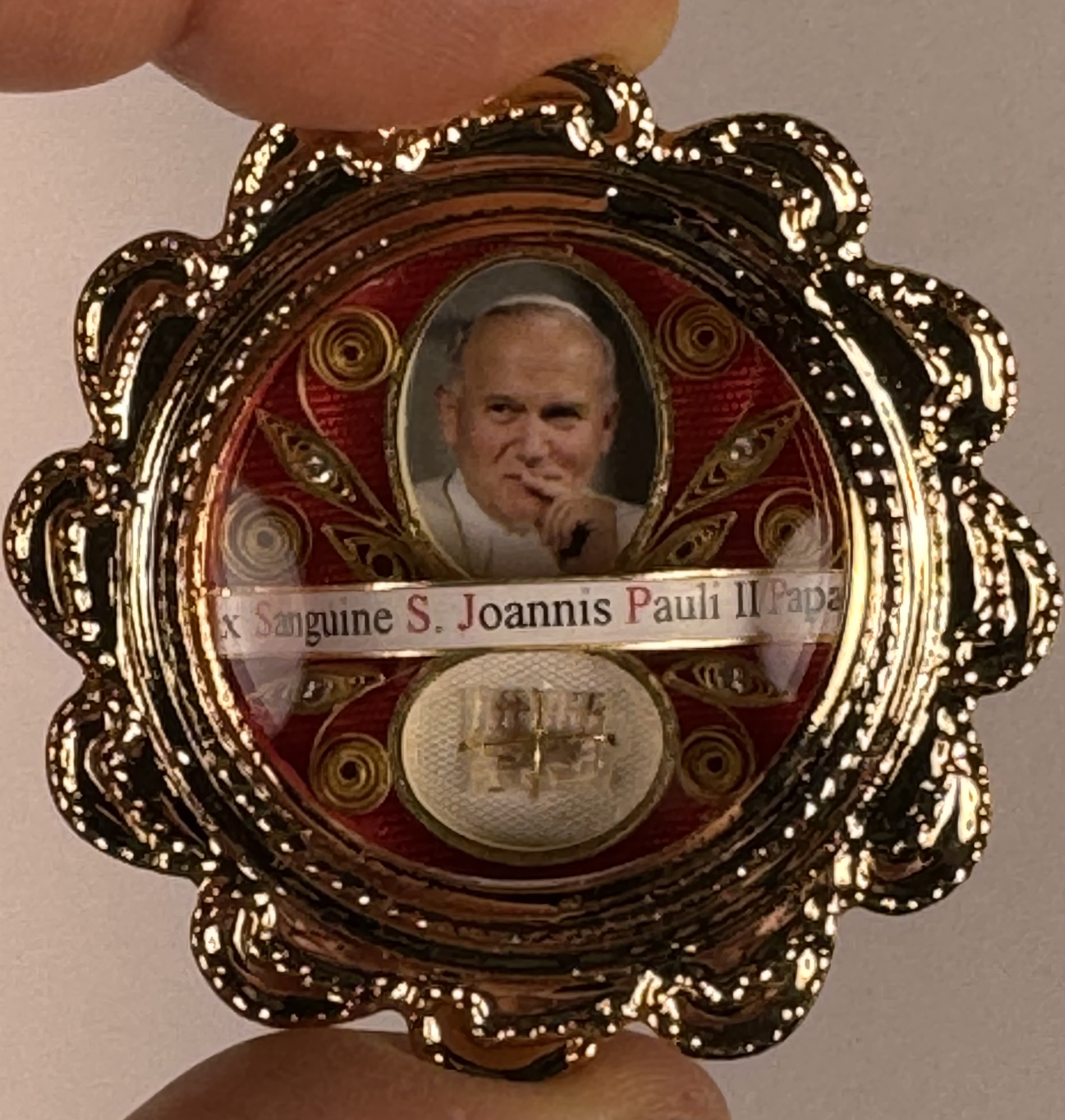 Fancy documented reliquary theca with a blood relic of St. Pope John Paul II