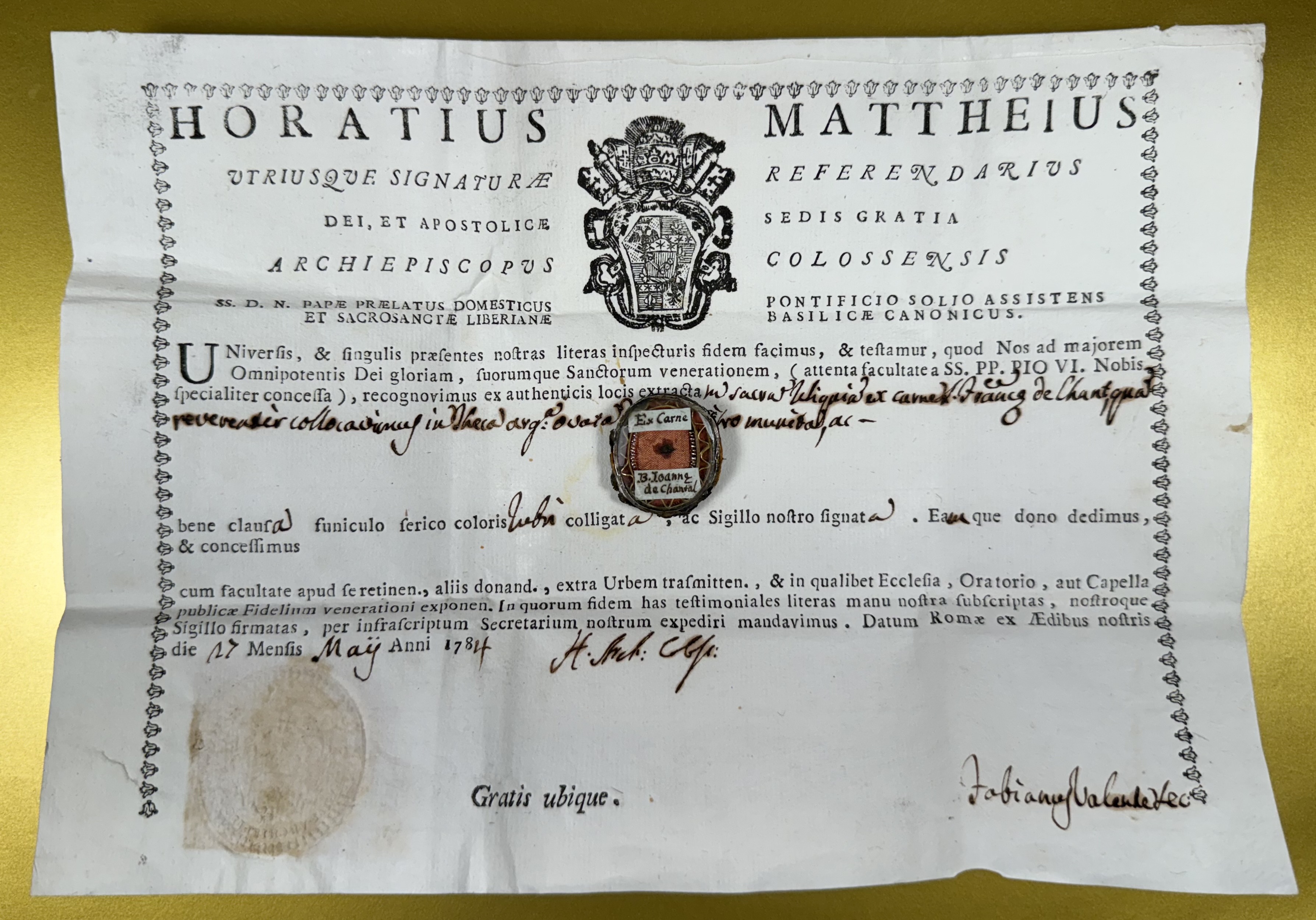 Saint Jane Frances de Chantal († 1641) was a French Roman Catholic Saint, who founded a religious order Congregation of the Visitation of Holy Mary (Visitandines). She was beatified on 21 November 1751 by Pope Benedict XIV, and canonized on 16 July 1767 by Pope Clement XIII. She is a patron of forgotten people; in-law problems; loss of parents; parents separated from children; and widows.