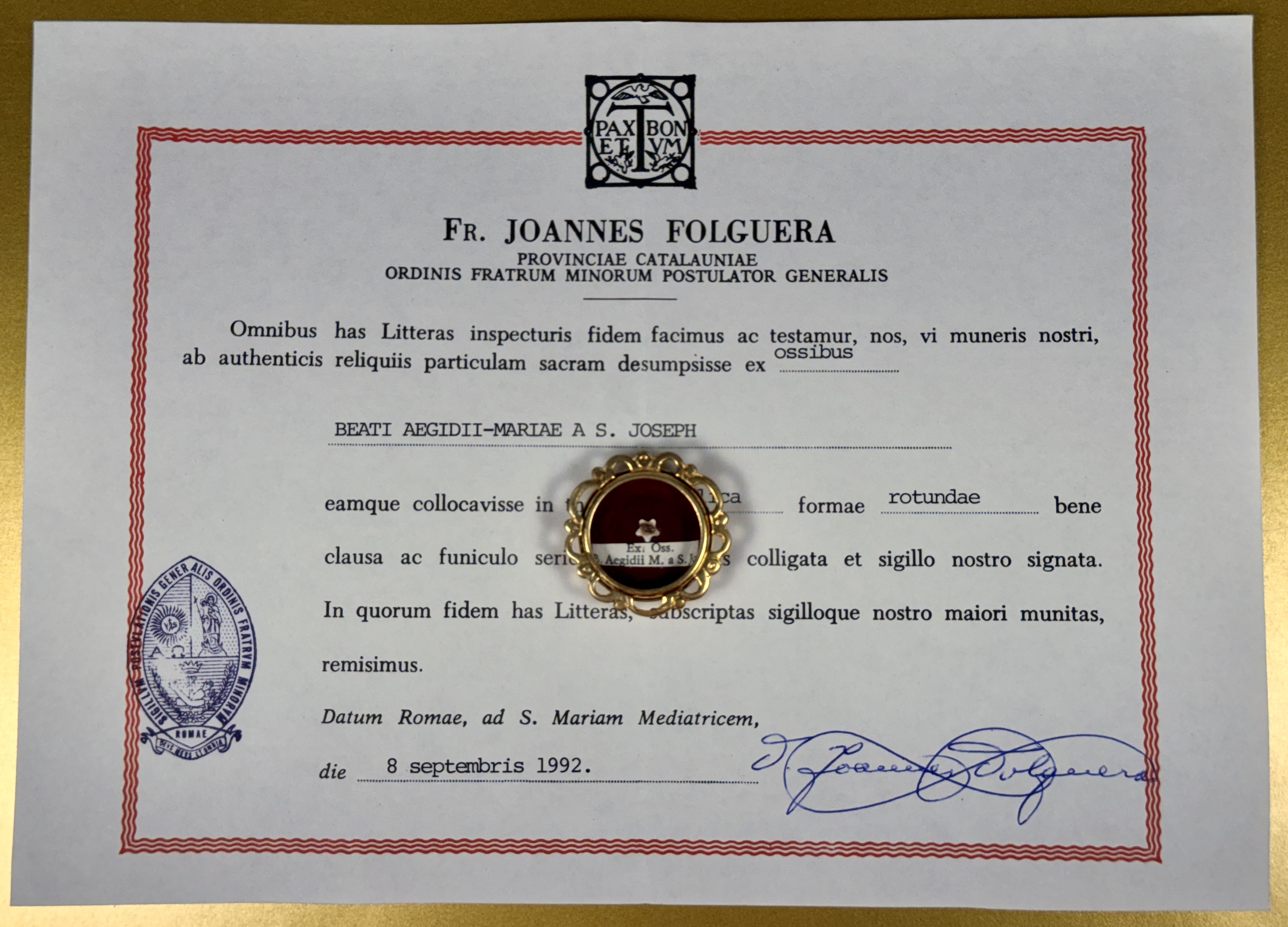 Saint Egidio Maria of Saint Joseph (†1812) was an Italian professed religious of the Order of Friars Minor. He became a Franciscan brother rather than an ordained priest due to his lack of proper education and so dedicated himself to the care of the poor and ill in southern Italian cities such as Taranto and Naples, where he earned the moniker of the "Consoler of Naples." He was beatified in 1888 by Pope Leo XIII and canonized in 1996 by Pope John Paul II. His Feast Day is commemorated on February 7.
