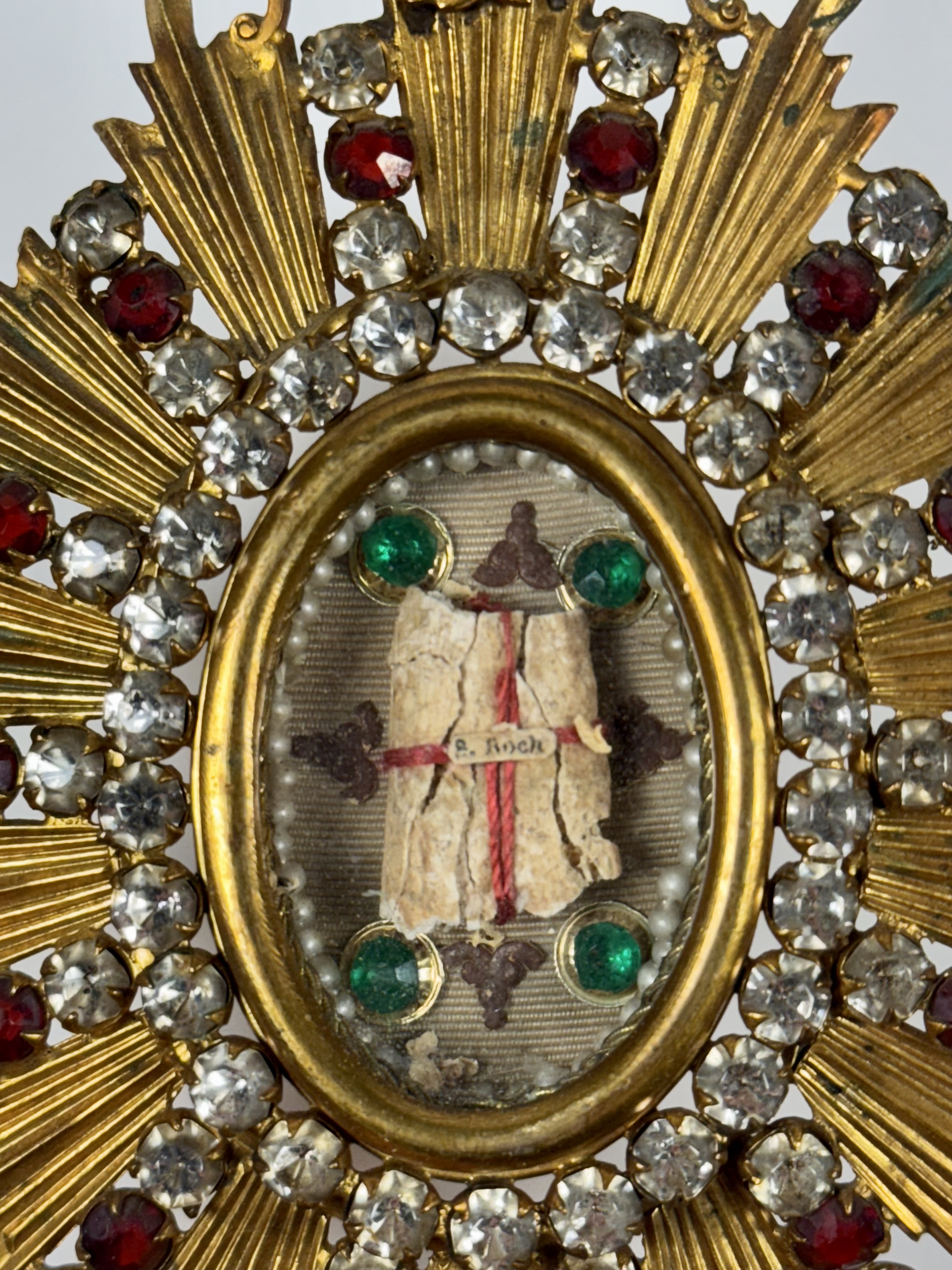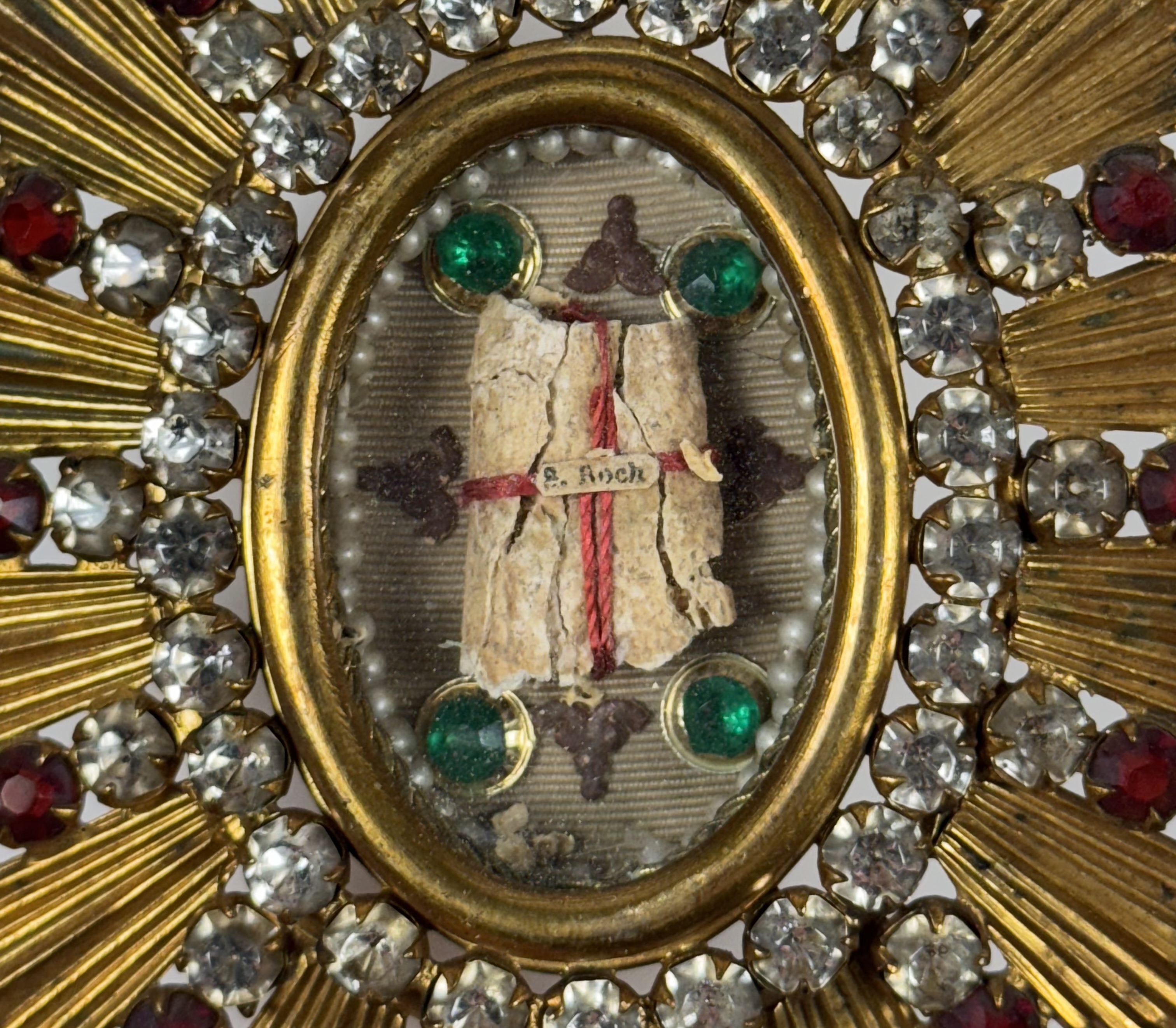 Saint Roch (Rocco) († 1327) was a Catholic saint, a confessor specially invoked against the plague. He is a patron saint of dogs and falsely accused people, among other things. His popularity, originally in central and northern Italy and at Montpellier, spread through Spain, France, Lebanon, the Low Countries, Brazil, and Germany, where he was often interpolated into the roster of the Fourteen Holy Helpers, whose veneration spread in the wake of the Black Death. The 16th-century Scuola Grande di San Rocco and the adjacent church of San Rocco were dedicated to him by a confraternity at Venice, where his body was said to have been surreptitiously translated and was triumphantly inaugurated in 1485. Numerous brotherhoods have been instituted in his honor. The Third Order of Saint Francis, by tradition, claims him as a member and includes his feast on its own calendar of saints, observing it on August 17.