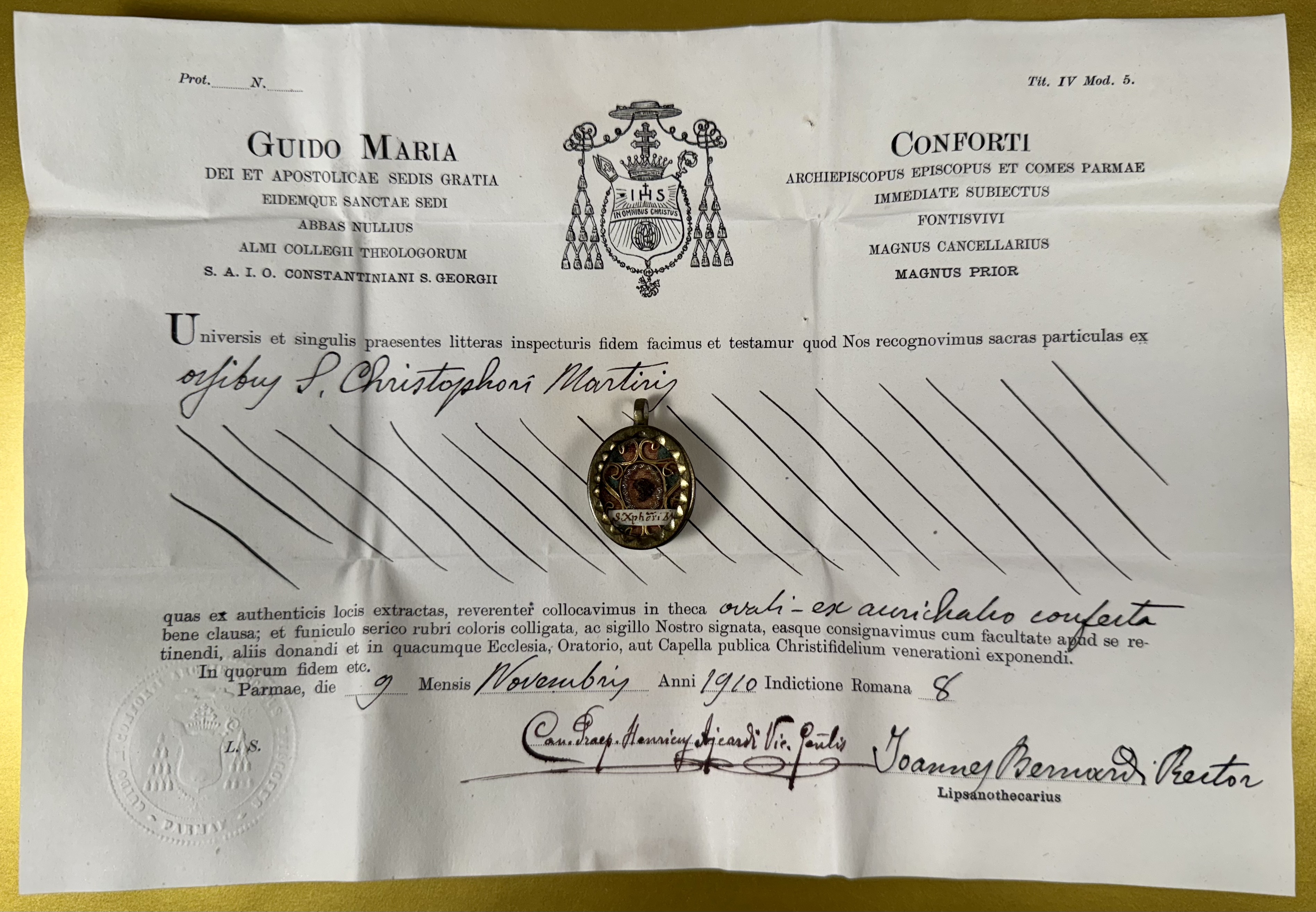 Saint Christopher is venerated by several Christian denominations as a martyr killed in the reign of the 3rd-century Roman Emperor Decius. According to Tradition, he carried a child, who was unknown to him, across a river before the child revealed himself as Christ. Therefore, he is the patron saint of travelers, and small images of him are often worn around the neck, on a bracelet, carried in a pocket, or placed in vehicles by Christians. St. Christopher is a widely popular saint, especially revered by athletes, mariners, ferrymen, and travelers. He is revered as one of the Fourteen Holy Helpers. He holds patronage of things related to travel and travelers — against lightning and pestilence — and patronage for archers; bachelors; boatmen; soldiers; bookbinders; epilepsy; floods; fruit dealers; fullers; gardeners; a sudden death; mariners; market carriers; motorists and drivers; sailors; storms; surfers; toothache; mountaineering; and transportation workers.The Eastern Orthodox Church venerates Christopher of Lycea with a Feast Day on May 9 and the Roman Martyrology remembers him on 25 July.