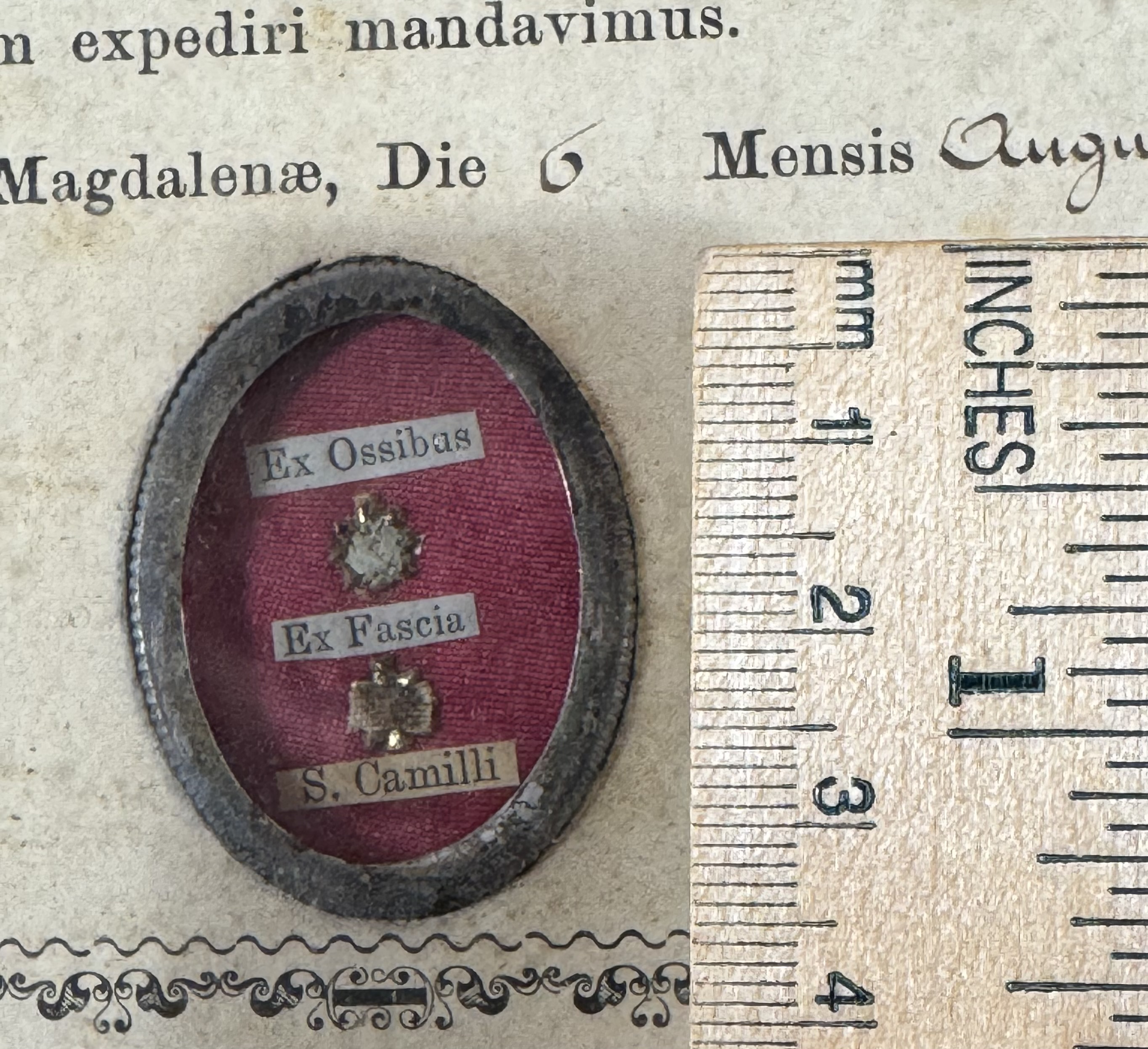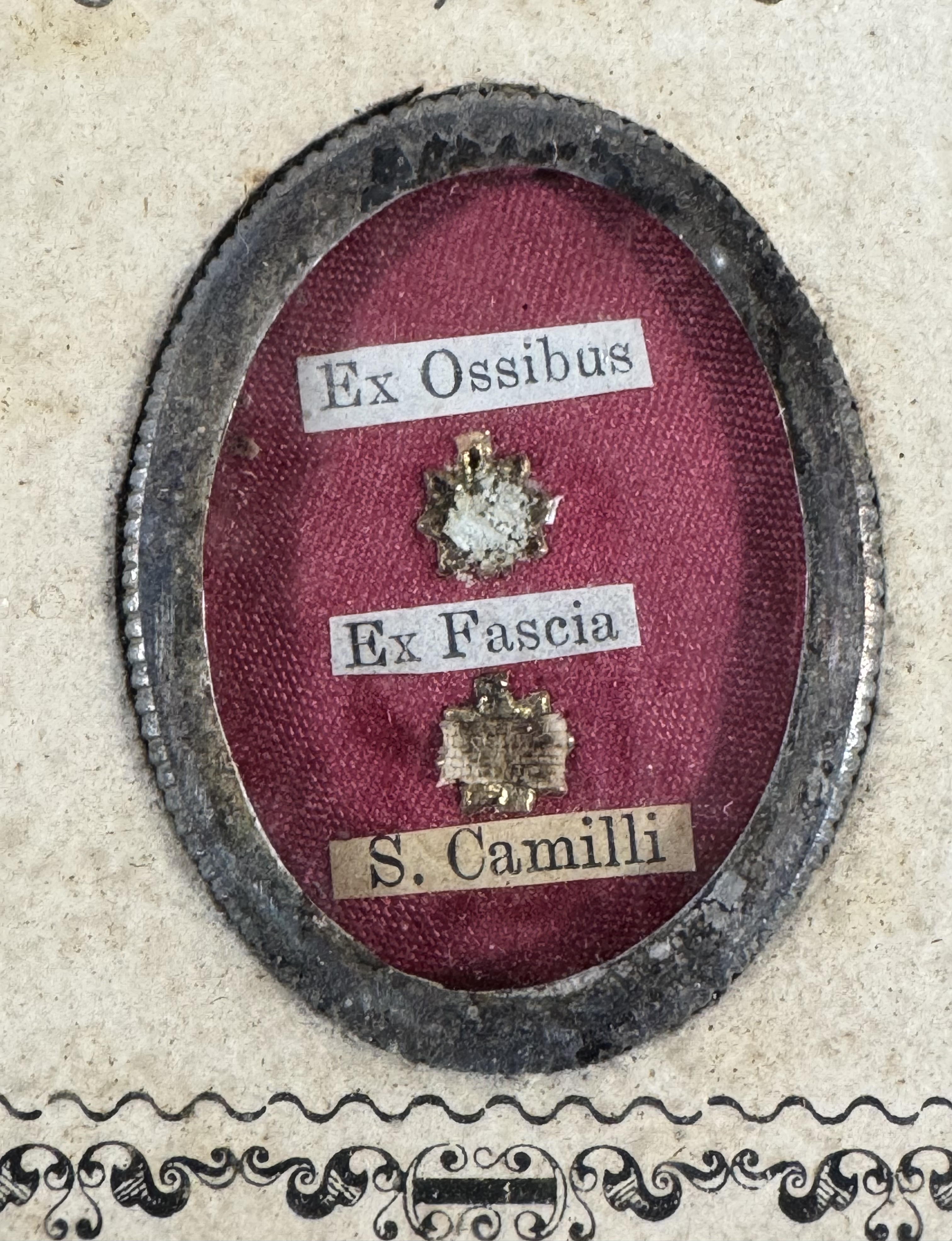 1898 documented reliquary theca with a relic of St. Camillus de Lellis, Patron of the sick & doctors