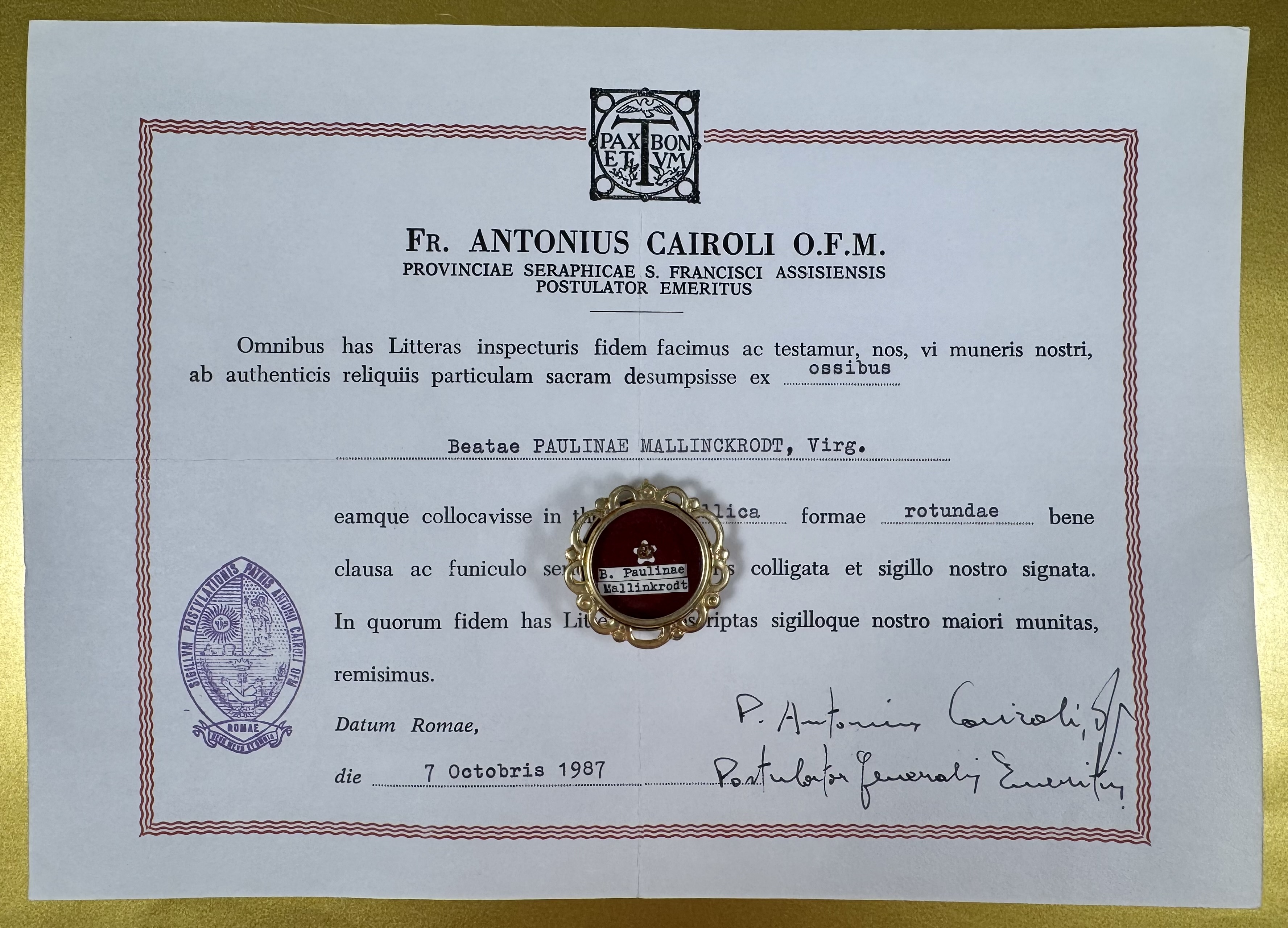 Blessed Pauline von Mallinckrodt, SCC (†1881) was a German noblewoman, Roman Catholic professed religious and the foundress of the Sisters of Christian Charity. Born into an aristocratic Mallinckrodt family as the daughter of a Lutheran father and Catholic mother, from her adolescence she began to tend to the blind and sick. This venture expanded into what became a religious congregation which spread at a rapid pace; she herself traveled to a range of places to oversee its growth and development. She was beatified on 14 April 1985 and her Feast Day is commemorated on 30 April.