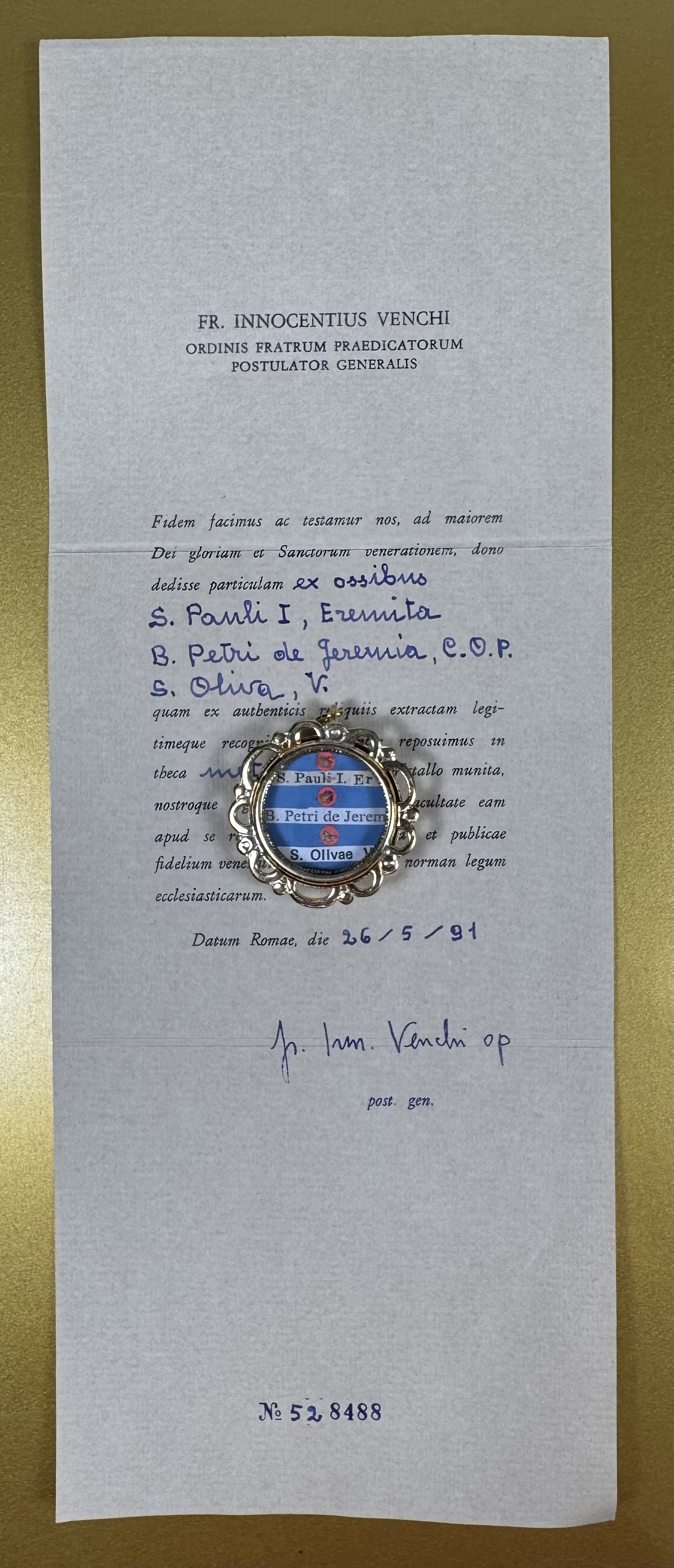 St. Olivia of Palermo († 463) was a Christian virgin-martyr kidnapped by Saracens, taken to Tunis, and later martyred for her faith around 892 AD. She is a patroness of Palermo, and her feast day is June 10. Her relics were venerated in Palermo, and she was one of the city’s protectors until replaced by St. Rosalia in the 17th century.