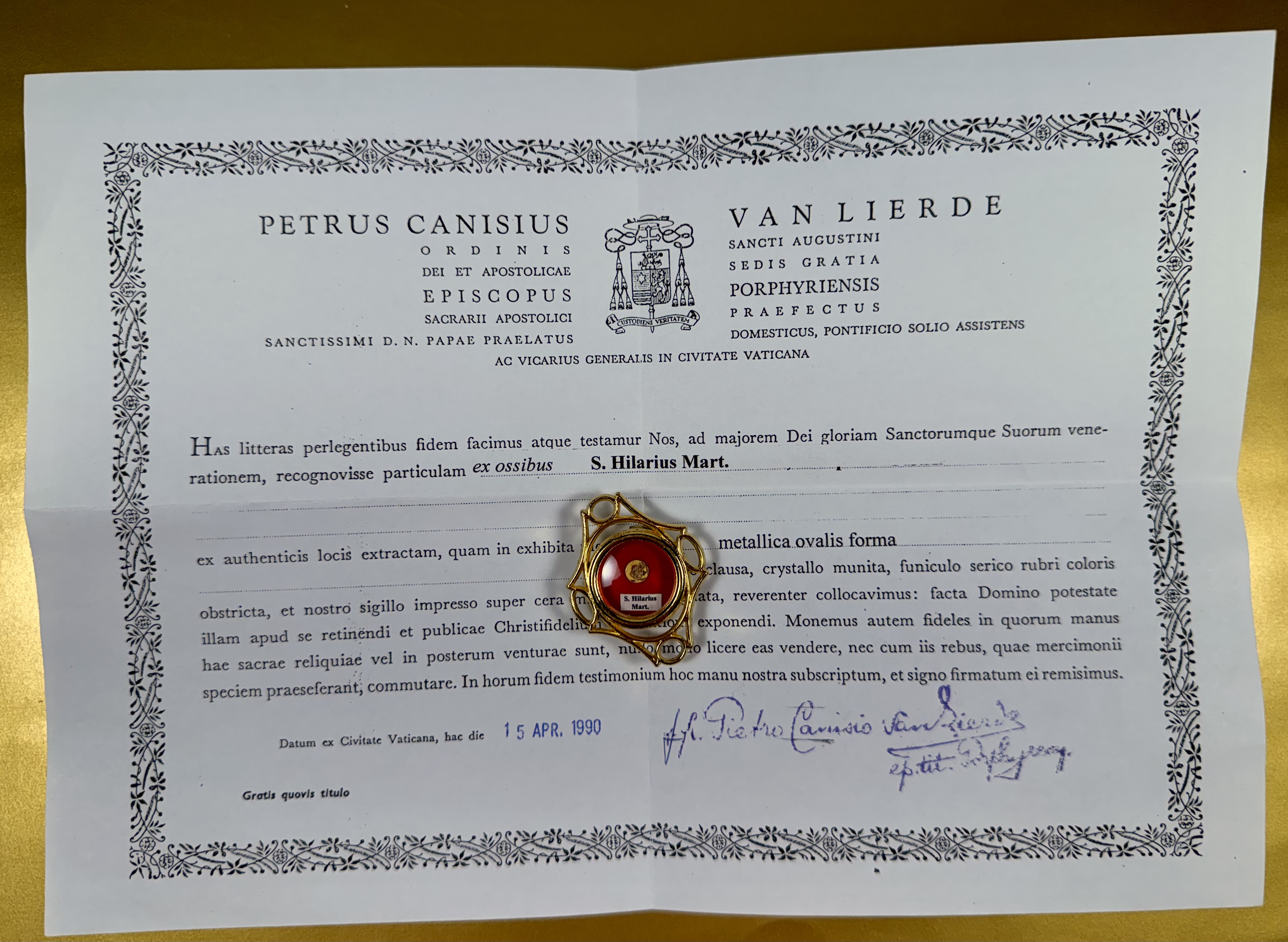 Saint Hilarius of Aquileia († c. 284) was an early Bishop of Aquileia, venerated as a saint and martyr. During the persecution of Numerian he was tortured to death under the prefect Beronius. Before his death Hilarius's prayers brought about the collapse of the pagan temples in Aquileia and the images of the gods they contained, to which he had refused to sacrifice. His martyrdom was shared by his deacon Tatianus, otherwise Tatian, with whom Hilarius's name is often linked, as in the dedication of Gorizia Cathedral, and also by their companions Felix, Largus and Dionysius. The feast day of Hilarius and companions is 16 March, the date of their martyrdom.