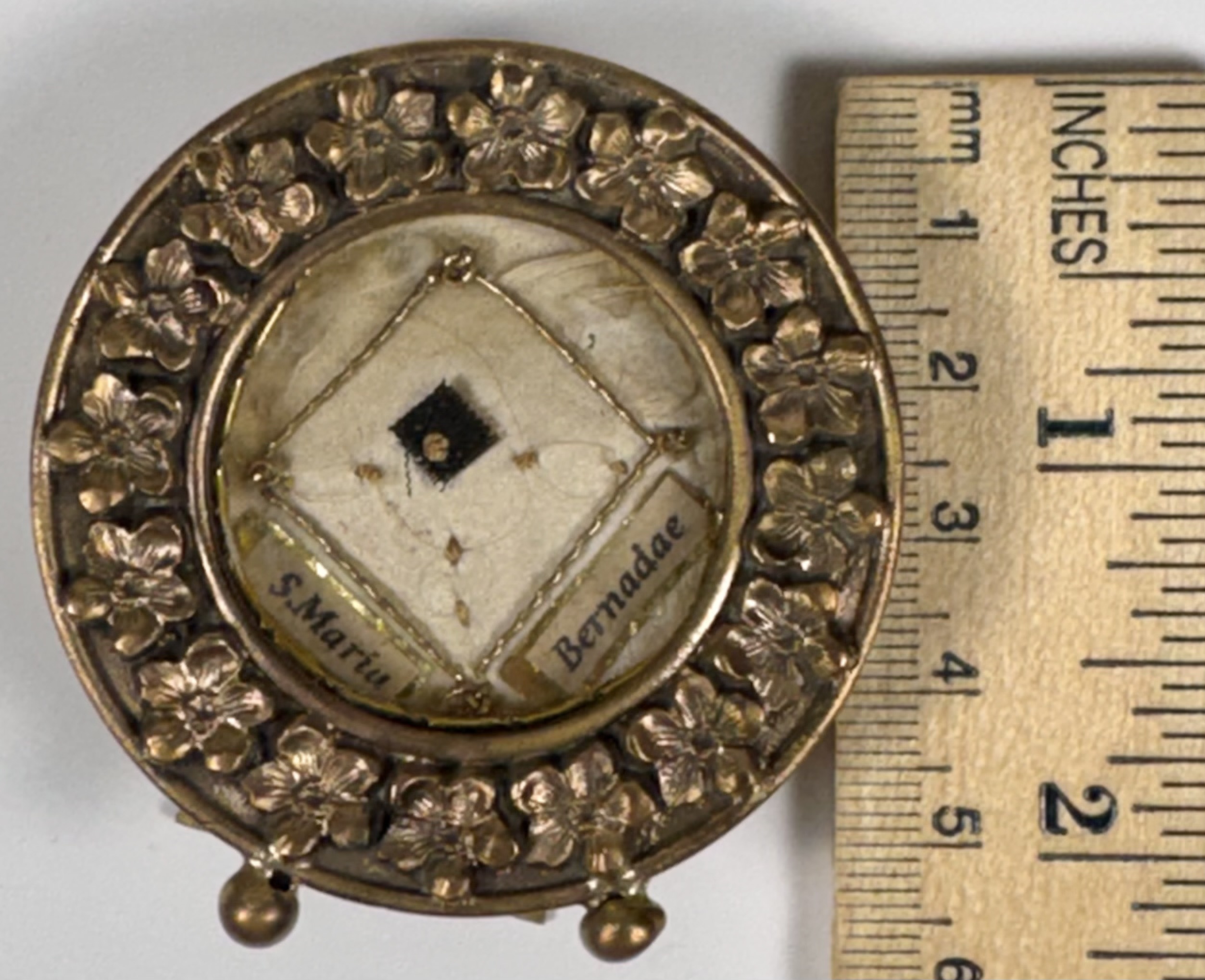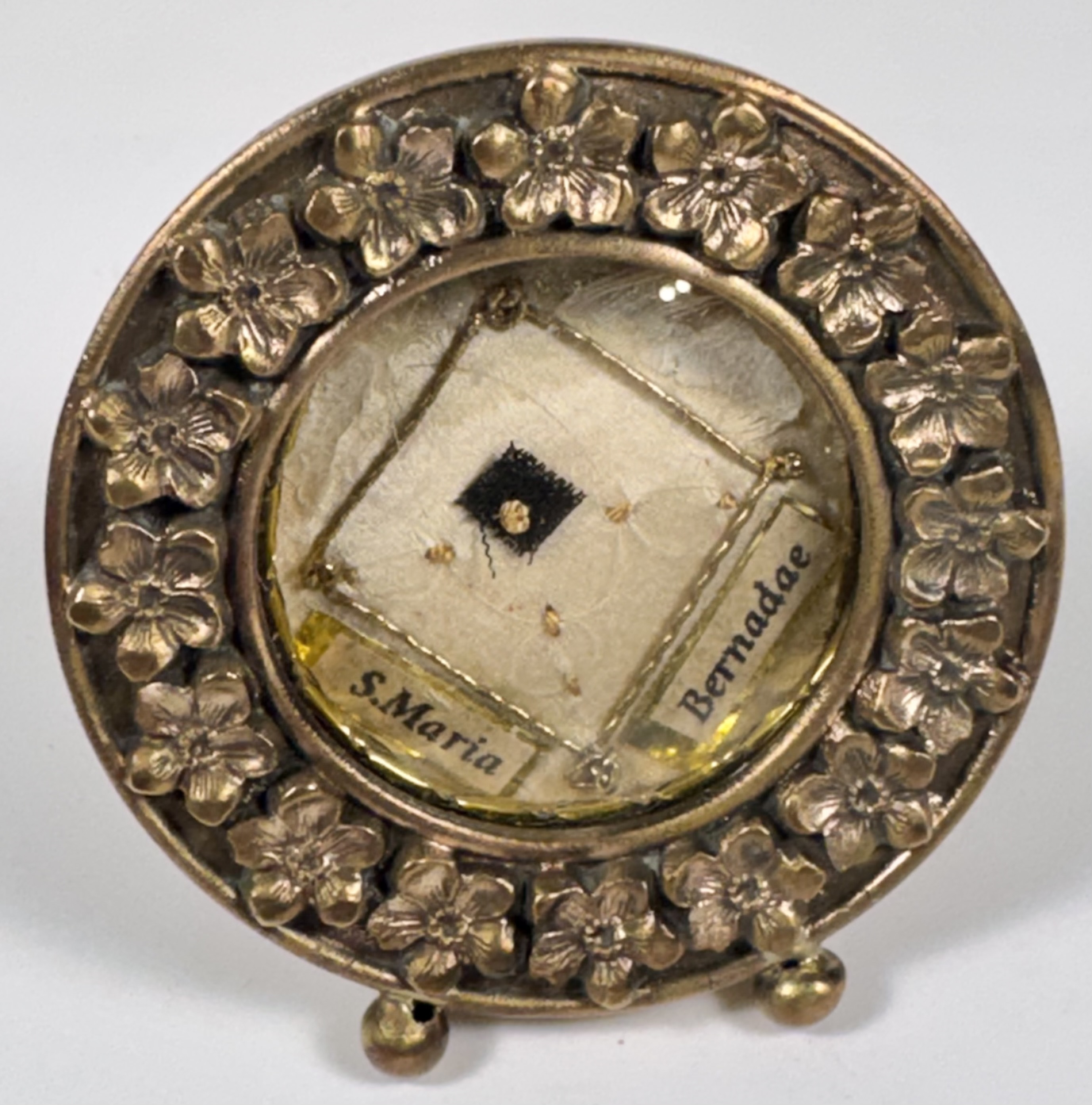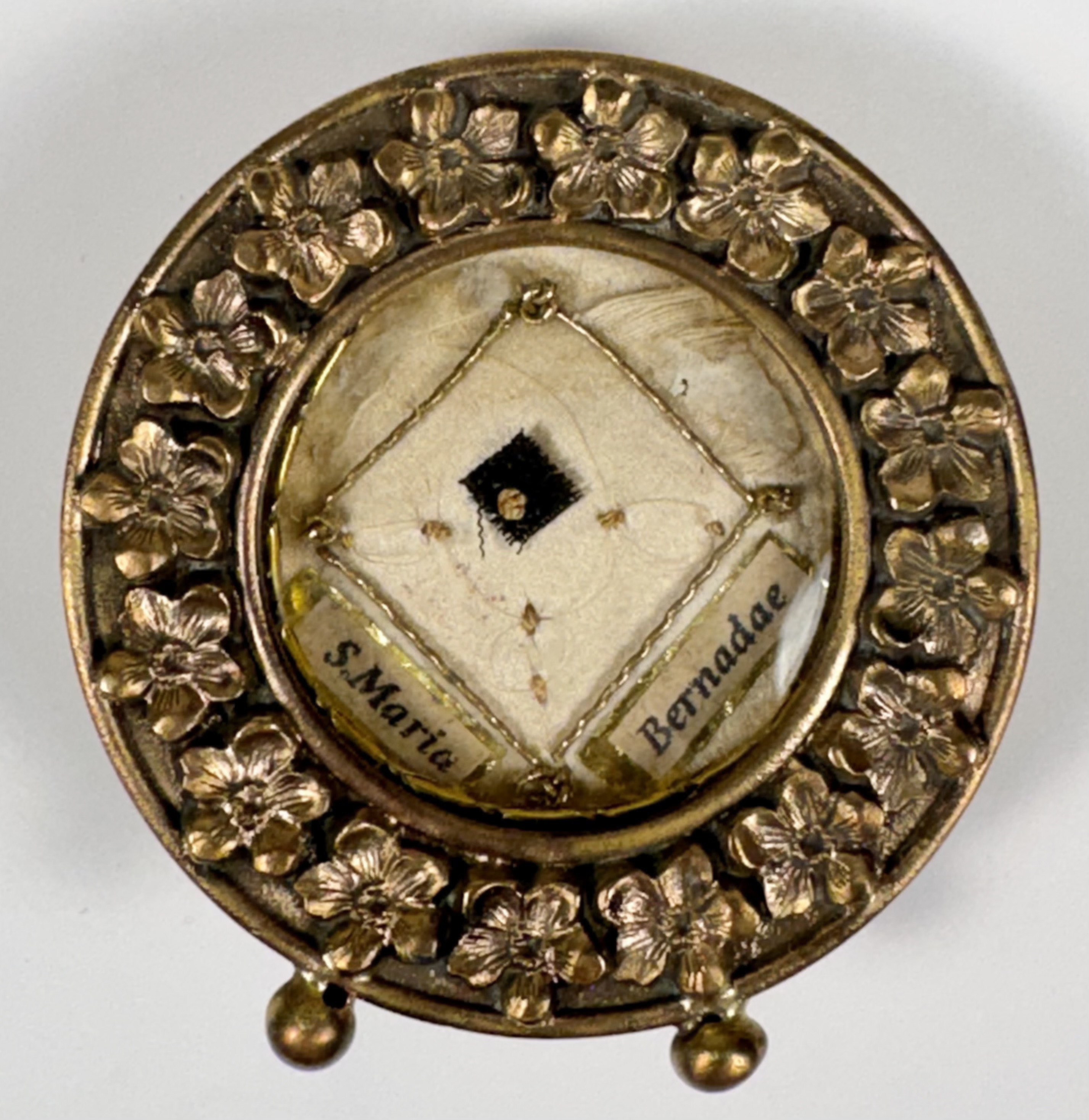 Saint Maria Bernadette Soubirous (†1879) is venerated as a saint in the Catholic Church and is best known for the Marian apparitions of a "small young lady" who asked for a chapel to be built at the nearby garbage dump of the cave-grotto at Massabielle where apparitions are said to have occurred between in 1858. She would later receive recognition when the lady who appeared to her identified herself as the Immaculate Conception. On 29 July 1866, Bernadette took the religious habit of a postulant and joined the Sisters of Charity at their motherhouse at Nevers. She died of her long-term illness at the age of 35 on 16 April 1879 while praying the holy rosary. The Marian shrine at Lourdes (Midi-Pyrénées, France) went on to become a major pilgrimage site, attracting over five million pilgrims of all denominations each year. Bernadette is the Holy Patron of bodily illness, Lourdes, France, shepherds, against poverty, and people ridiculed for their faith. She was Beatified on 14 June 1925 and Canonized on 8 December 1933 by Pope Pius XI. Her Feast day is commemorated on 16 April, alternatively in France by some traditionalist congregations on 7 February.