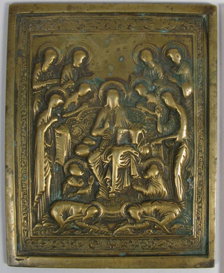 Medium Russian brass plaquette icon depicting Savior of Smolensk