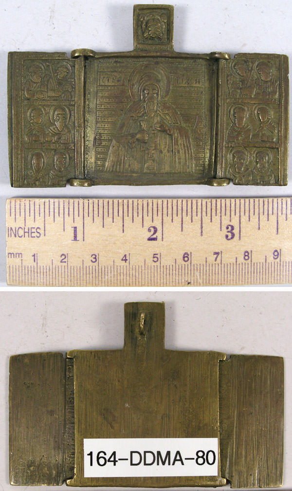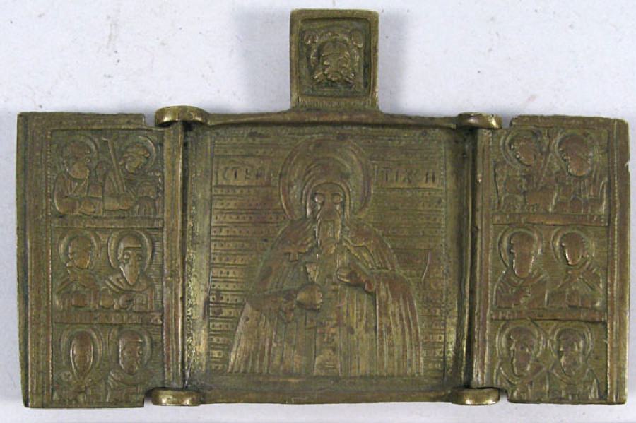 Saint Tikhon of Zadonsk (†1783) was a Russian Orthodox bishop and spiritual writer who was glorified as saint of the Orthodox Church. He was tonsured a monk at the age of thirty-four and later consecrated Bishop of Voronezh. He served as bishop for a little under seven years and retired to the monastery of Zadonsk because of poor health there he lived for the rest of his life. In 1846, during the construction of the new cathedral at Zadonsk, Saint Tikhon's relics were uncovered and reported to be incorrupt. It was reported that many miracles occurred near his relics, so he was made a saint by the Russian Orthodox Church in 1861. His feast day is celebrated on August 13 and the Uncovering of His Relics is celebrated on May 14.