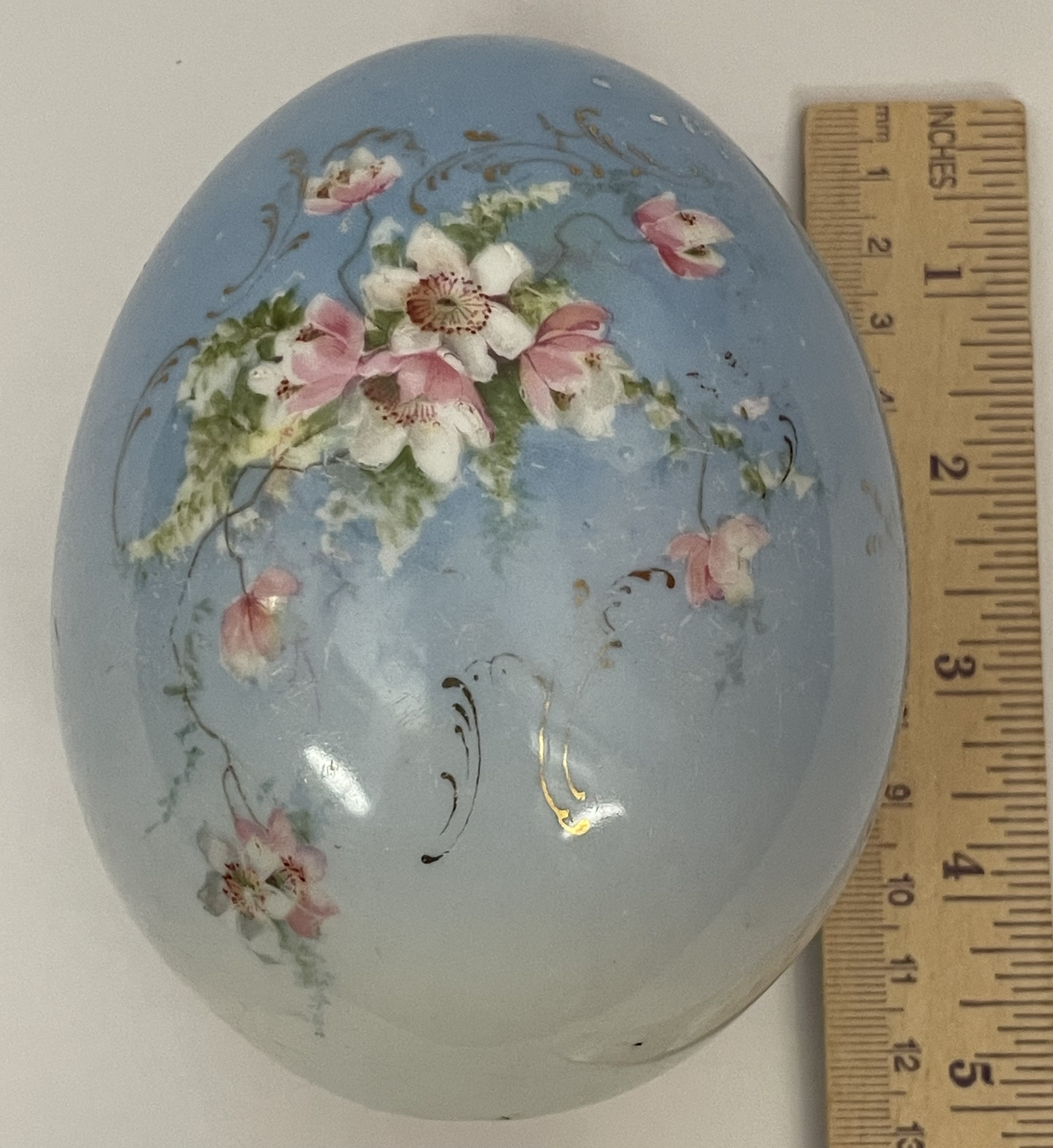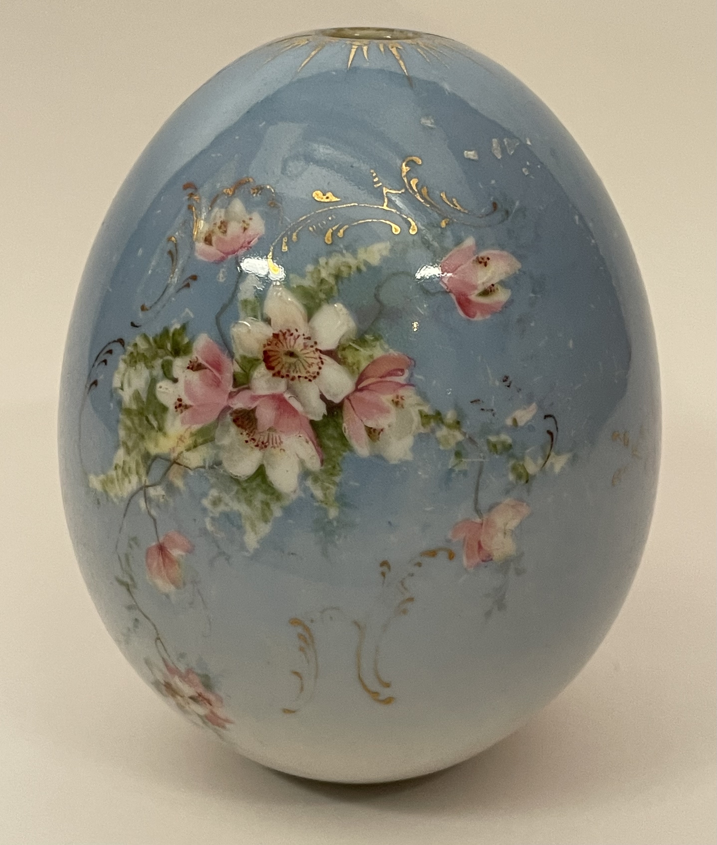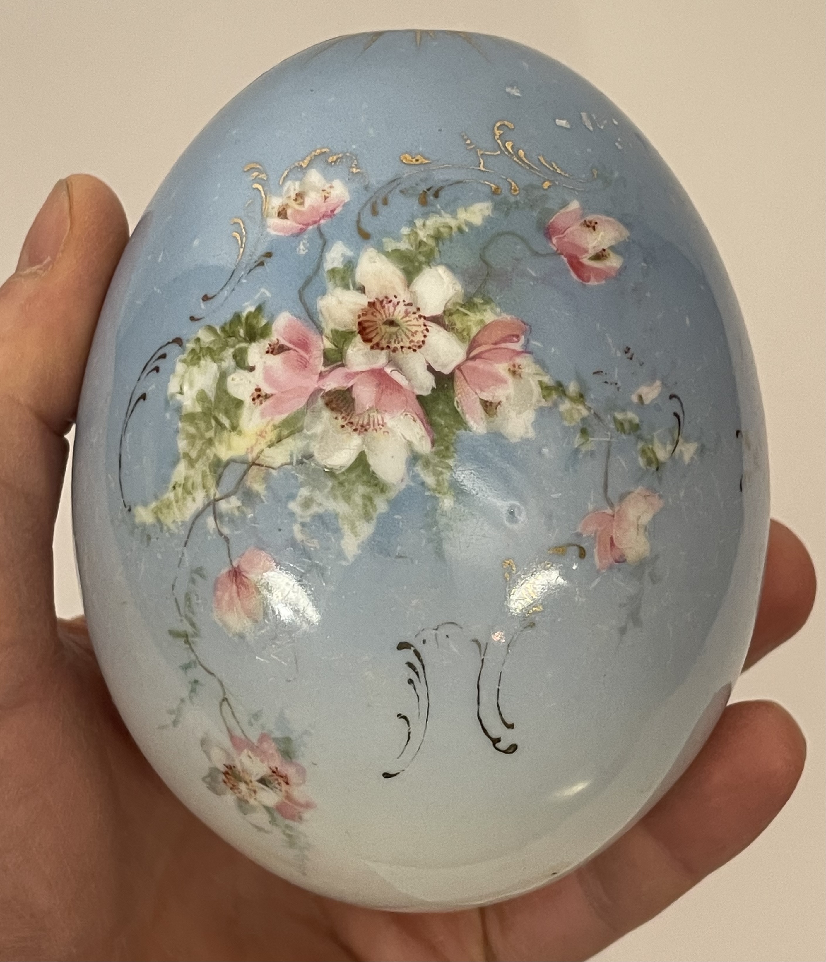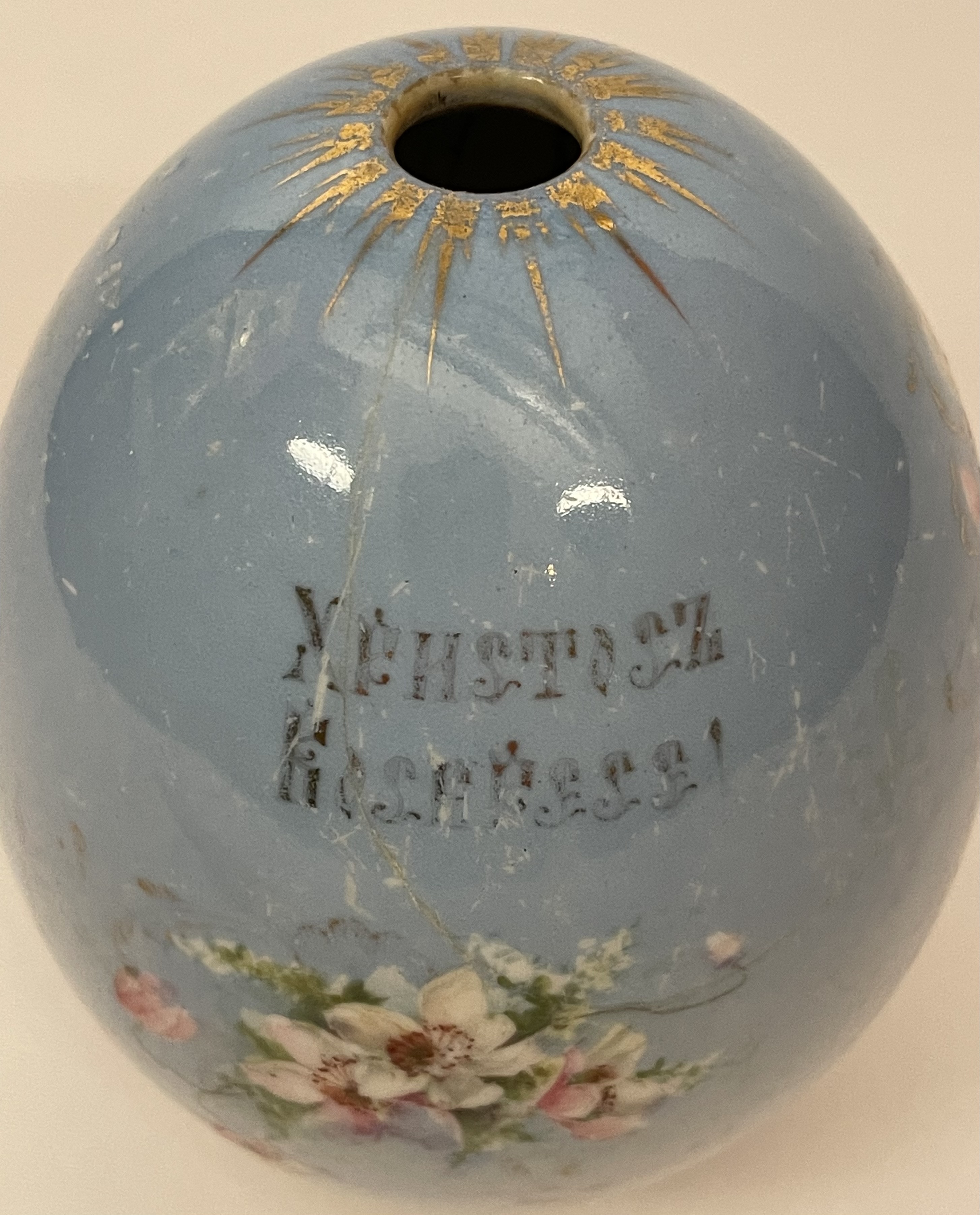 Large Russian Imperial porcelain Easter Egg with hand-painted wild flowers and a traditional writing in Russian "Christ is Risen!" Light scratches on the surface, otherwise very good original condition.