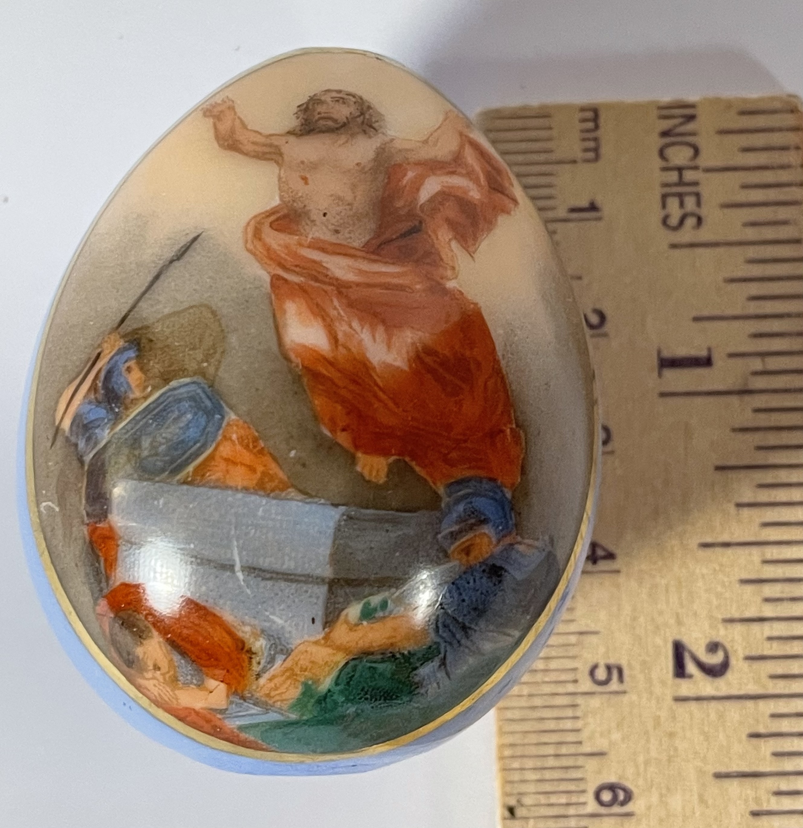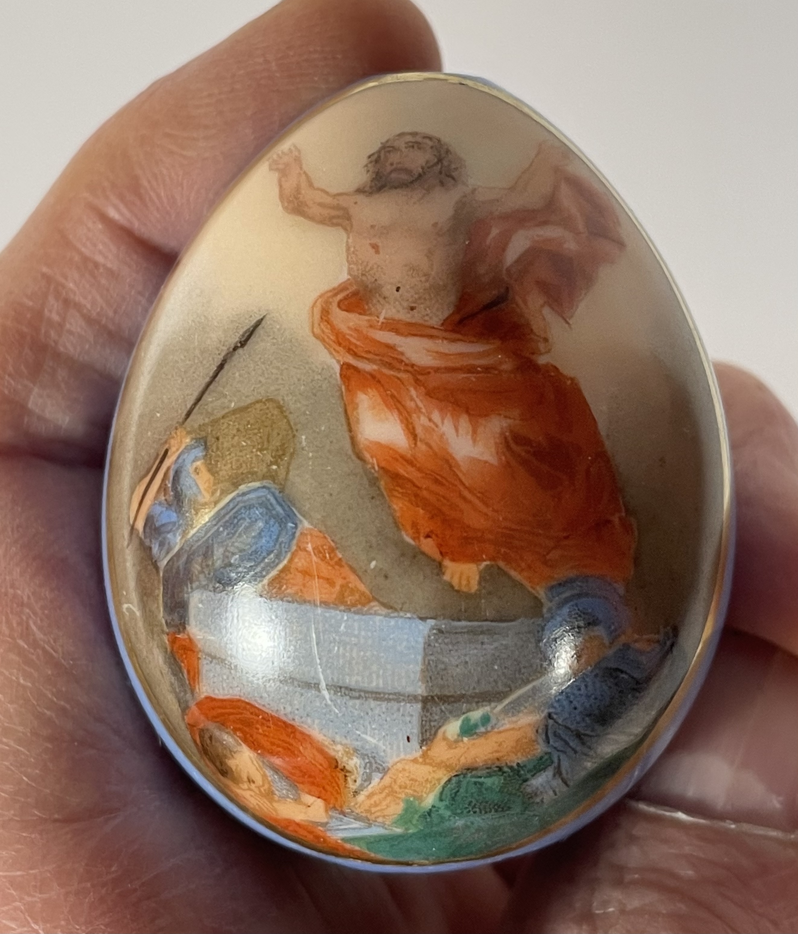 Small Russian Imperial porcelain Easter Egg with hand-painted image of Risen Christ. Very good original condition.