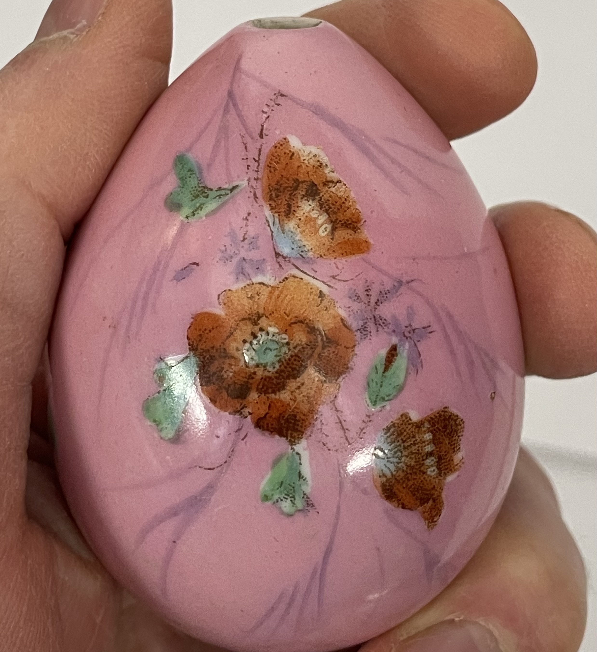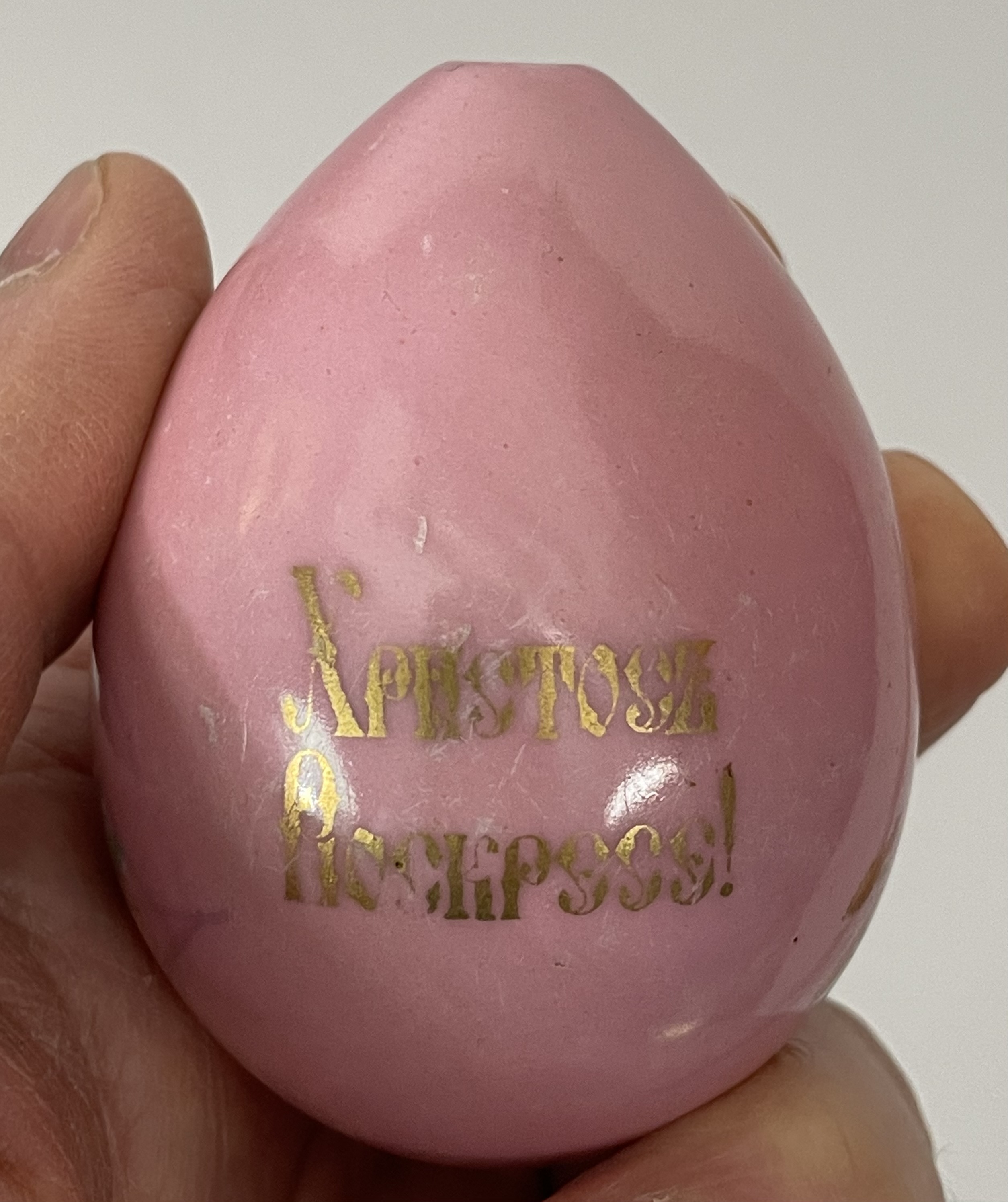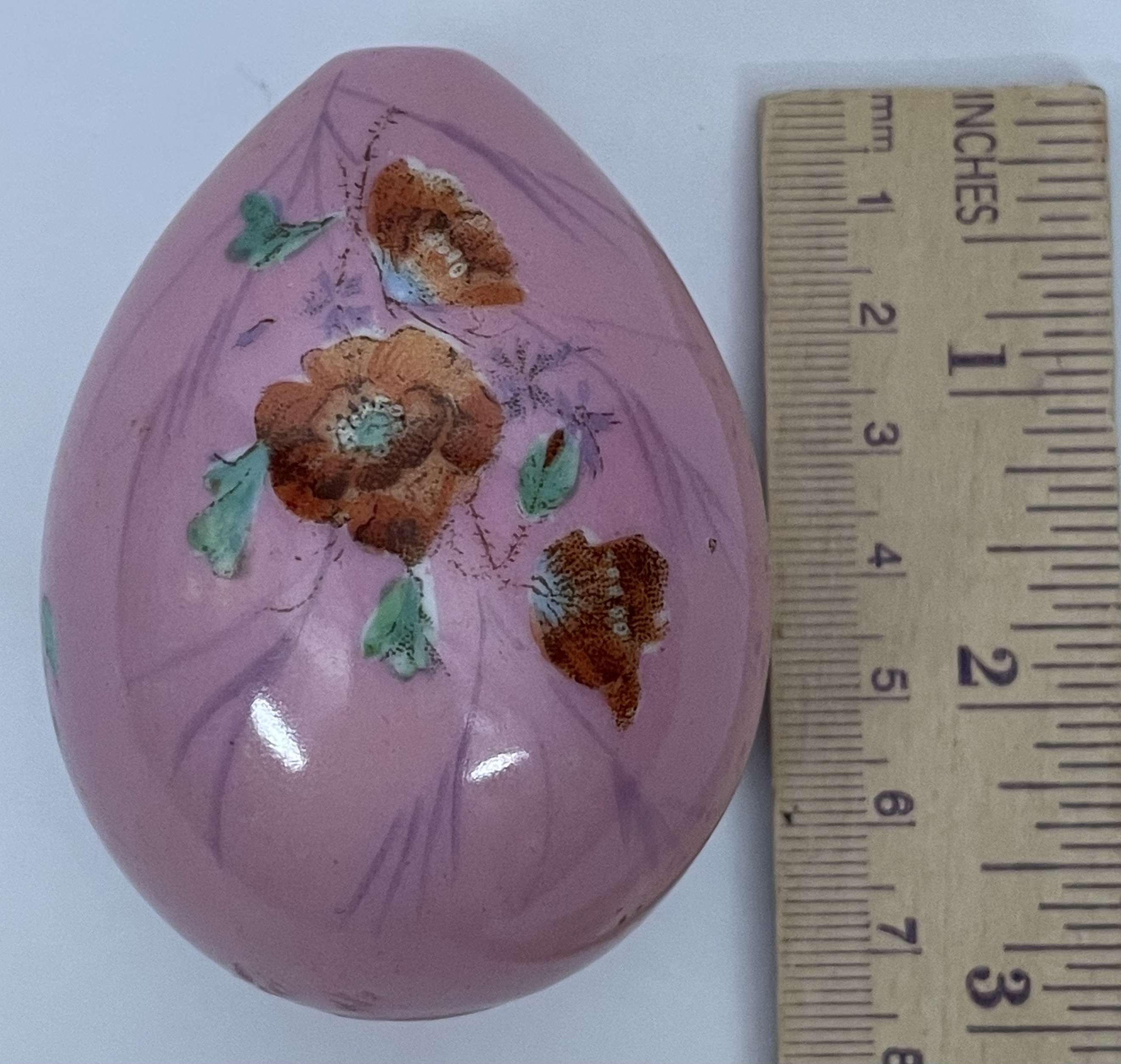 Small Russian Imperial porcelain Easter Egg with hand-painted wild flowers and traditional Orthodox Easter greeting "Christ is Risen!". Very good original condition.