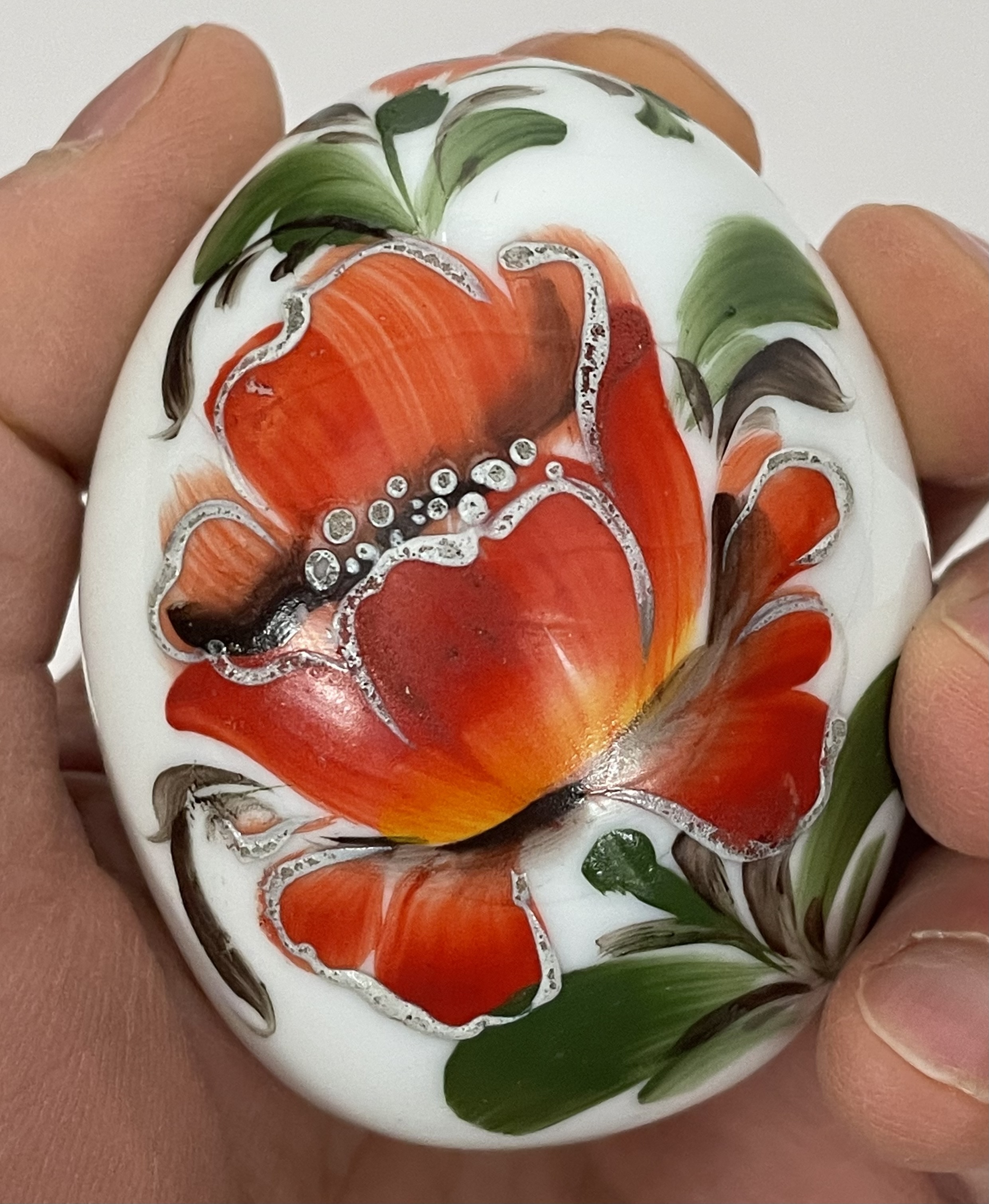 Medium Russian Imperial porcelain Easter Egg with hand-painted wild flowers and an abbreviation XB for a traditional Orthodox Easter greeting "Christ is Risen!". Very good original condition.
