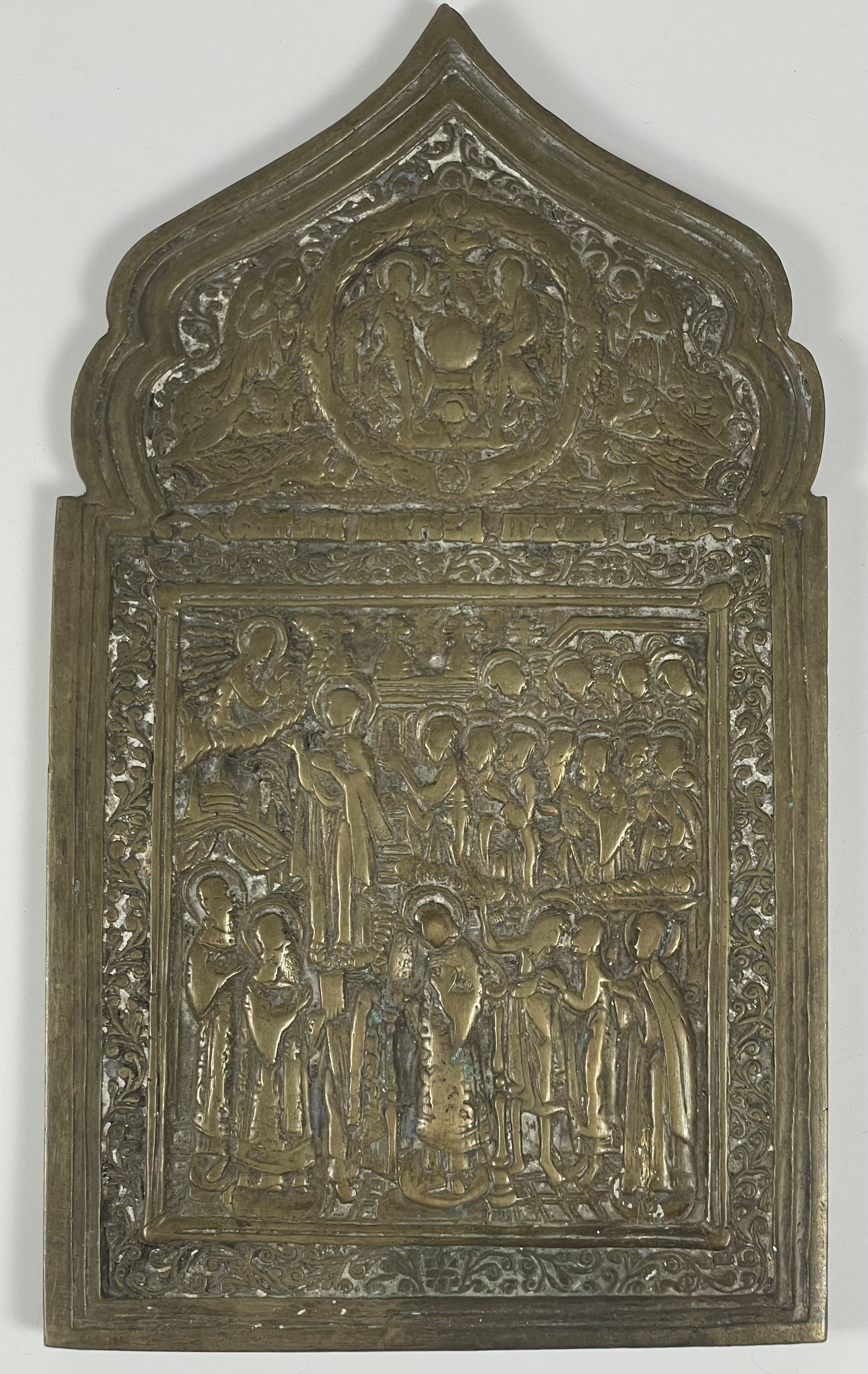 The Protection (Pokrov) of the Most Holy Mother of God is one of the most beloved Feast days on the Orthodox calendar commemorated on October 1, celebrating the appearance of the Virgin Mary in Constantinople in the 10th century at the time when the people in the city were threatened by the Barbarian invasion. Saint Andrew, the Holy Fool, with his disciple Saint Epiphanius, and a group of people, saw the Mother of God, Saint John the Baptist, and several other Saints and Angels during a vigil in the Church of Blachernae, nearby the city gates. The Mother of God approached the center of the church, knelt down and remained in prayer for a long time with her face drowned in tears. Then she took her veil off and spread it over the people as a sign of protection. After the appearance of the Mother of God, the danger was averted and the city was spared from bloodshed and suffering. On the icon, the Theotokos is depicted standing on a cloud in aureola of light with city walls behind her holding her veil surrounded by apostles, saints, and two angels behind her. Below her (on the right corner) are Saint Romanos the Melodist, Saint Epiphanius, and Saint Andrew the Fool.