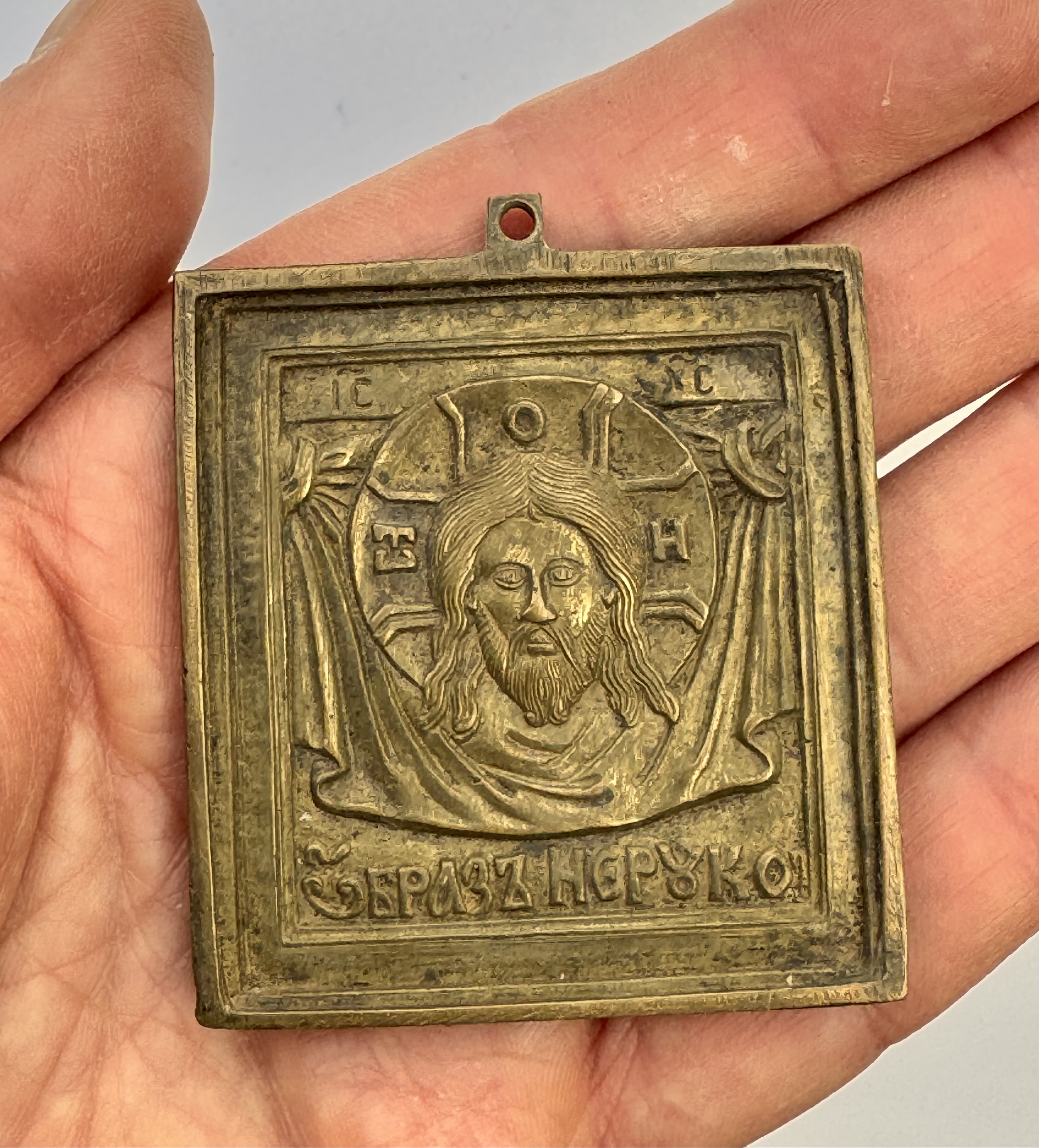 The Holy Mandylion icon represents the first not made by human hands image of the Savior miraculously created by Christ himself. According to the Christian tradition, King Abgar of Edessa wrote to Jesus, asking him to come to cure him of an illness. Instead, one of the seventy disciples, Thaddeus, is said to have come to Edessa, bearing the words and an image of Jesus, by the virtues of which the king was miraculously healed. To create his likeness, Jesus used a face cloth that miraculously bore the image of His face. This image of Christ preserved on the face cloth was kept and venerated in Edessa and became known as “The Holy Image of Edessa”, the “Holy Mandylion” (from Greek “face cloth”), or “The Image Not Made With Human Hands”. This iconographic type is widely used by both the Eastern and the Western Christian Churches.