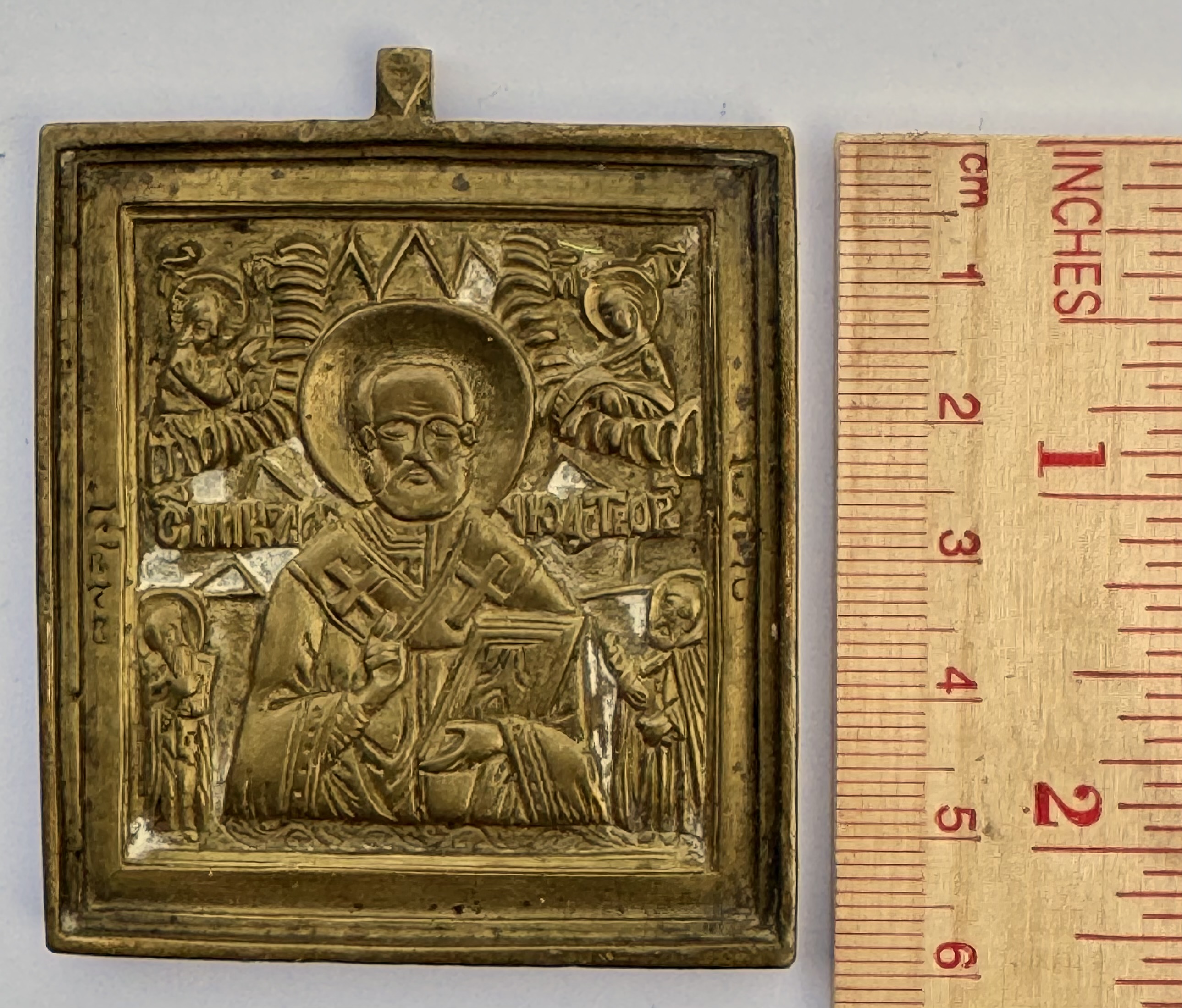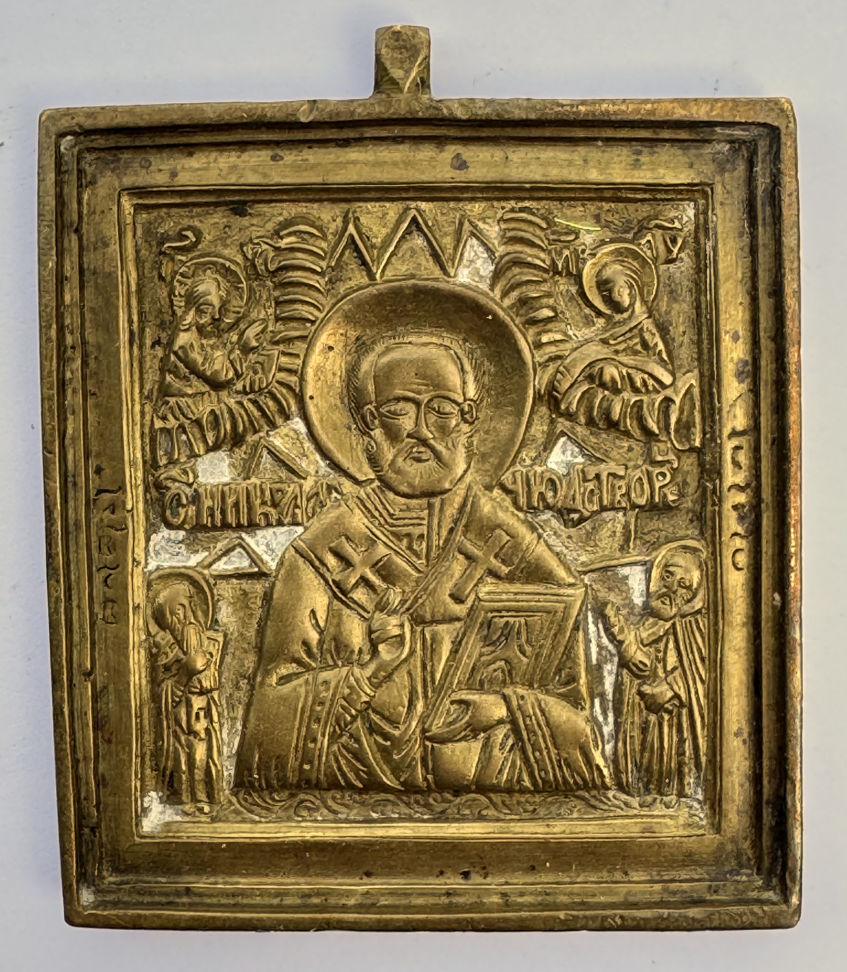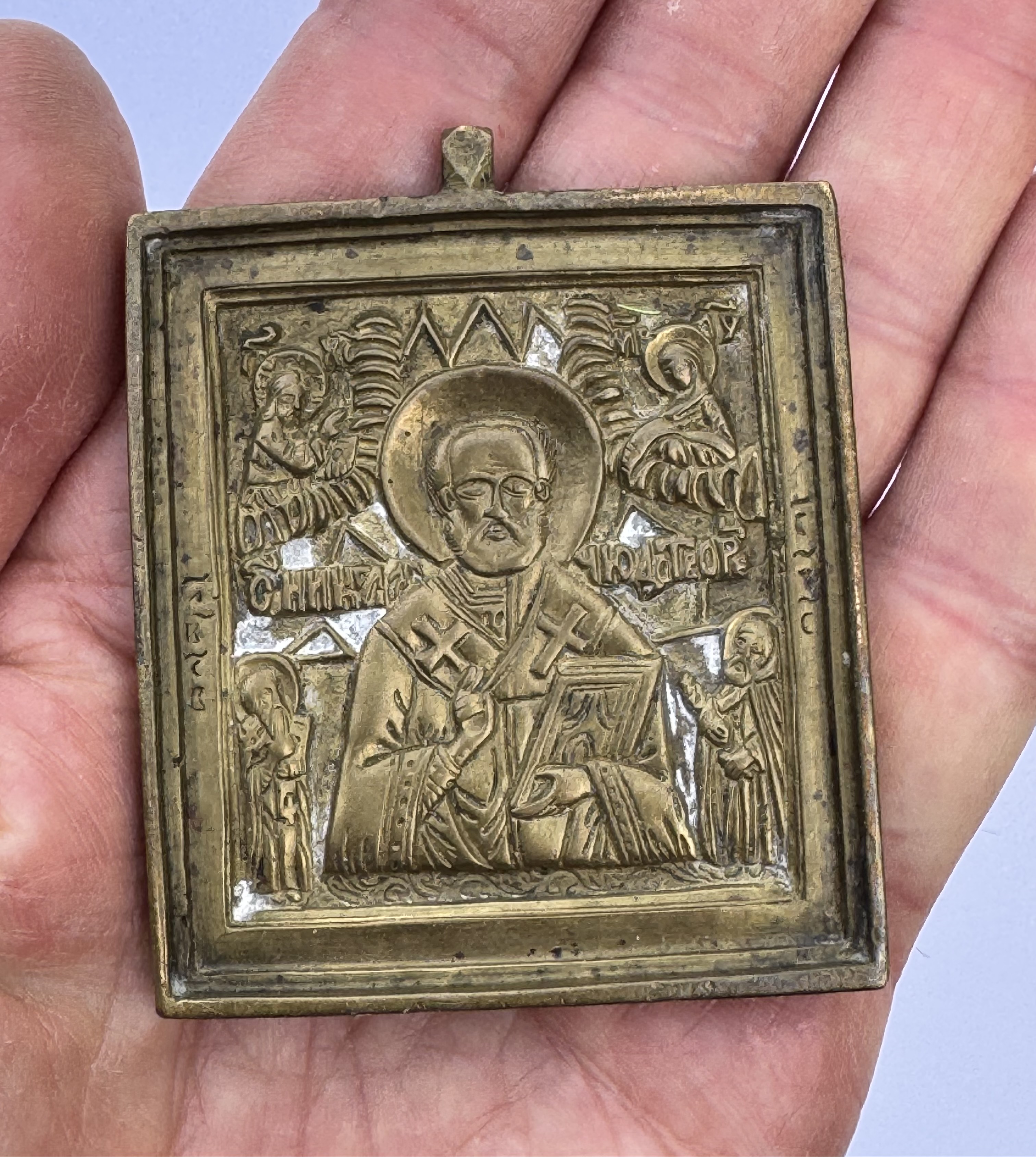 Small Russian Orthodox brass icon of St. Nicholas the Wonderworker of Myra