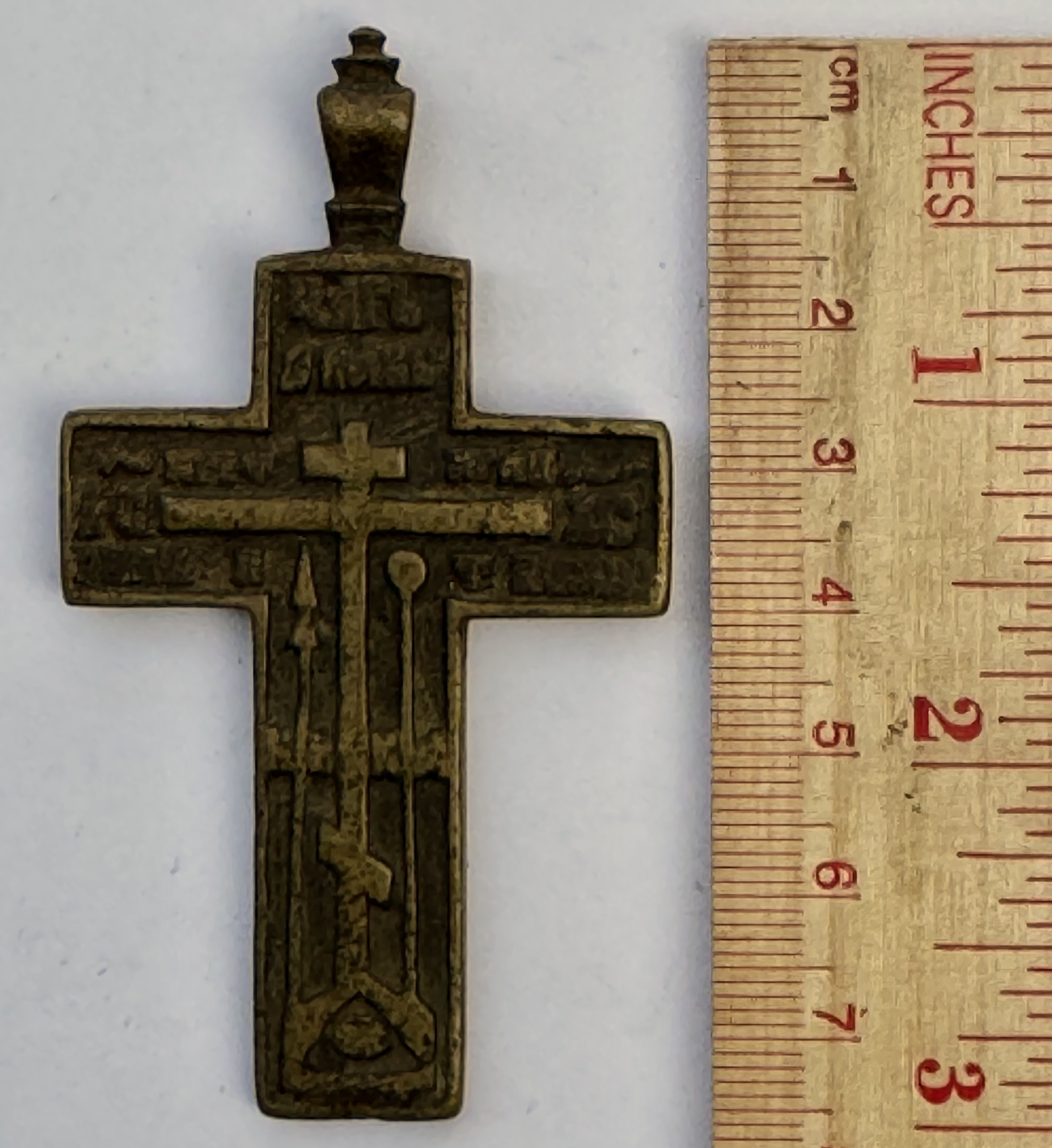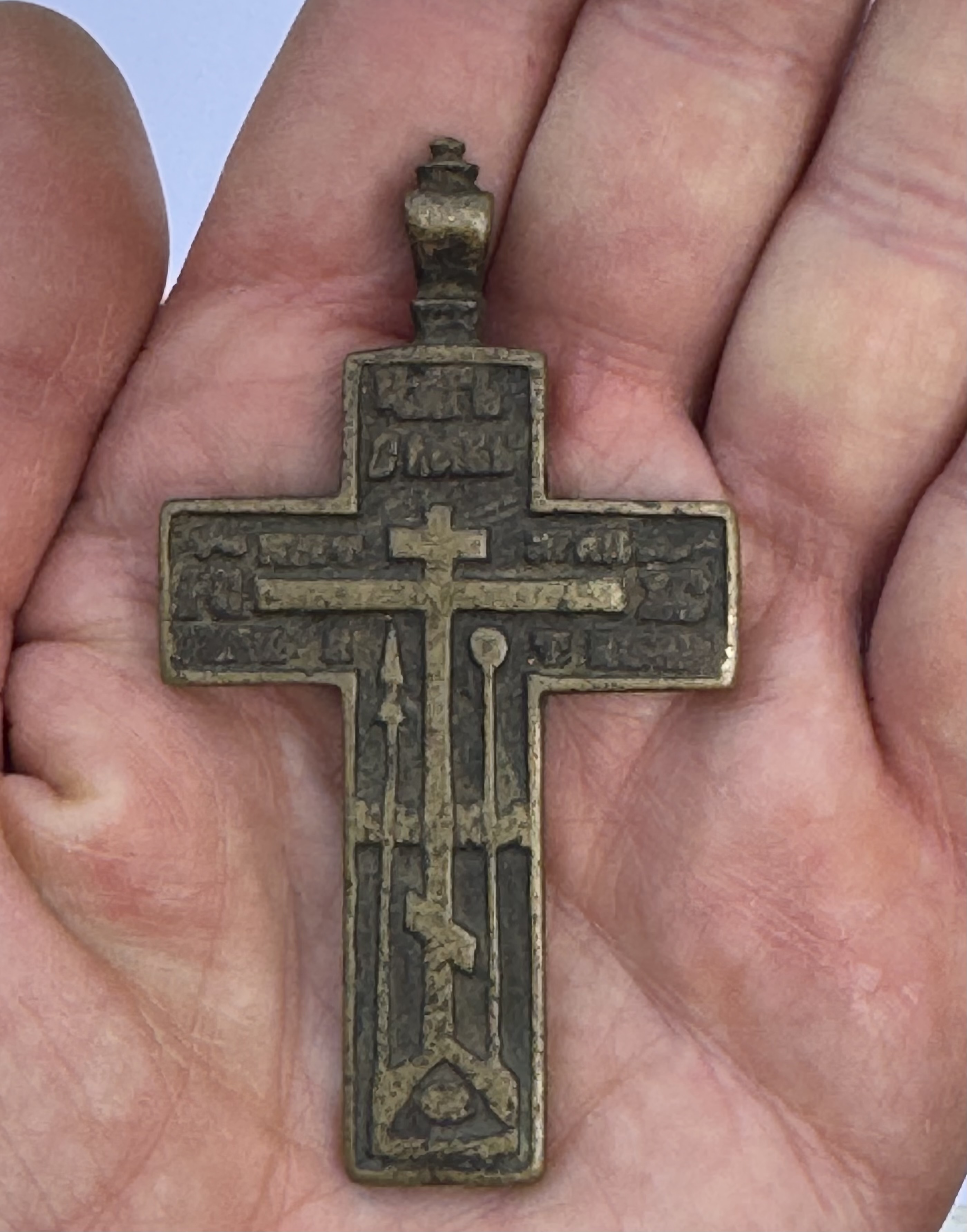 Russian Orthodox Old Believer's pectoral cross with a scene of the Golgotha Cross and the Instruments of Passion.