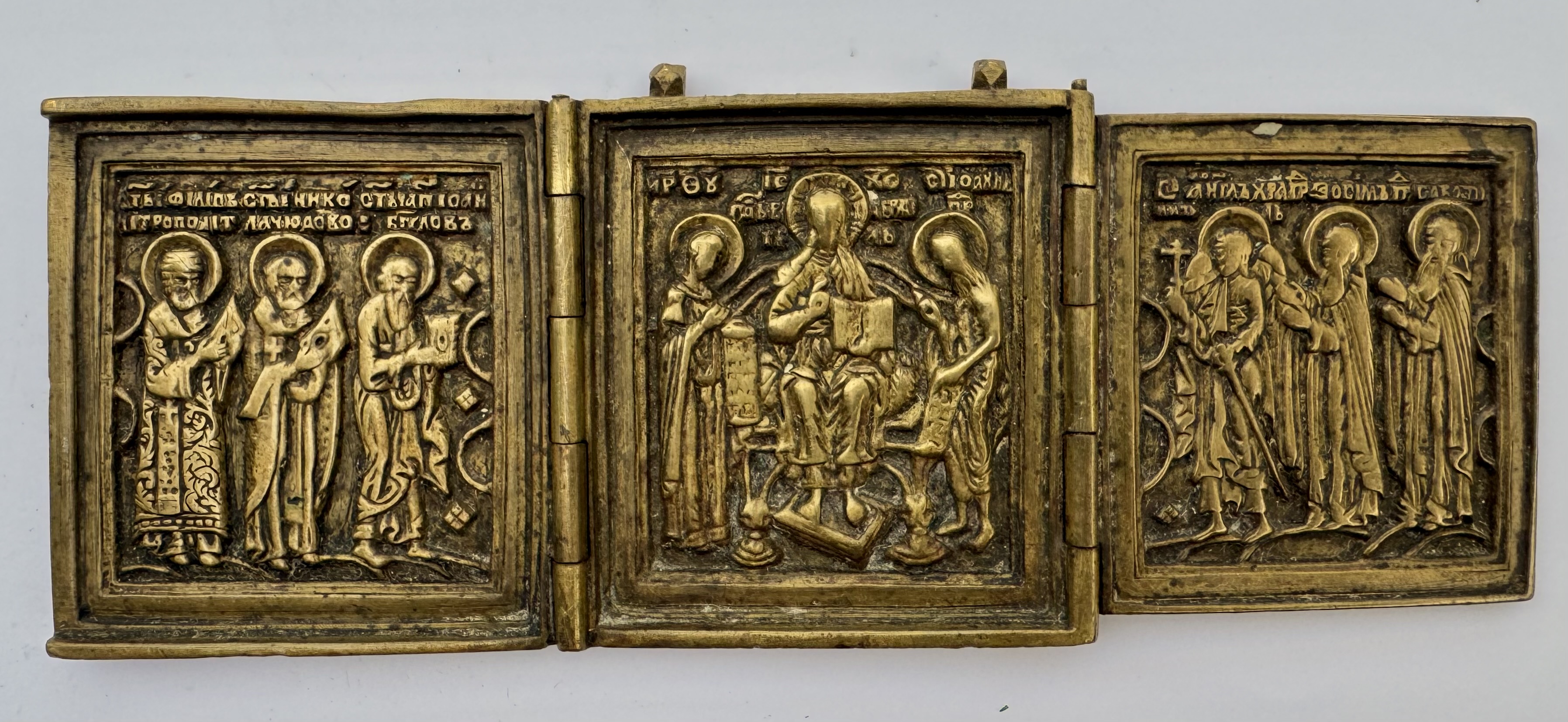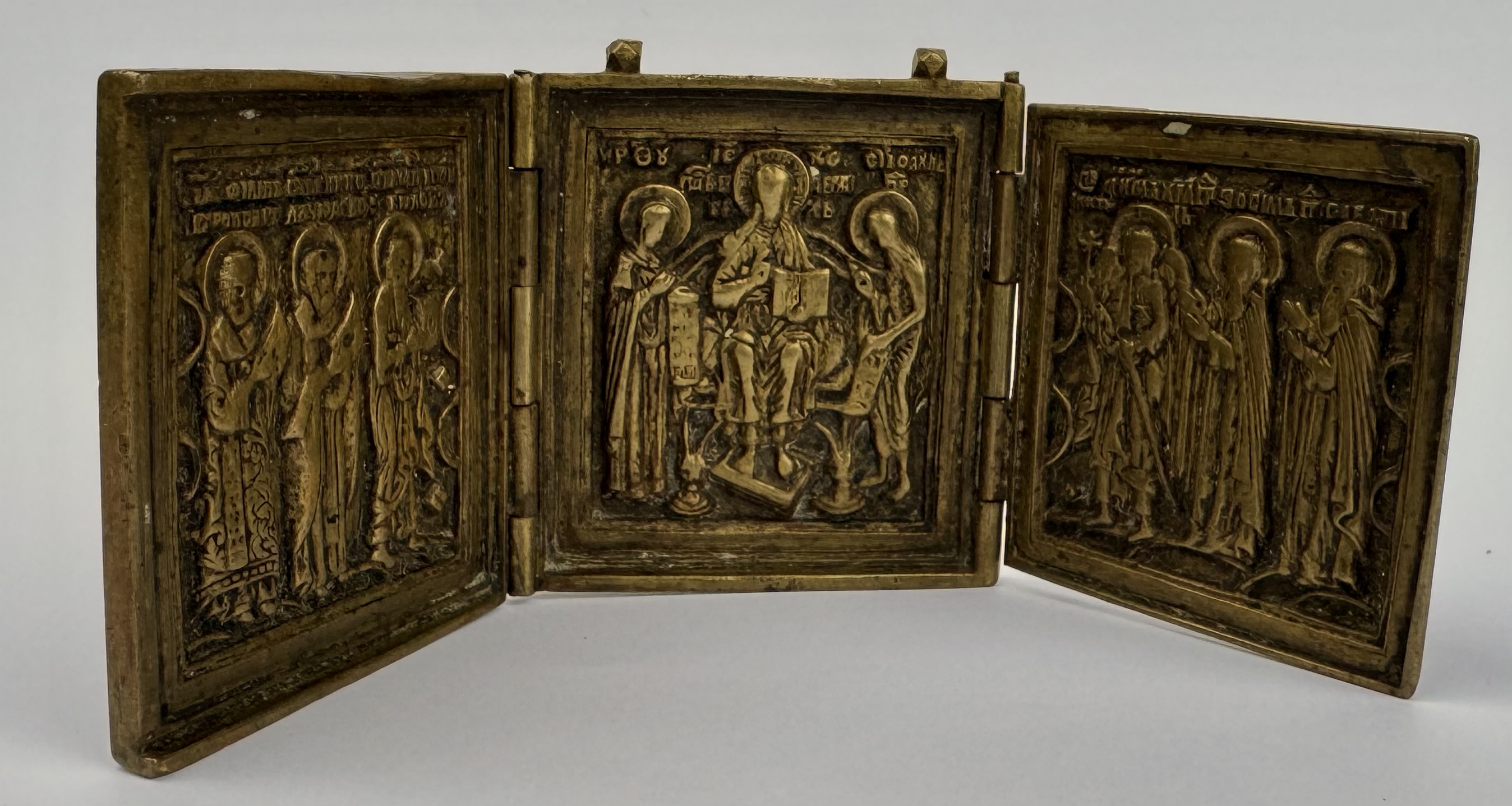 In Orthodoxy, the Deisis (from the Greek for "prayer" or "supplication") is a traditional iconic representation of Christ in Majesty flanked by the Virgin Mary and St. John the Baptist, and sometimes other saints and angels. Mary and John, and any other figures, are shown facing Christ with their hands raised in supplication on behalf of humanity. The presence of Mary and John, and other figures, is one of the differences with the Western Christ in Majesty, where the Four Evangelists and/or their symbols are more commonly included around Christ.