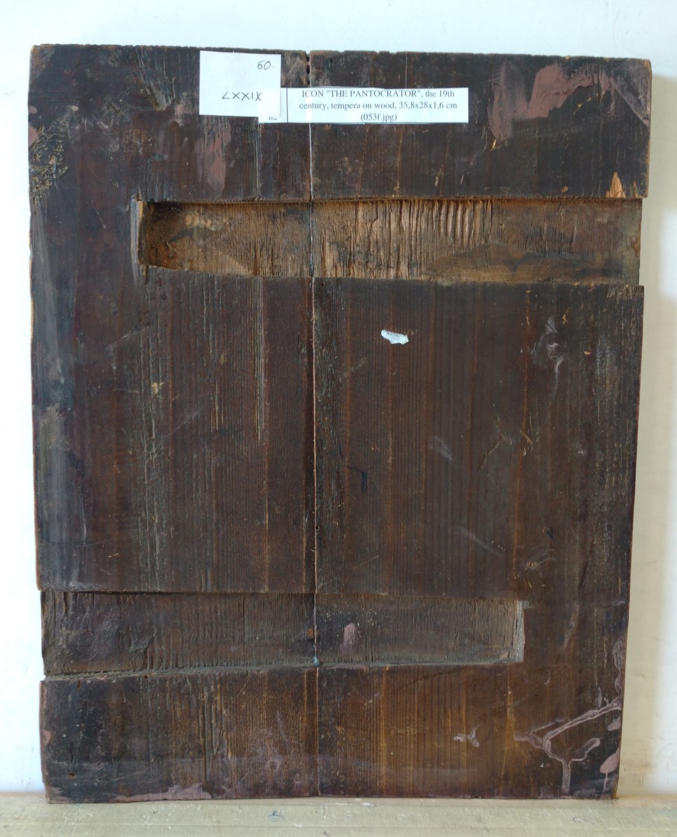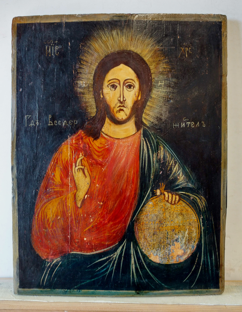 The icon depicts Christ as Pantocrator ( "Almighty" or "All-powerful") - pictured half-figured blessing with his right hand while holding an Orb in his left hand.