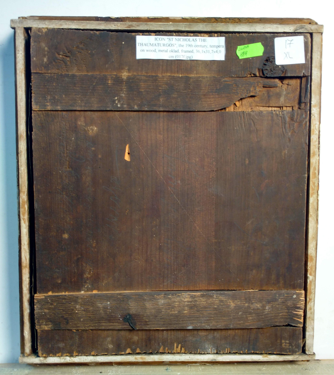 Russian Icon - St. Nicholas the Wonderworker of Myra in brass oklad and kiot frame