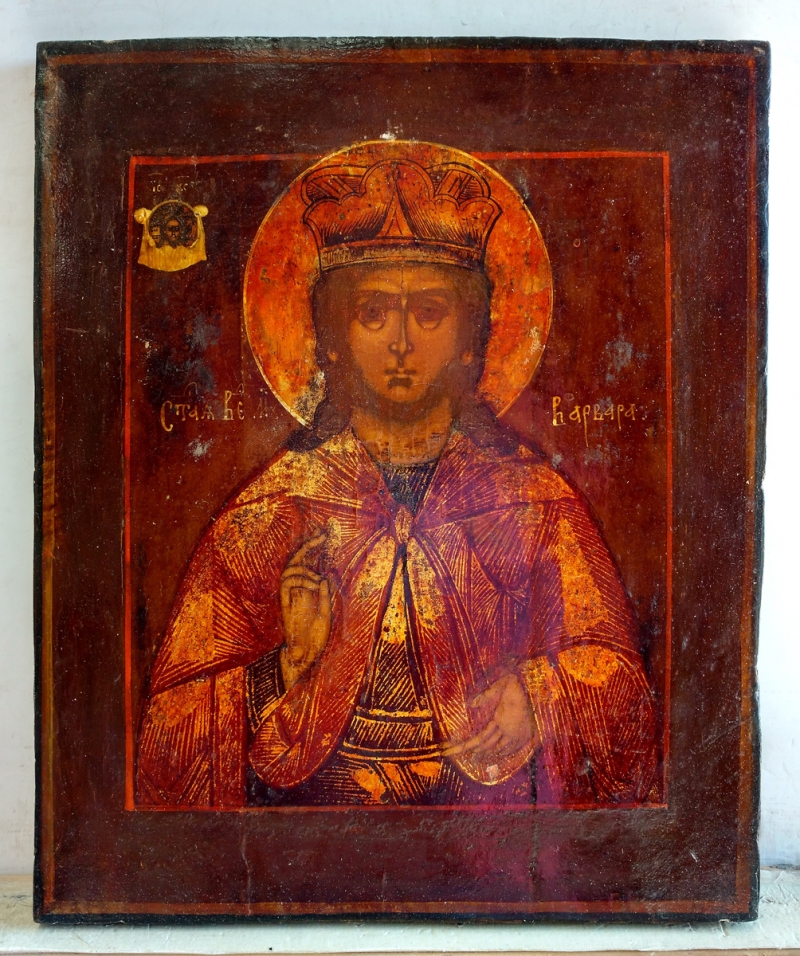 Saint Barbara, known in the Eastern Orthodox Church as the Great Martyr Barbara, was an early Christian saint and martyr living in the Greek city Nicomedia, present-day Turkey or in Heliopolis of Phoenicia, present-day Baalbek, Lebanon. Saint Barbara is often portrayed with miniature chains and a tower. As one of the Fourteen Holy Helpers, Barbara continues to be a popular saint in modern times, perhaps best known as the patron saint of armourers, artillerymen, military engineers, miners and others who work with explosives because of her old legend's association with lightning, and also of mathematicians. Many of her the thirteen miracles turn on the security she offered that her devotees would not die without making confession and receiving extreme unction.