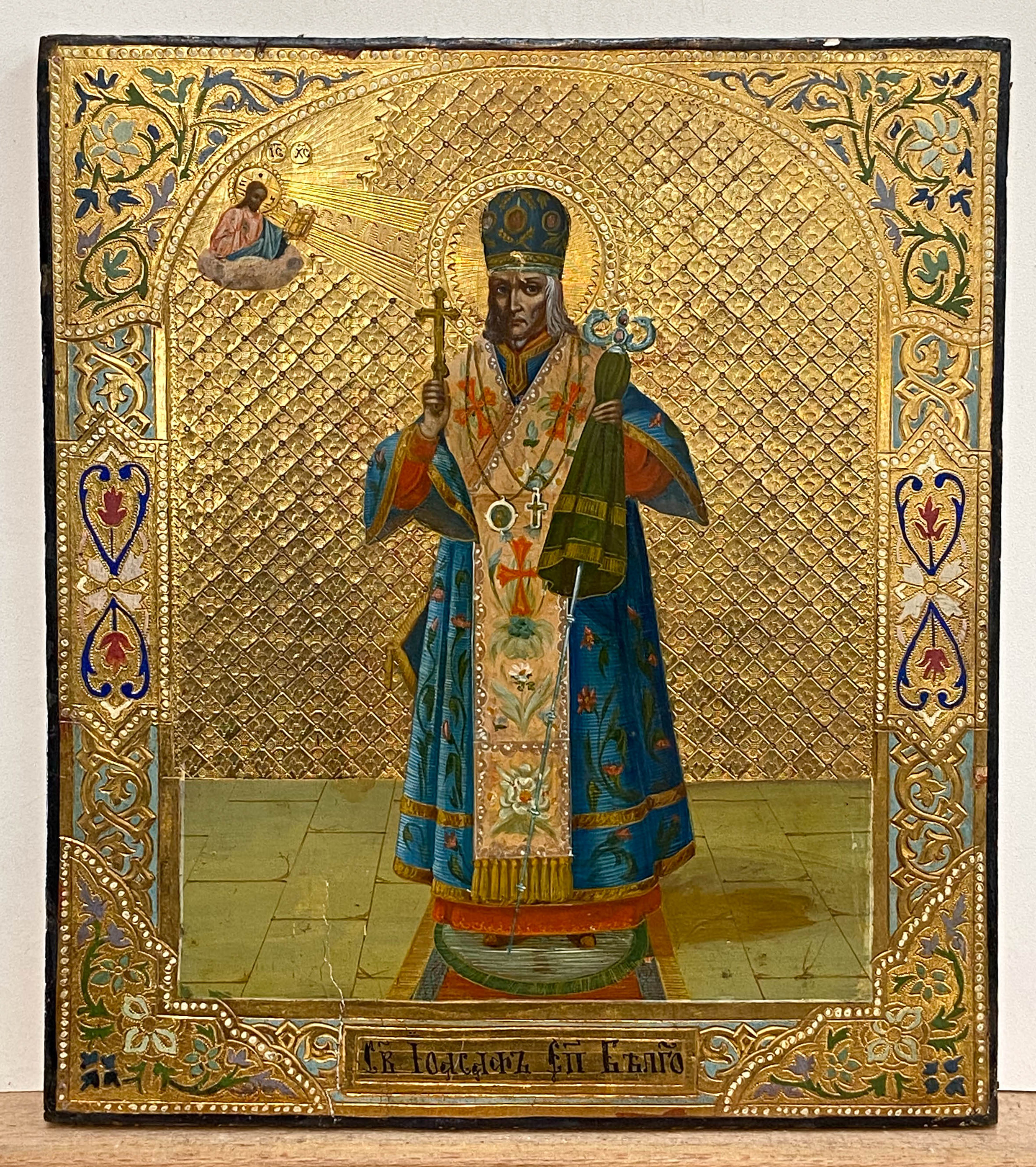 Saint Joasaph of Belgorod (Иоасаф Белгородский; †1754) was an 18th-century Russian Orthodox hierarch, bishop of Belgorod from 1748 until his death. His remains were found to be incorrupt, and after many miracles, he was glorified by the Eastern Orthodox Church in 1911. Before the First World War, Ioasaph's relics were greatly venerated and were brought out for the curing of the sick, when great crowds came hoping for a miraculous cure. One who attended such an occasion wrote "Now, it is hard to imagine that sight: thousands and thousands of sick, bent, crippled, possessed, and blind people stood and lay on both sides of the road, along which the saint's relics were to be carried."