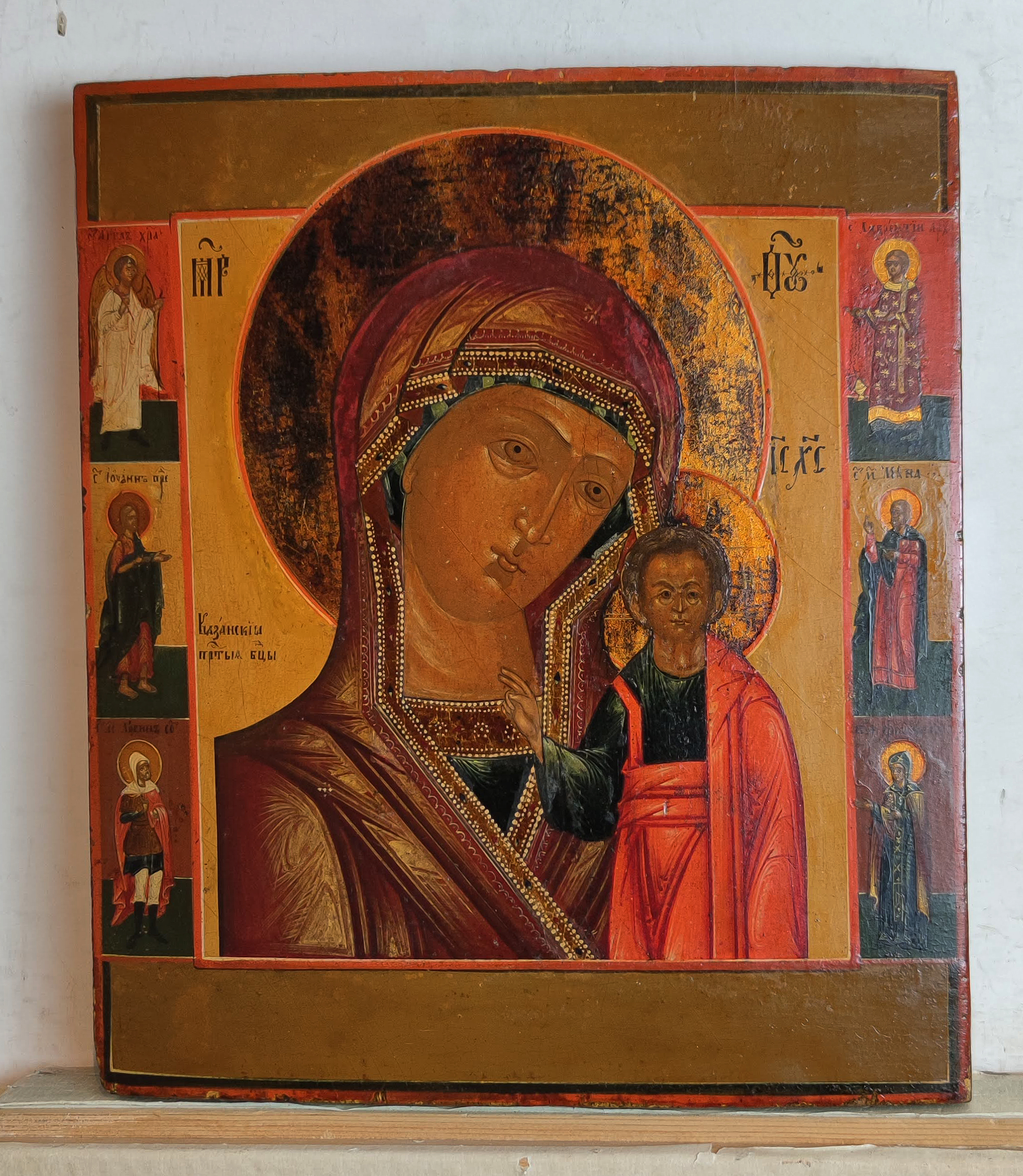 Russian icon - Our Lady of Kazan with 6 border saints