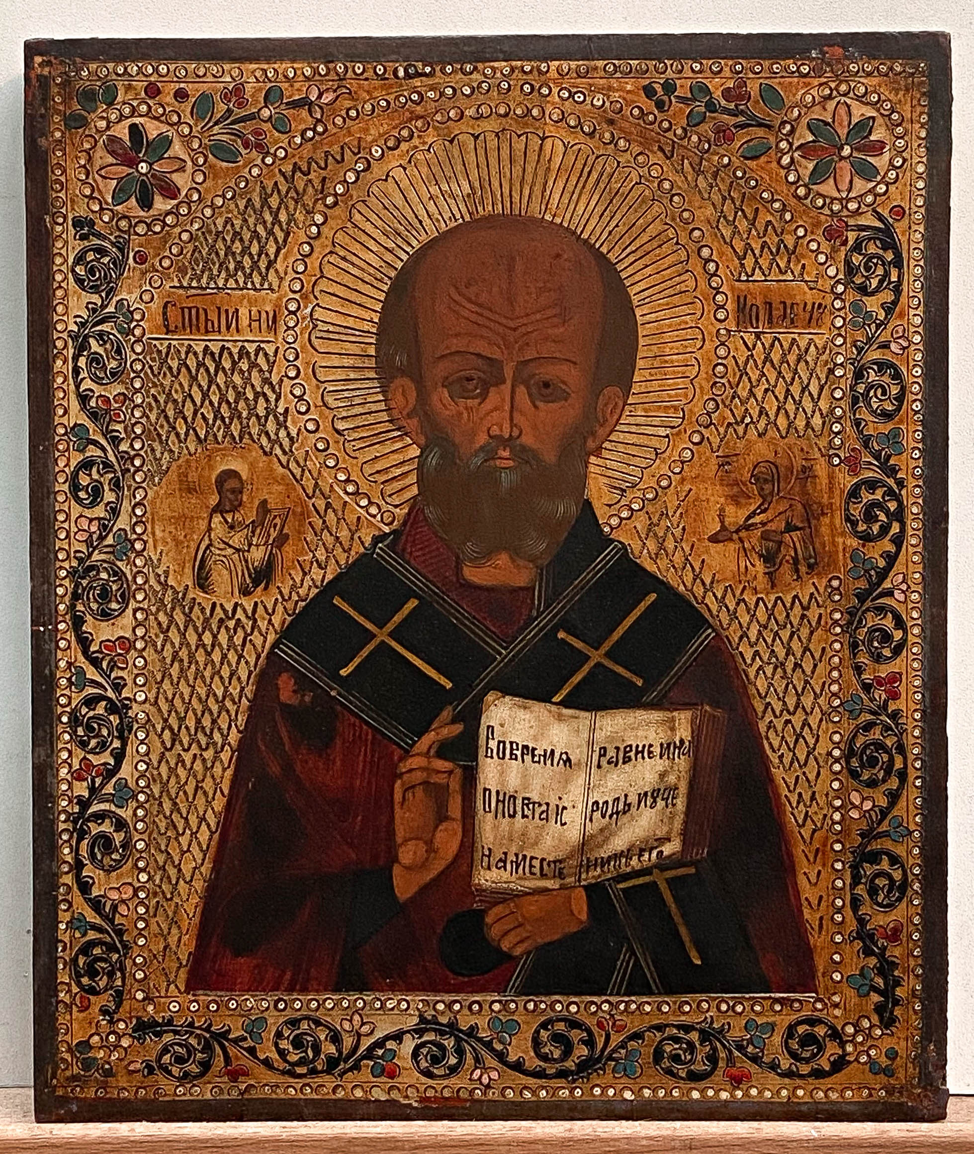 Saint Nicholas of Myra (270 - 343), was a historic 4th-century Saint and Greek Bishop of Myra. Because of the many miracles attributed to his intercession, he is also known as Nikolas the Wonderworker. He had a reputation for secret gift-giving, such as putting coins in the shoes of those who left them out for him, and thus became the model for Santa Claus. His reputation evolved among the faithful, as was common for early Christian saints.