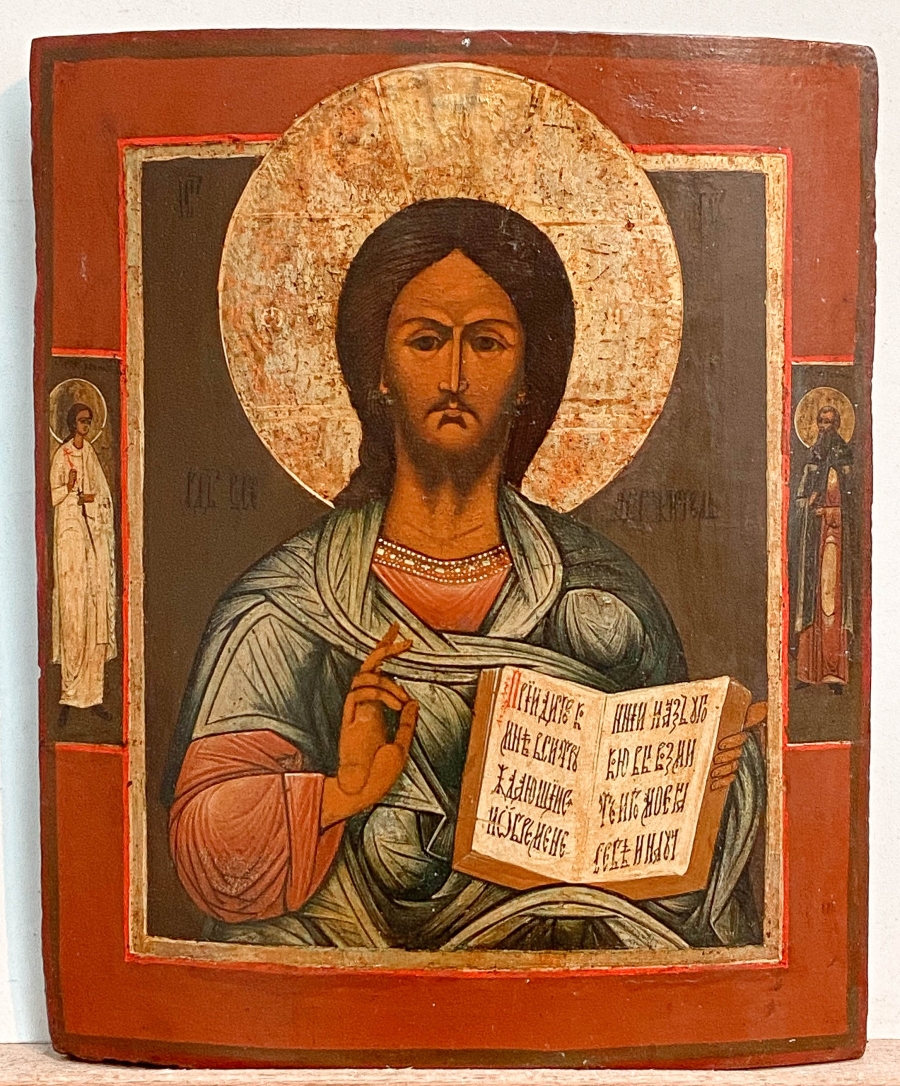 Russian Icon - Christ Pantocrator with 2 border saints