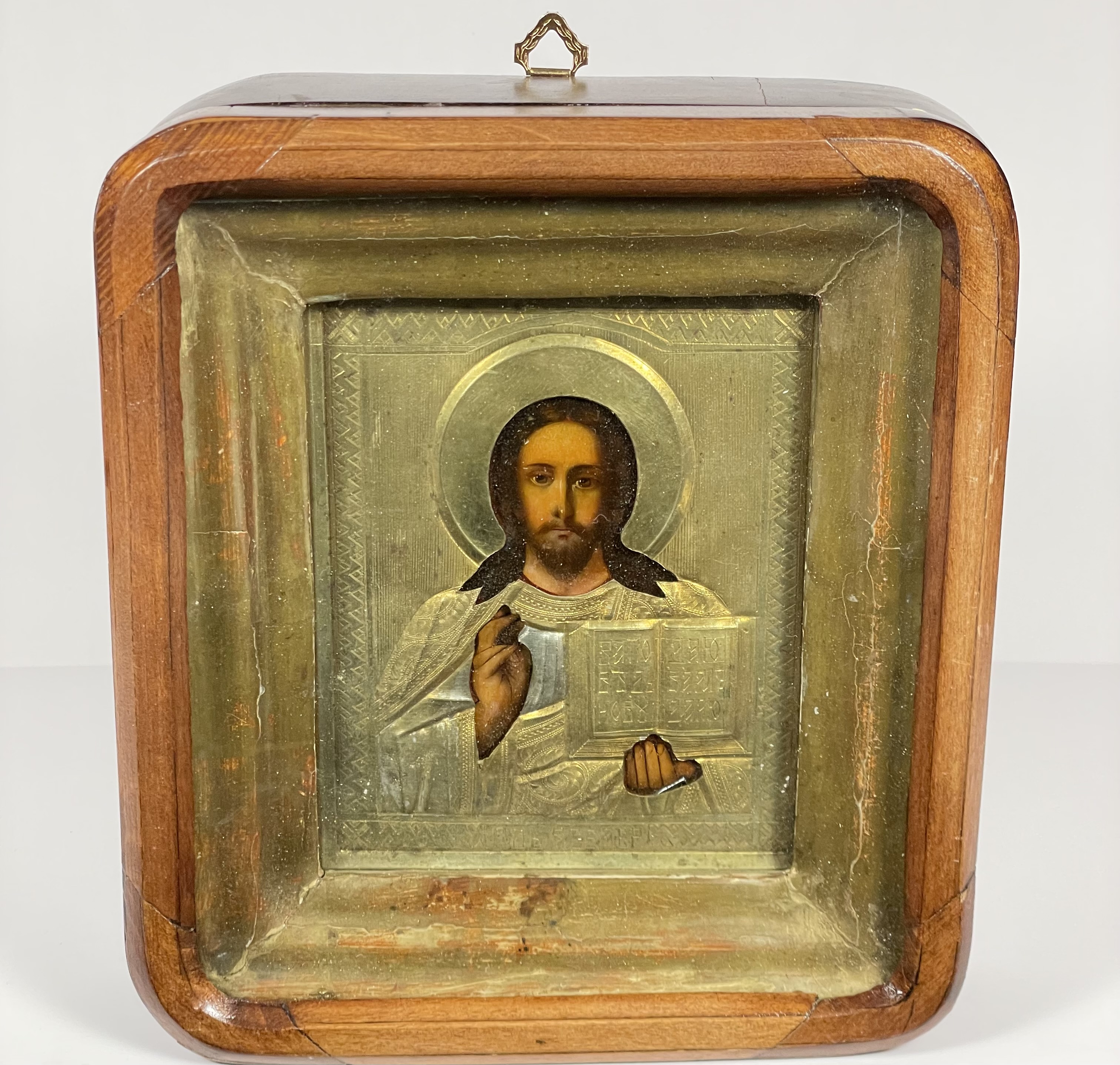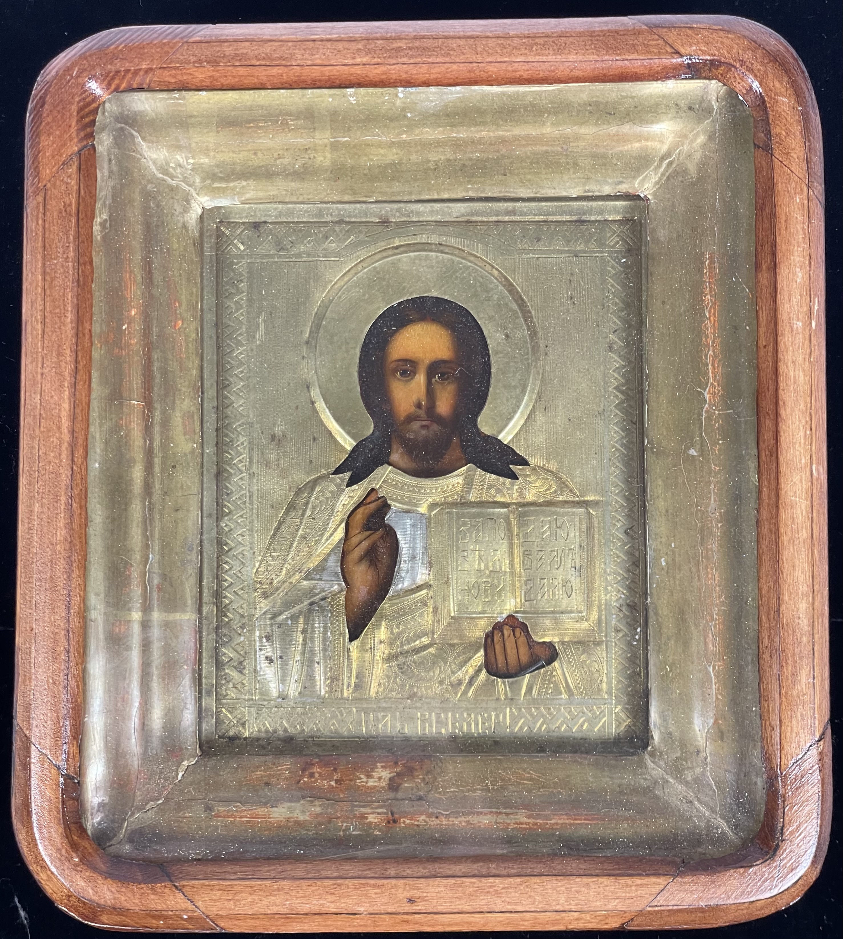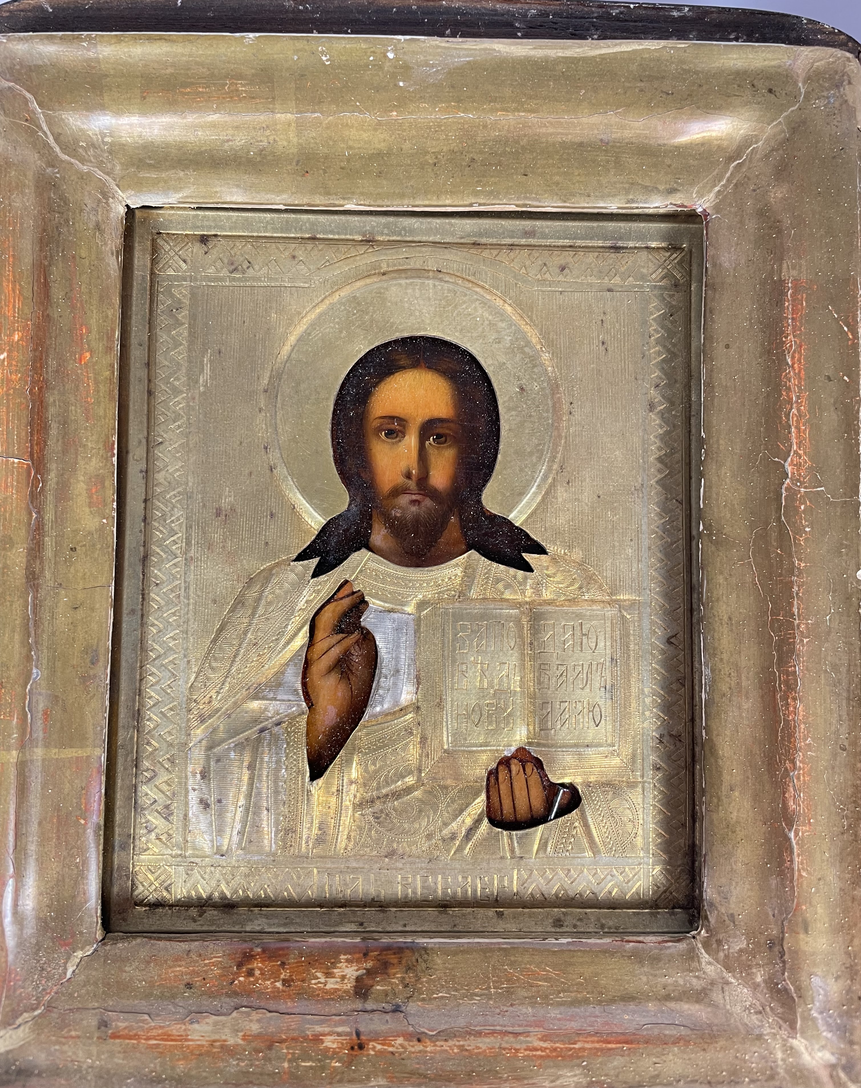 Christ Pantocrator refers to a specific depiction of Christ. The most common translation of Pantocrator is "Almighty" or "All-powerful". In this understanding, Pantocrator is a compound word formed from the Greek words for "all" and the noun "strength" (κρατος). This is often understood in terms of potential power, i.e., the ability to do anything, omnipotence. The iconic image of Christ Pantocrator was one of the first images of Christ developed in the Early Christian Church and remained a central icon of the Eastern Orthodox Church. Christ is depicted half-length, holding the Gospels in his left hand and making the blessing gesture with his right. The Gospels are opened on John 13: 24 “A new command I give you: Love one another.”