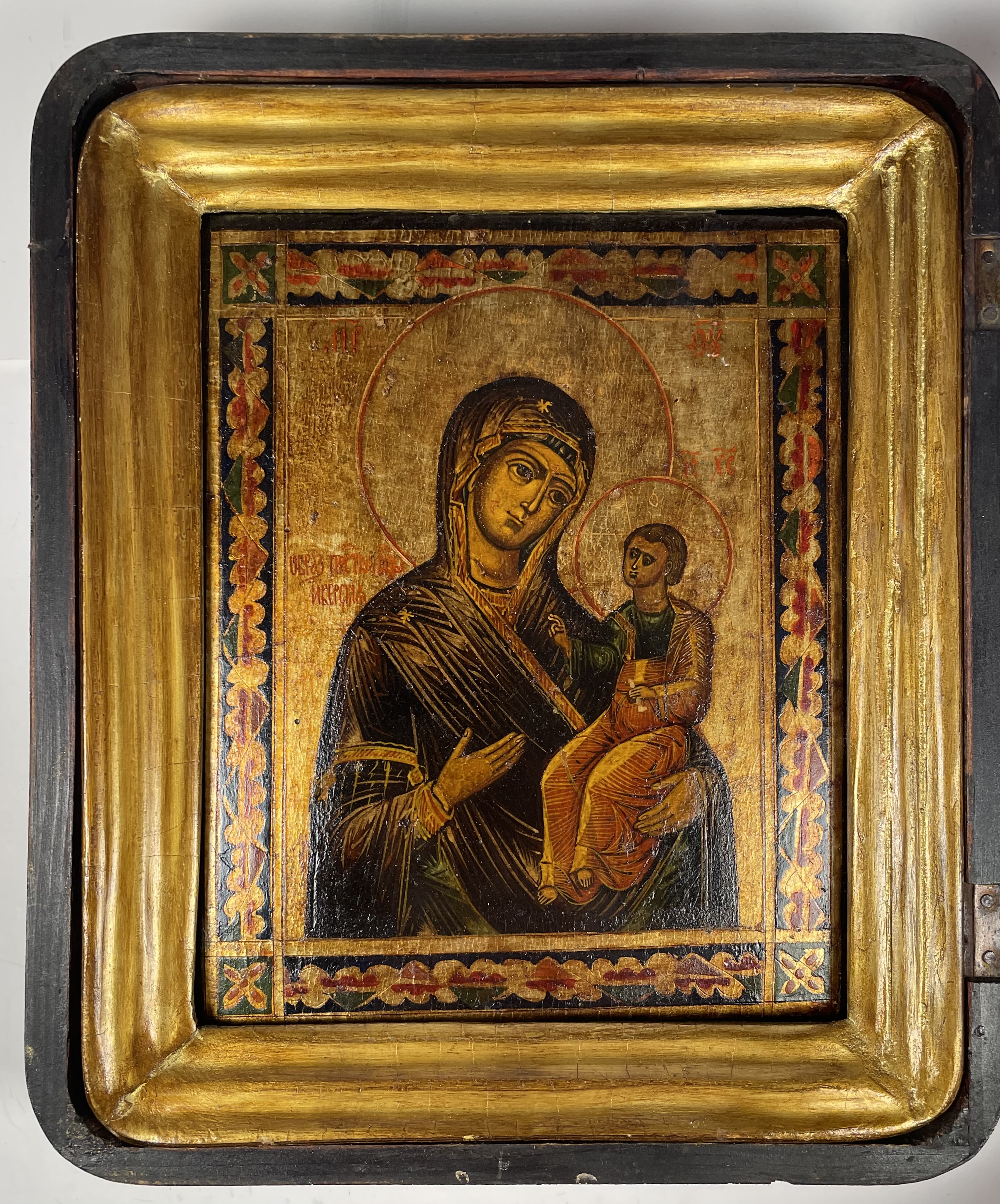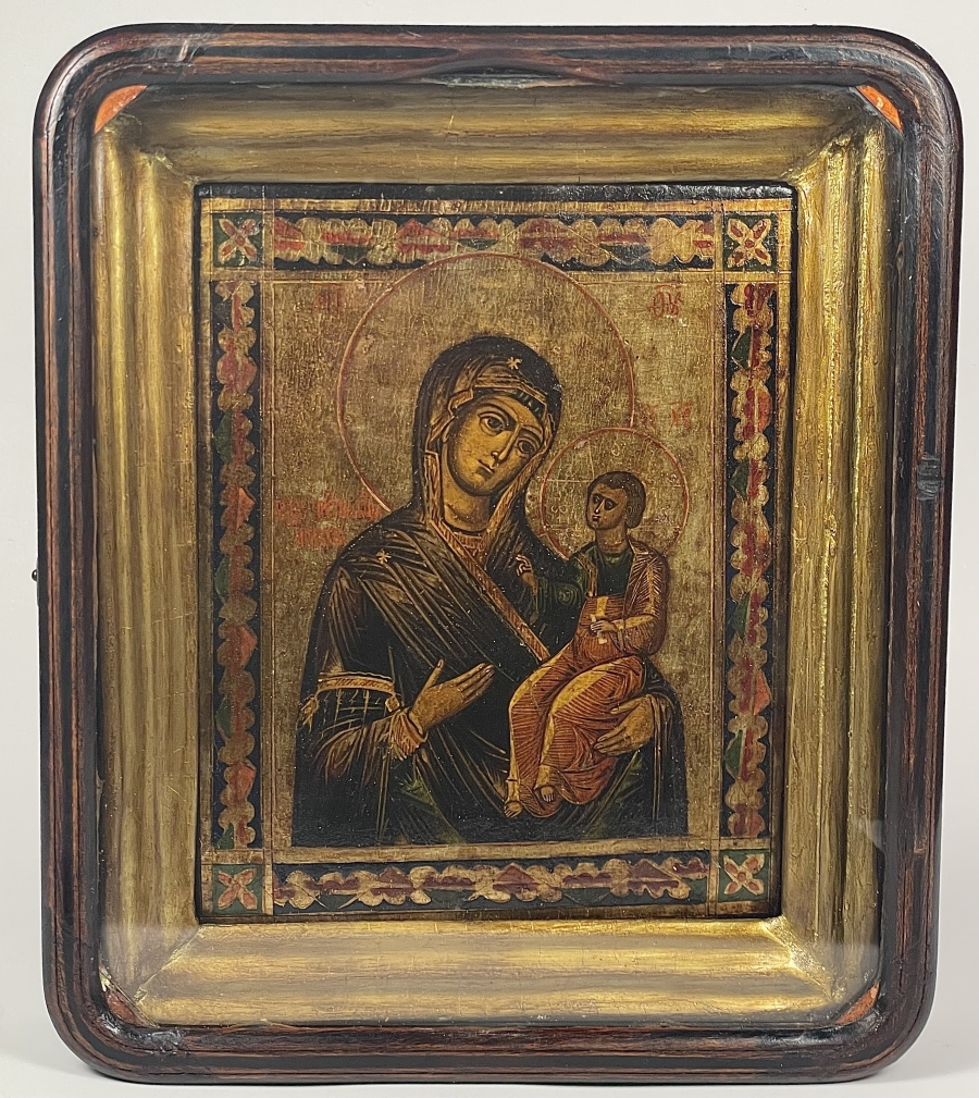 Our Lady of Iveron is the Eastern Orthodox icon of the Virgin Mary which, according to the Sacred Tradition, was painted by Luke the Evangelist. The icon is referred to as "Wonderworking" meaning that numerous miracles have been attributed to the intercession of the Theotokos by persons praying before it. The original of this image is found in the Georgian Iveron monastery on Mount Athos in Greece, where it is believed to have been since the year 999.