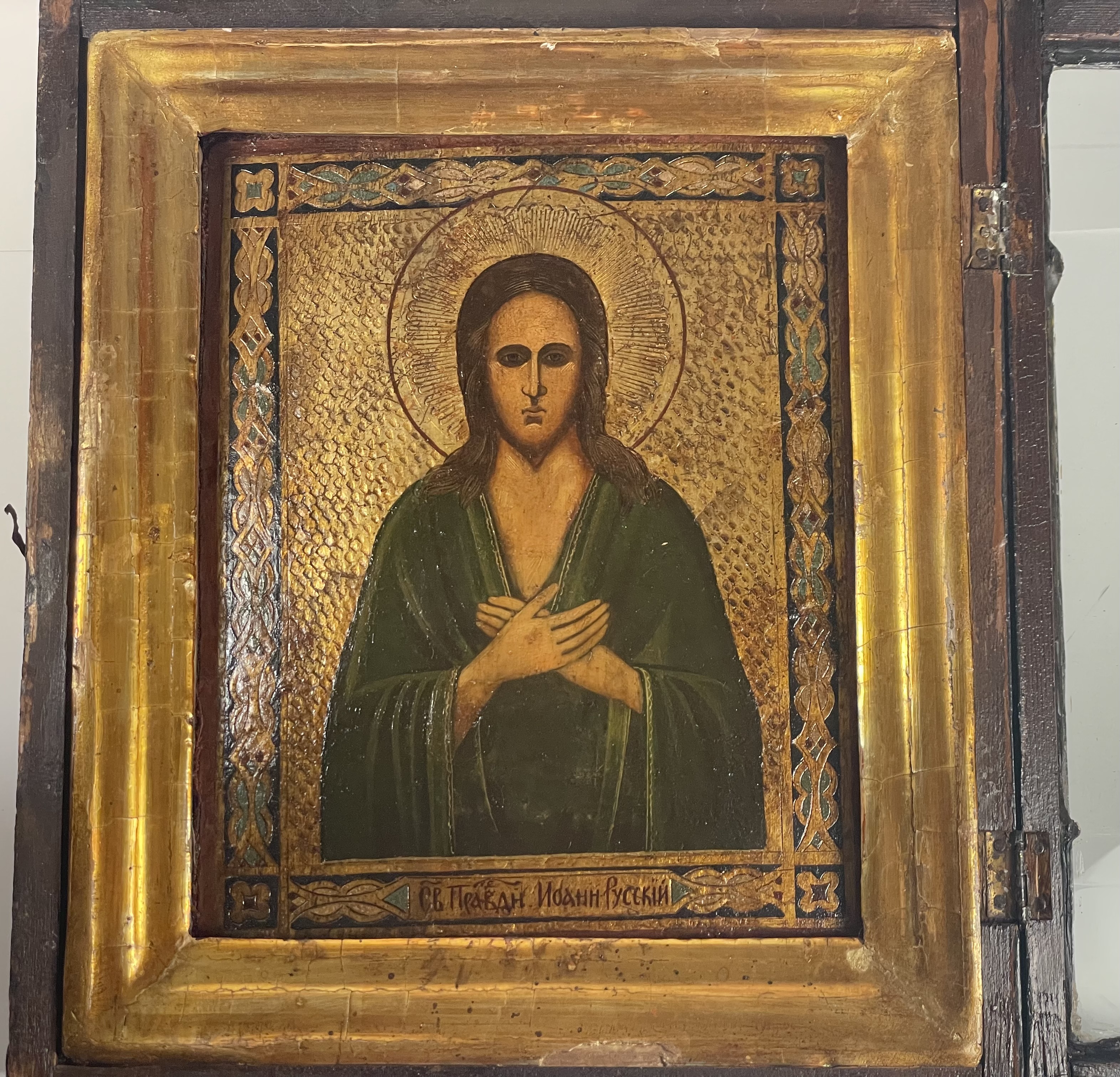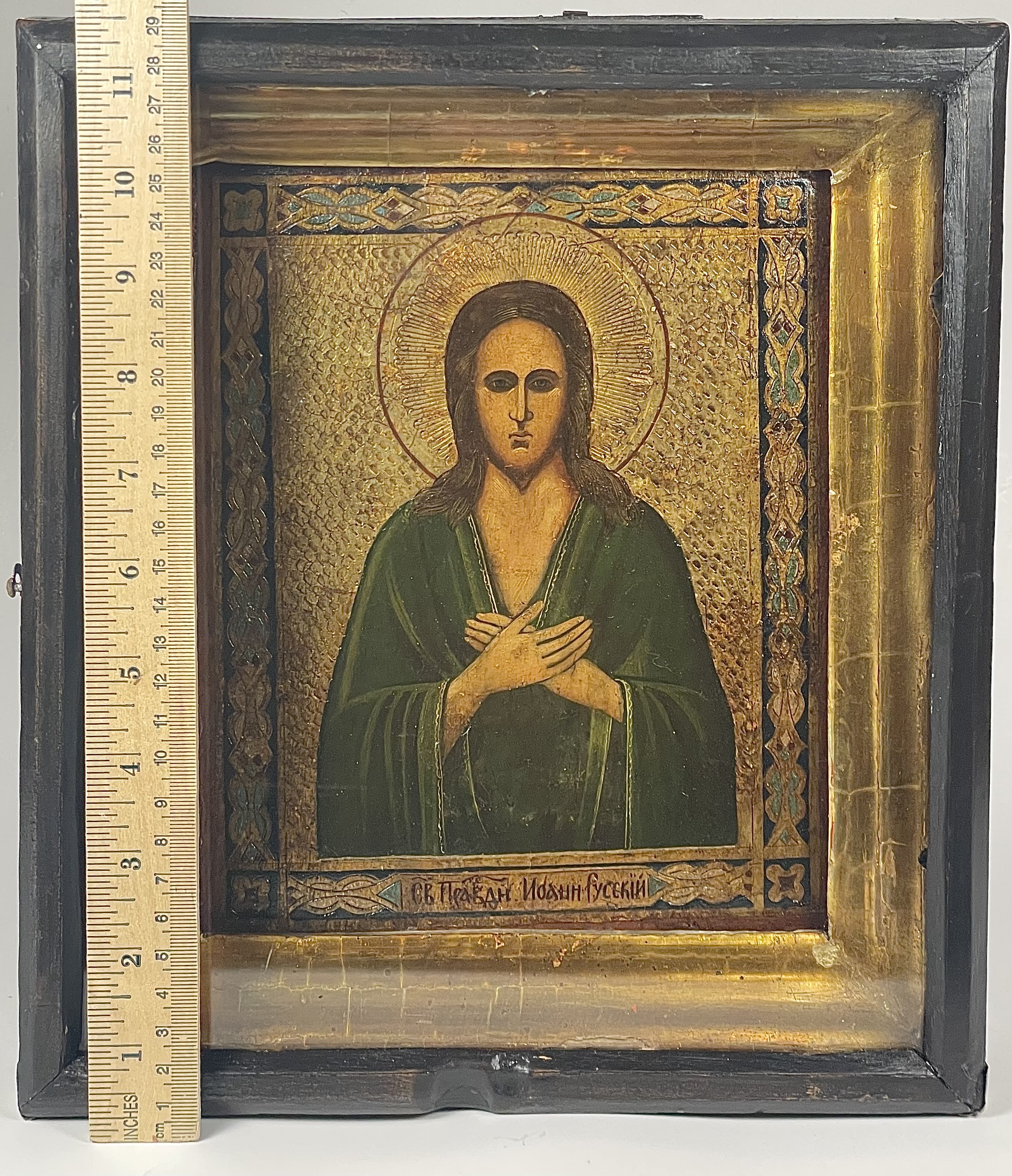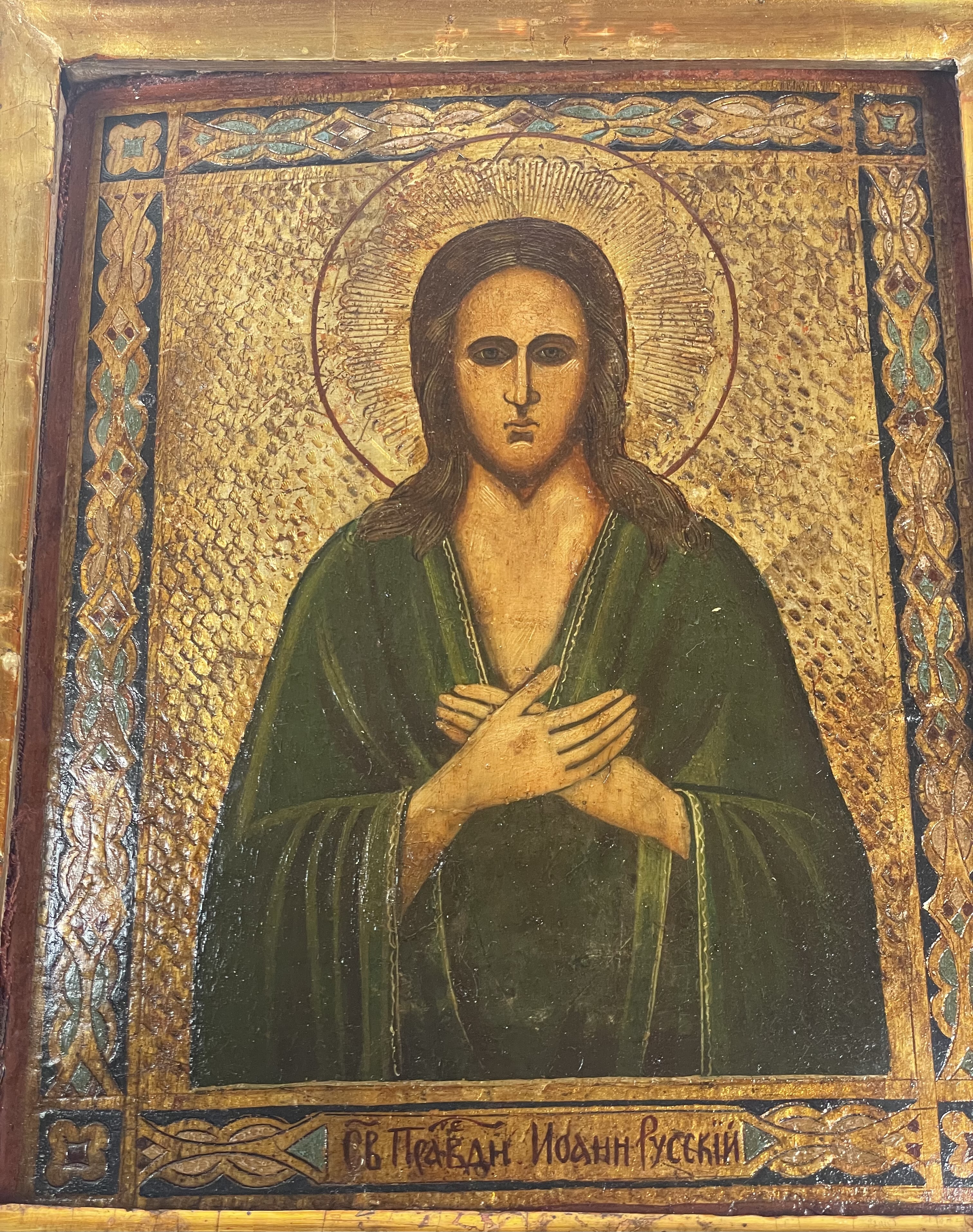 Saint John the Russian (Иоанн Русский) (†1730) is one of the most renowned saints in the Eastern Orthodox Church. Being a prisoner of war and a slave to a Turkish Ağa, he became famous and respected even by his Muslim master for his humility, steadiness in faith and benevolence. For his kind-heartedness, John earned the love and trust of the Ağa who offered to let him live as a free man in a separate house. However, John refused, saying: "My patron is Lord, and no one is above Him. He predestined me to live as a slave in a foreign land; seems, it must be so for my salvation". His holy relics are claimed to be undecayed and wonder-working; there are traditions that this saint particularly helps sick children and those who suffer from cancer. A relic of his right hand is in the Russian Monastery of St Panteleimon on Athos. His Major shrine is the Church of Saint John the Russian in Prokopi, Greece and his feast is celebrated on June 9/May 27. Saint John’s help is sought by travelers, and by those transporting things.