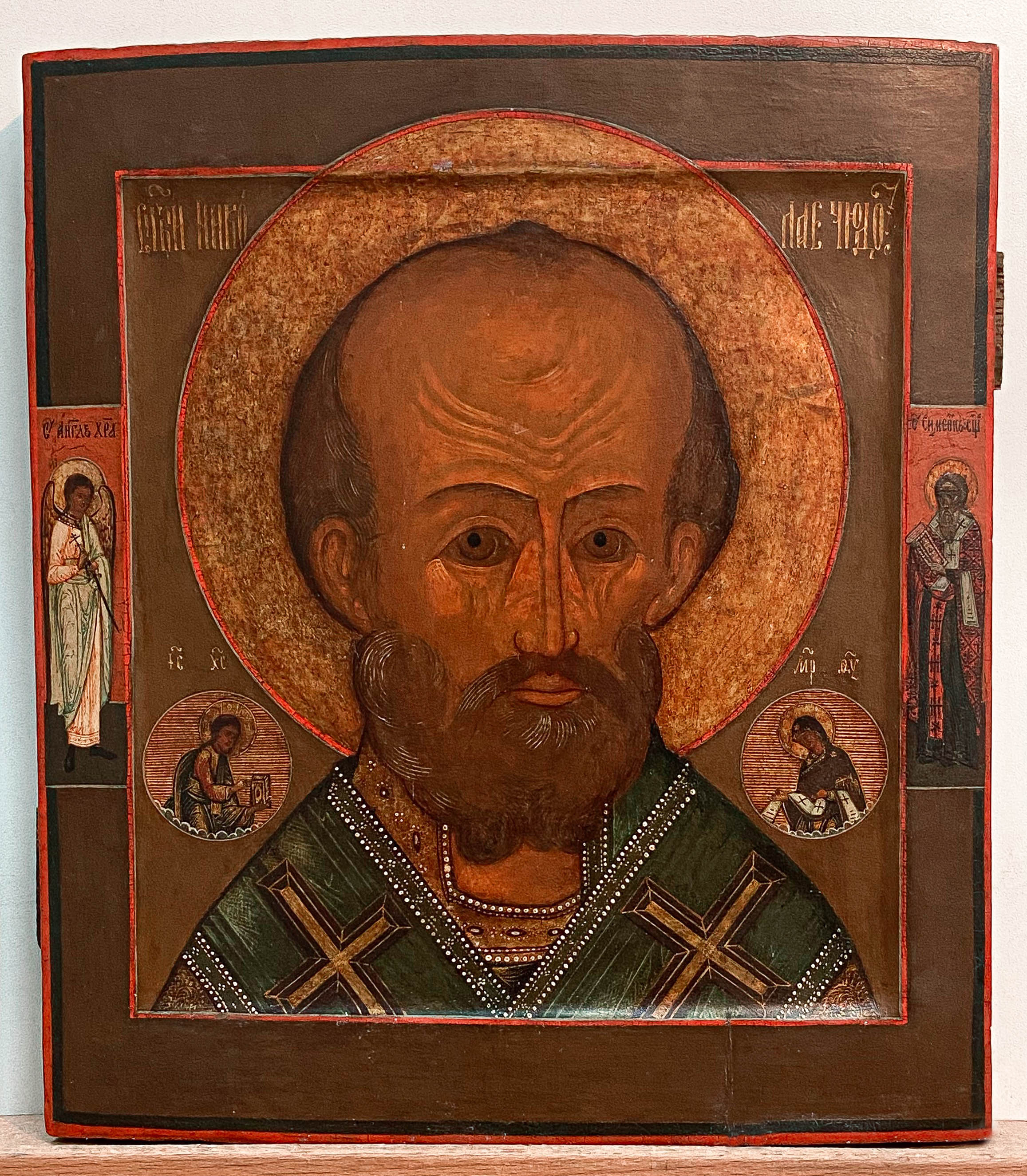 Saint Nicholas of Myra (†343), was a historic 4th-century Saint and Greek Bishop of Myra. Because of the many miracles attributed to his intercession, he is also known as Nikolas the Wonderworker. He had a reputation for secret gift-giving, such as putting coins in the shoes of those who left them out for him, and thus became the model for Santa Claus. His reputation evolved among the faithful, as was common for early Christian saints.