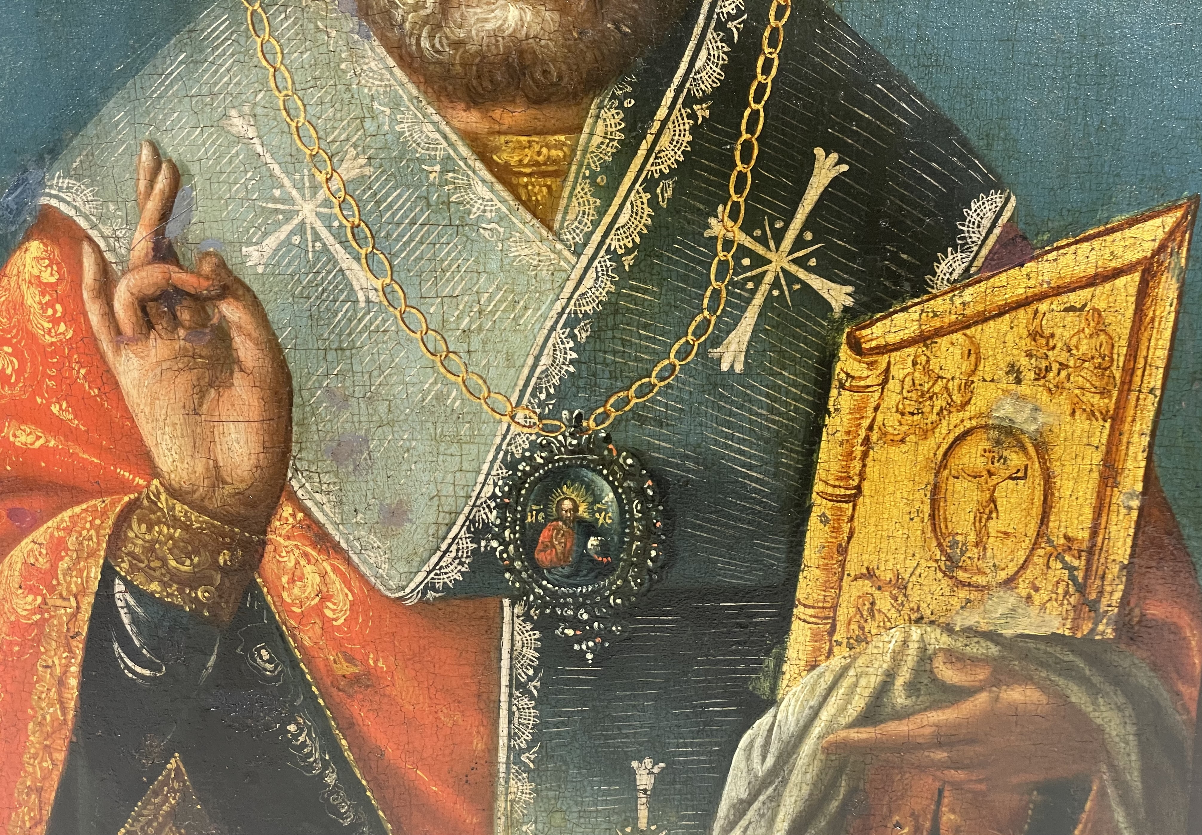 Saint Nicholas of Myra (†343), was a historic 4th-century Saint and Greek Bishop of Myra. Because of the many miracles attributed to his intercession, he is also known as Nikolas the Wonderworker. He had a reputation for secret gift-giving, such as putting coins in the shoes of those who left them out for him, and thus became the model for Santa Claus. His reputation evolved among the faithful, as was common for early Christian saints.