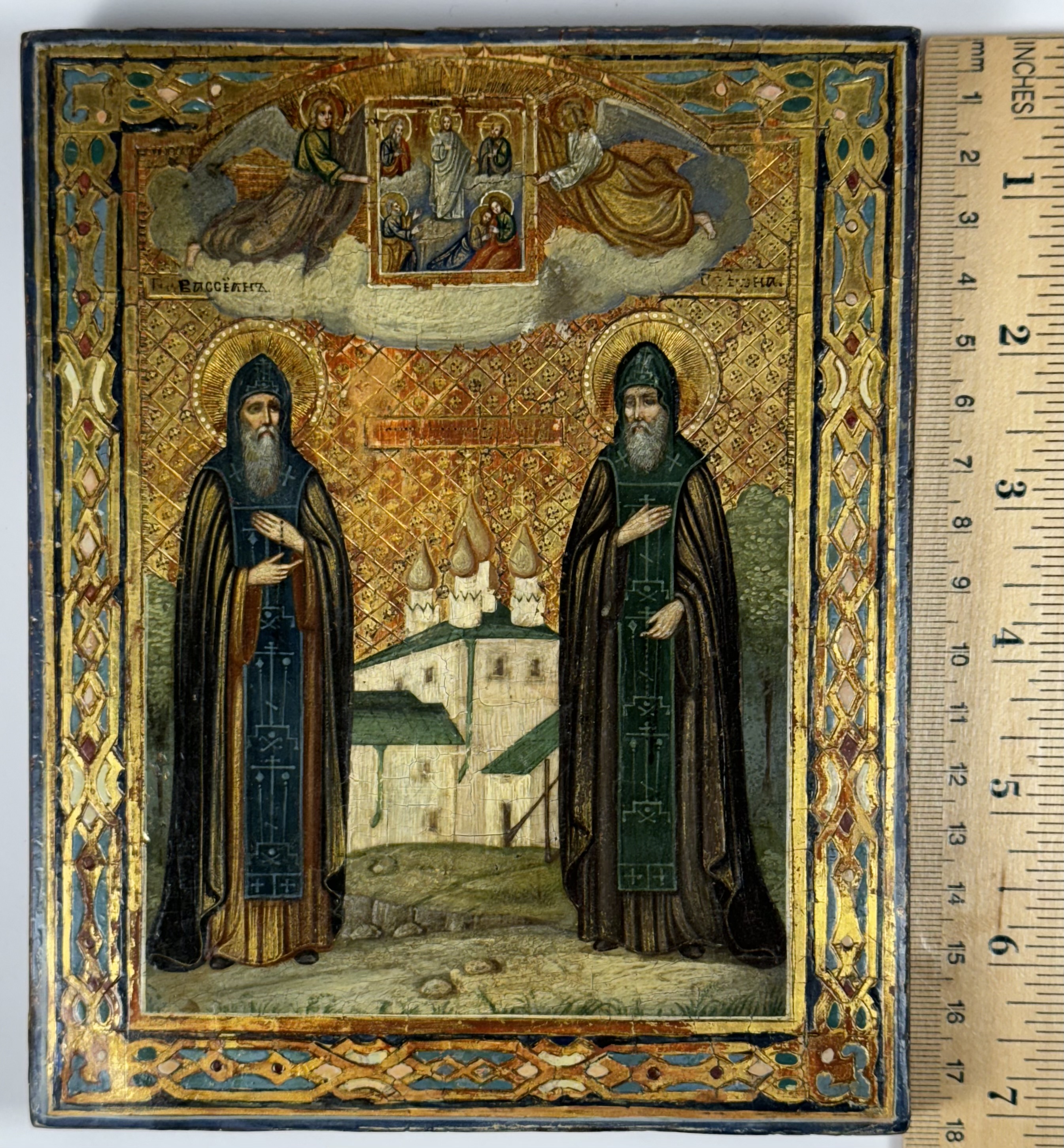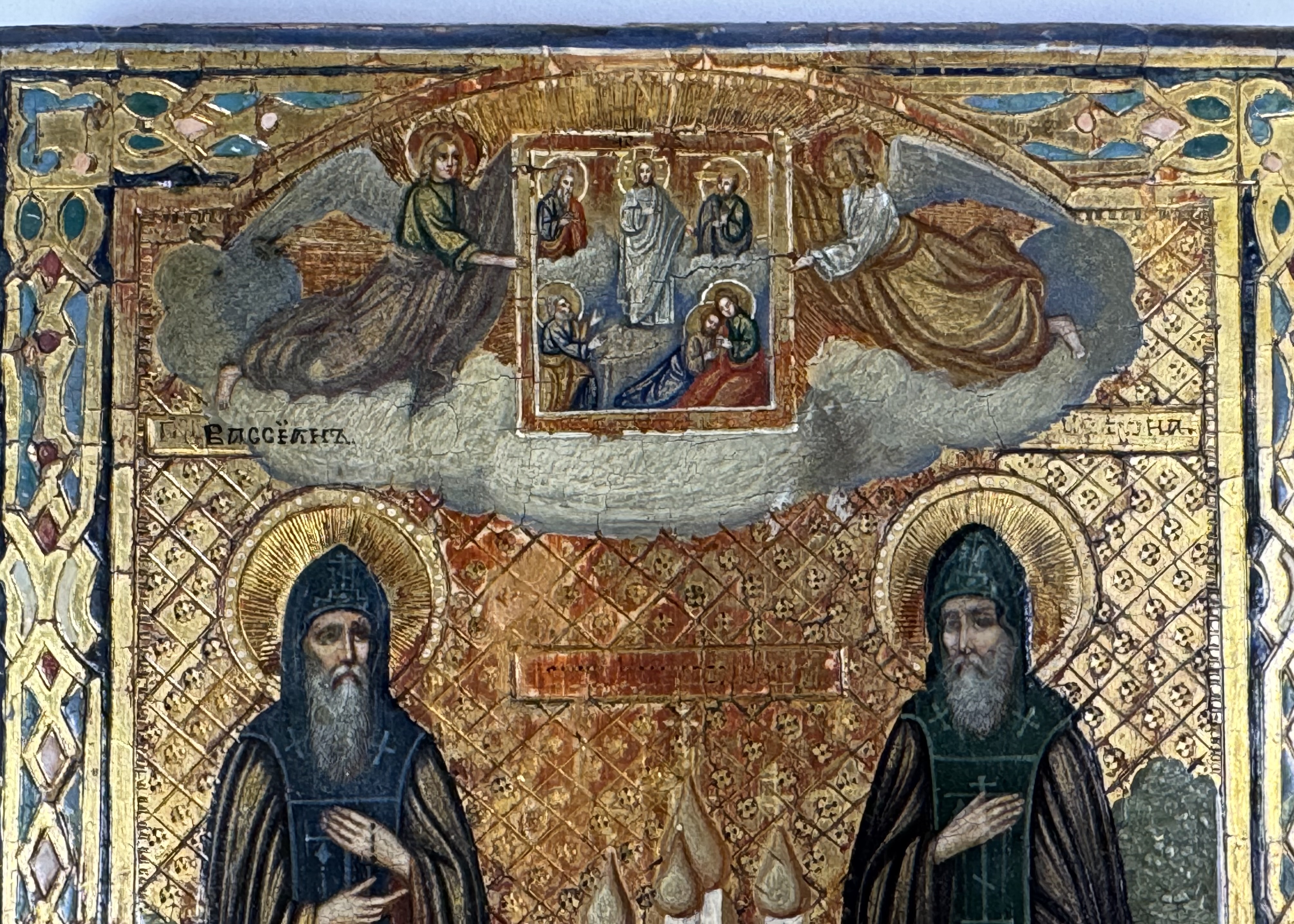 Venerable Vassian and Jonah were monks of the Solovetsky Transfiguration Monastery, disciples of the holy Abbot Philip, later Metropolitan of Moscow († 1570; commemorated January 9/22). During the construction of the cathedral church of the Solovetsky monastery in 1561, the monks Vassian and Jonah were sent for lime. When the ships were returning to the island on which the Solovetsky Monastery stood, they were caught in a storm and drowned. But the Lord glorified the saints after death - their bodies were not touched by decay at the bottom of the sea. The holy relics of Saints Vassian and Jonah were found by peasants and buried. Shortly after, the saints appeared in a dream to the elder of the Trinity-Sergius Monastery, who managed the salt pans in Unsky Posad, and in 1599 he erected a chapel over the graves of the saints. Subsequently, on the occasion of many healings performed over their tombs, in 1623, Hieromonk Jacob founded a monastery there called Pertominskaya, and with royal contributions, a church was built in the name of the Dormition of the Mother of God. The memory of Saints Vassian and Jonah is celebrated twice a year: June 5/18 - the discovery of holy relics and June 12/25.
