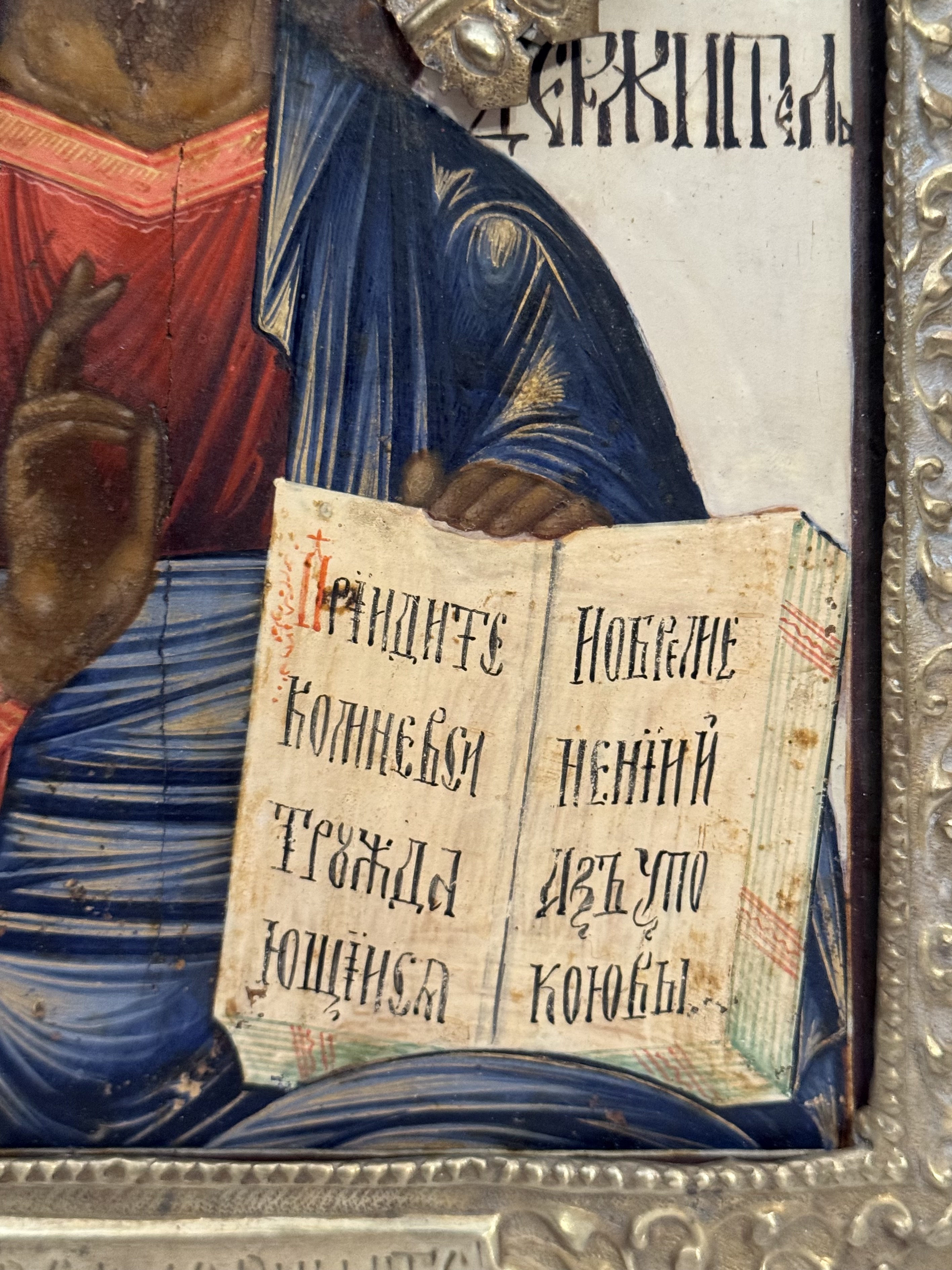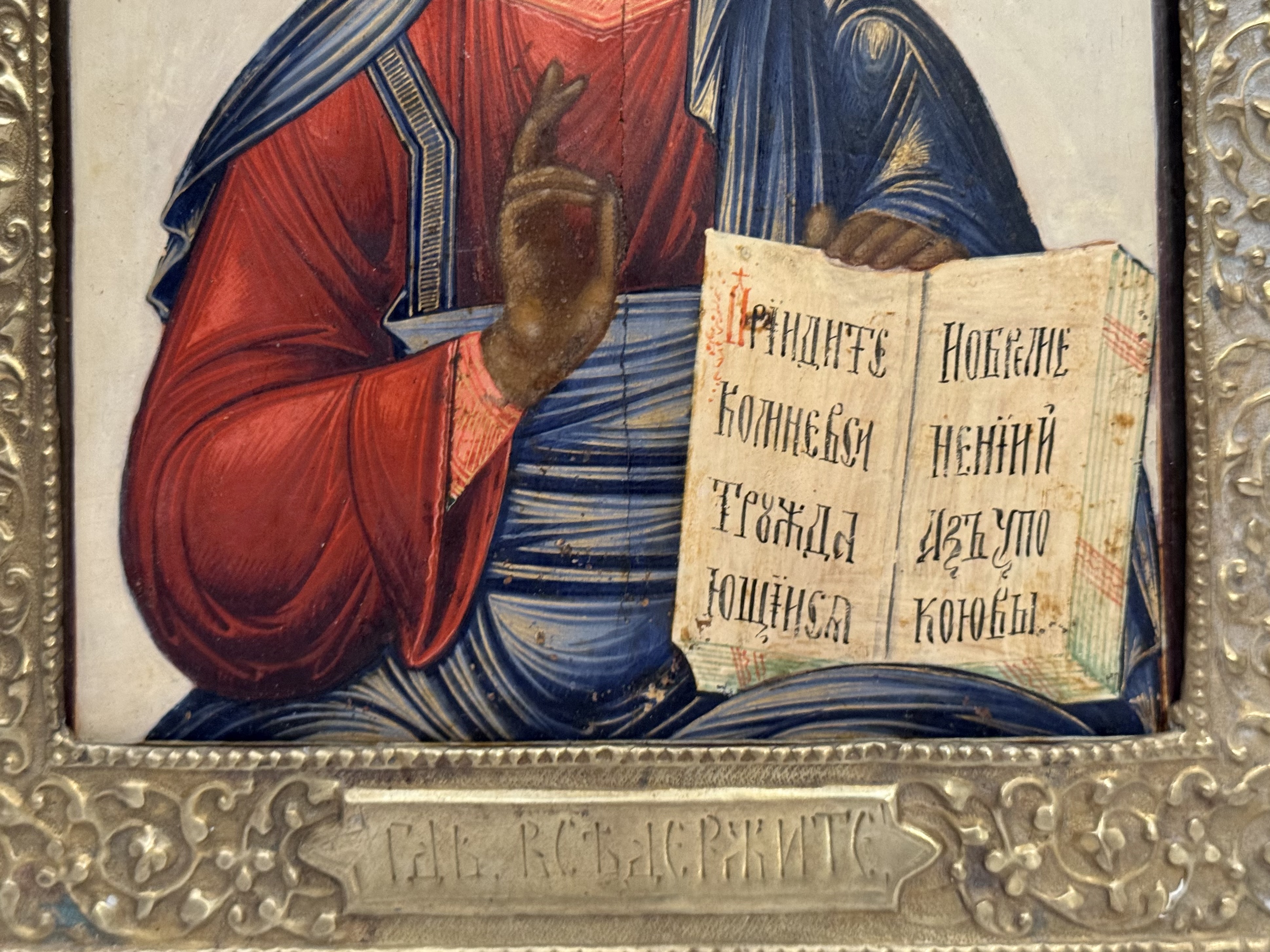 Russian Icon - Christ Pantocrator in brass revetment cover