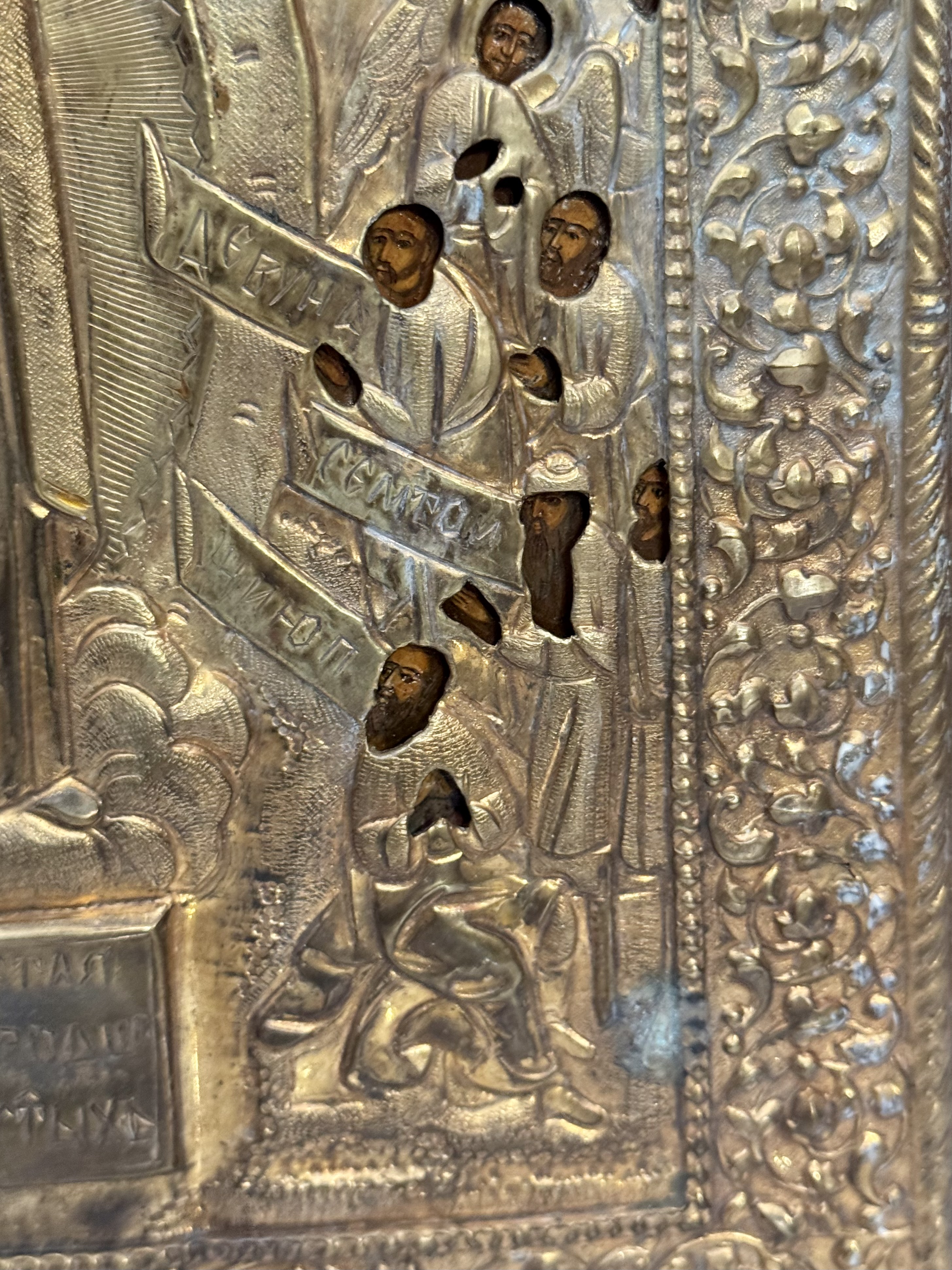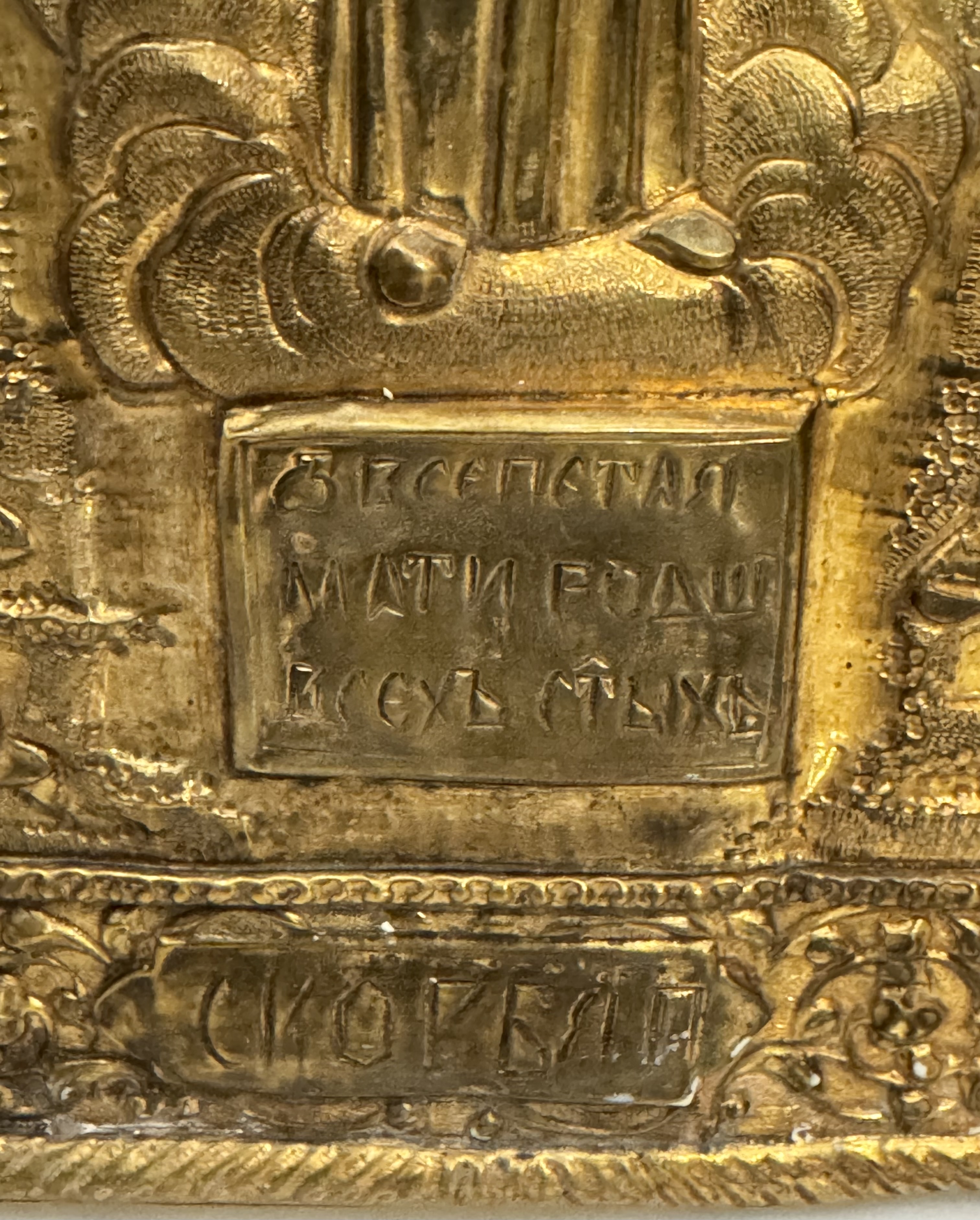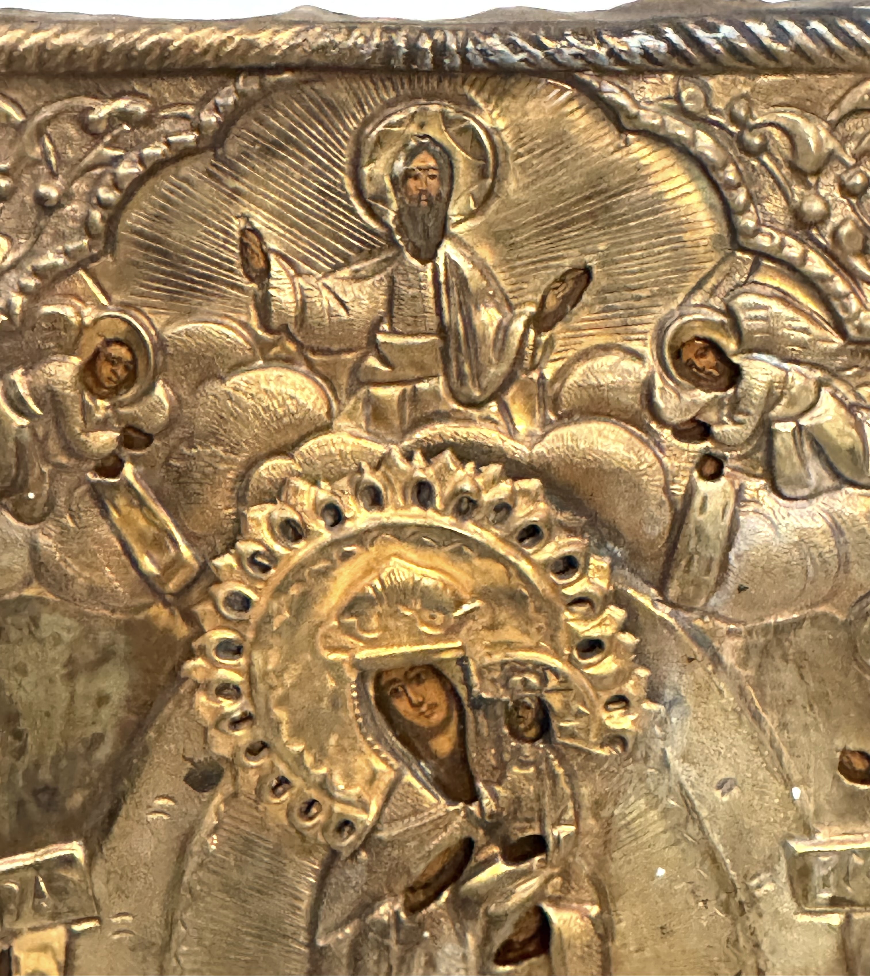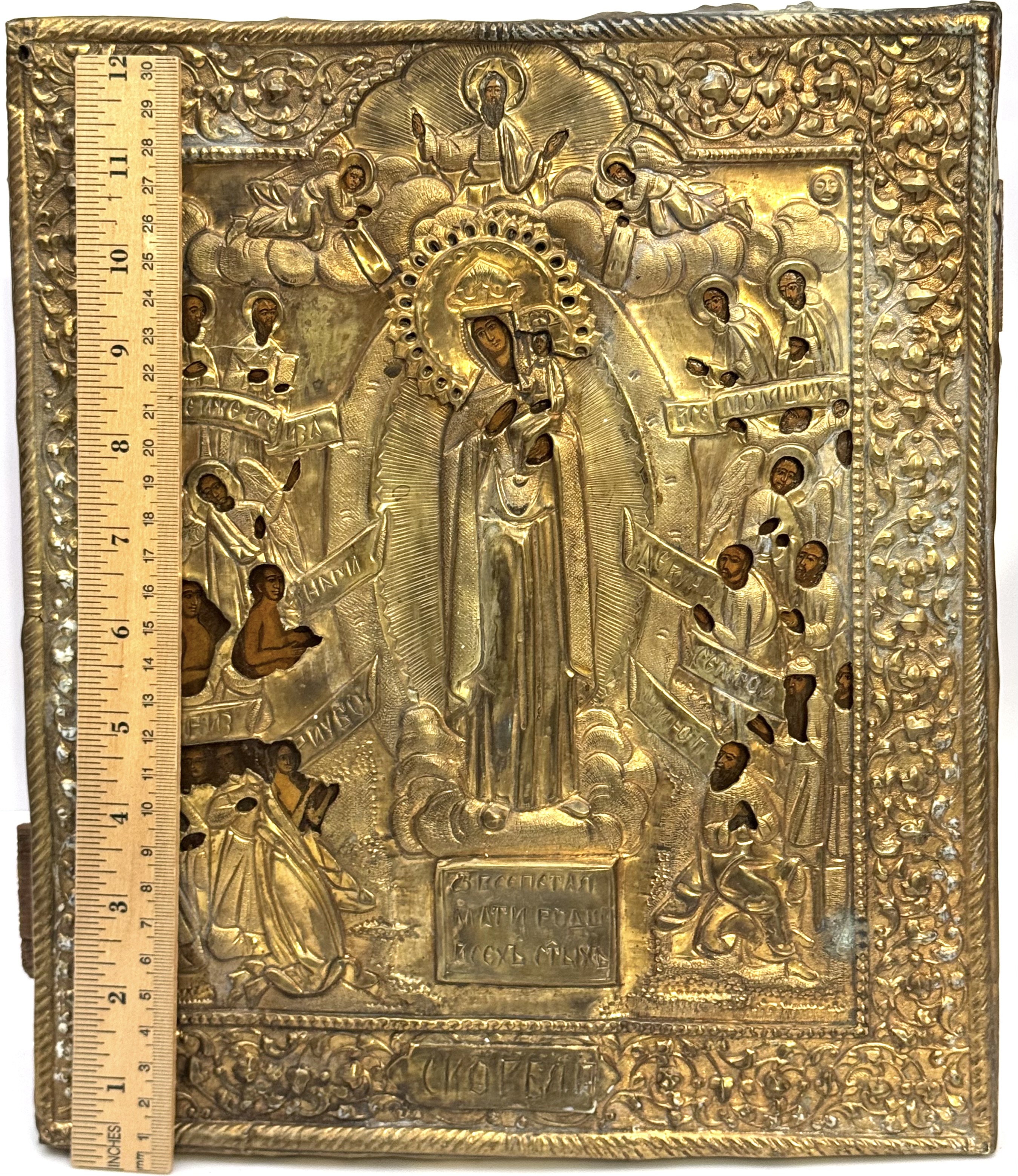 Russian Icon - Our Lady of Joy to All Who Sorrow in brass revetment cover