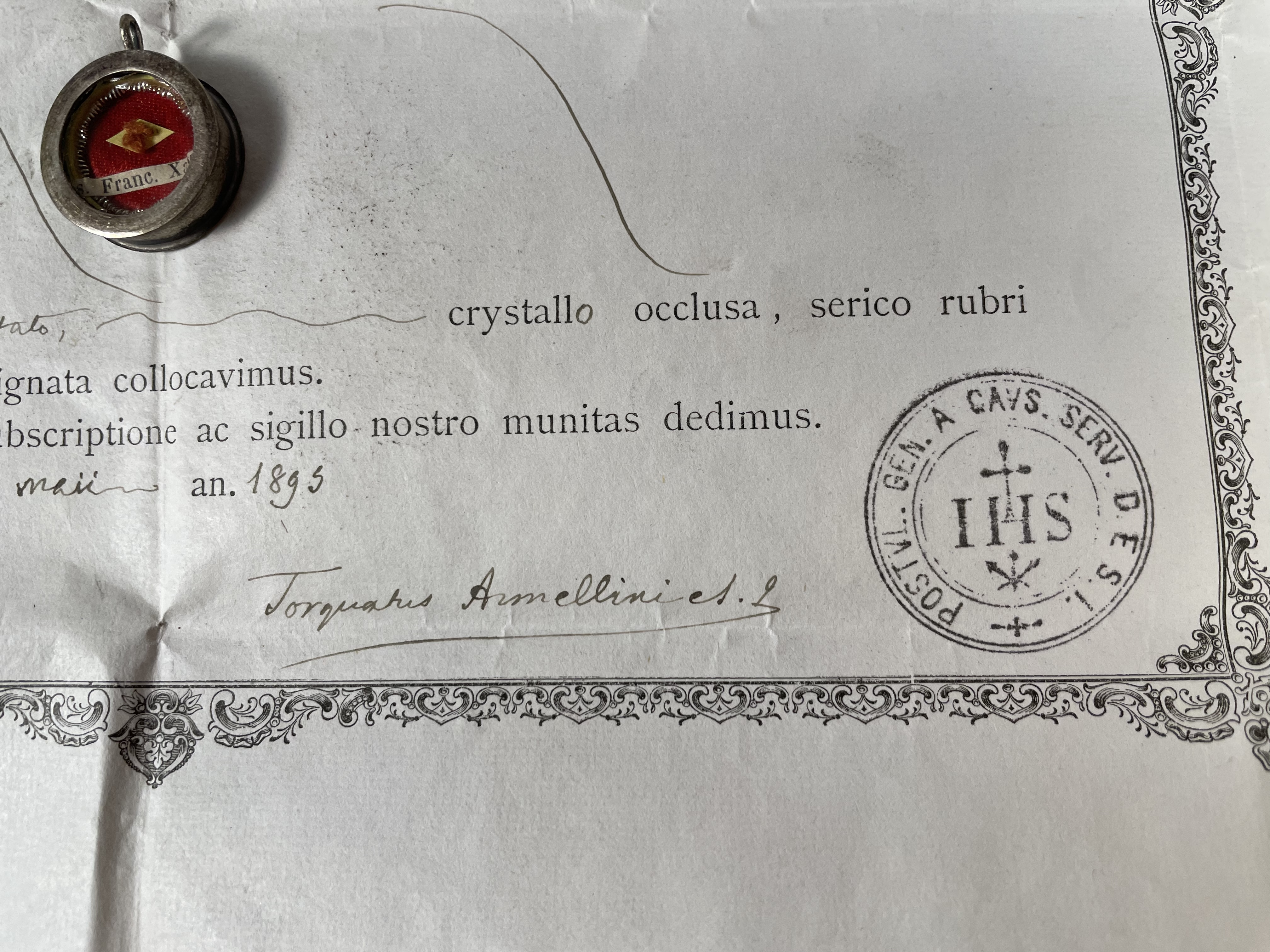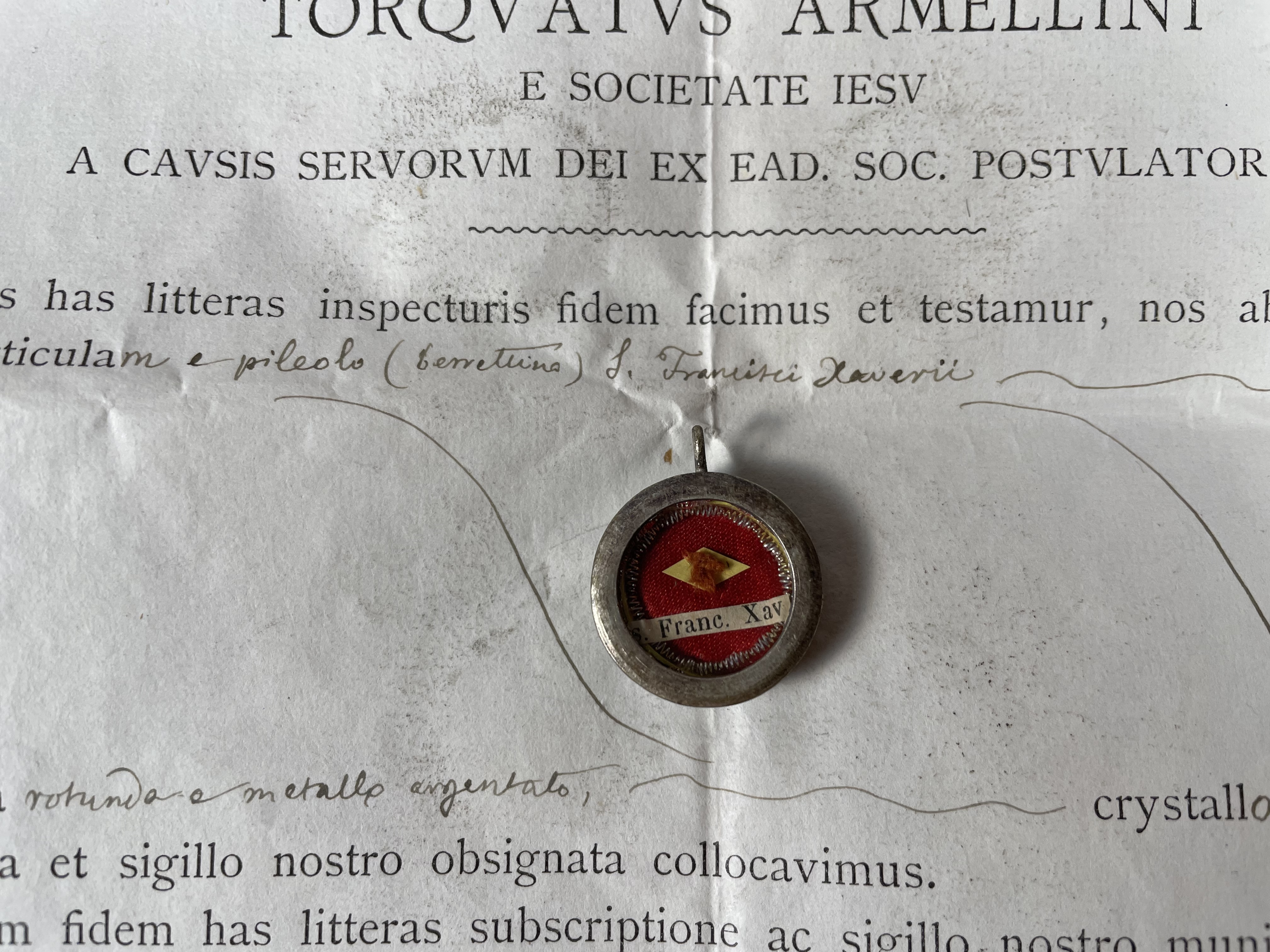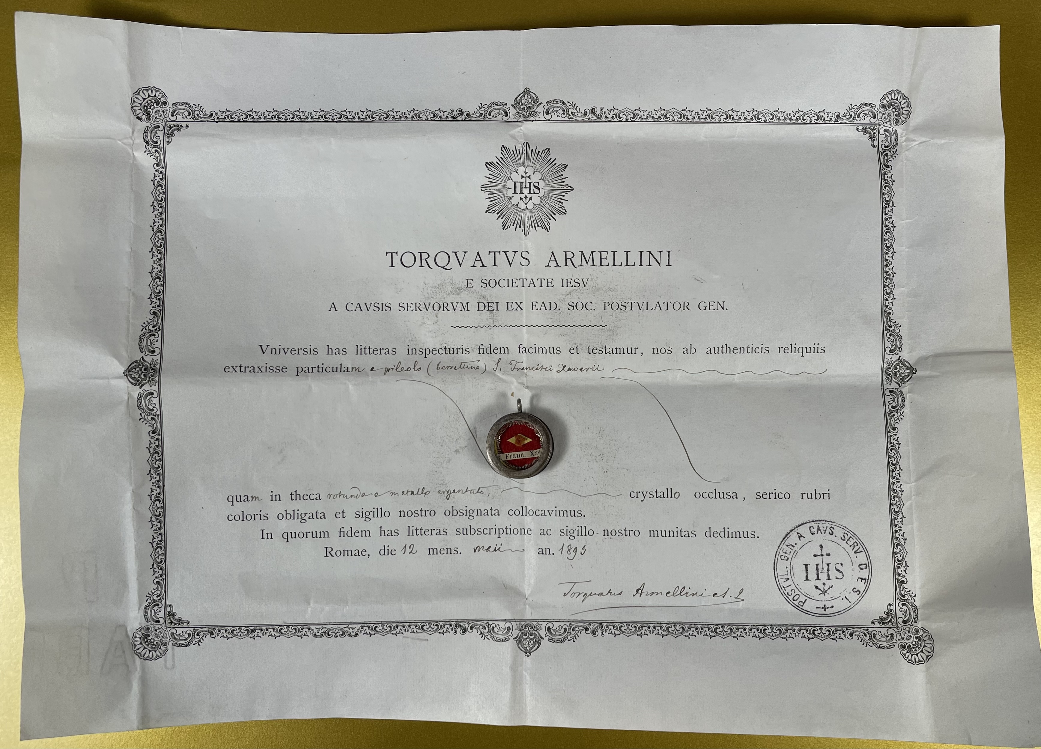 1895 Documented reliquary theca with relics of Saint Francis Xavier S.J. invoked against pandemics
