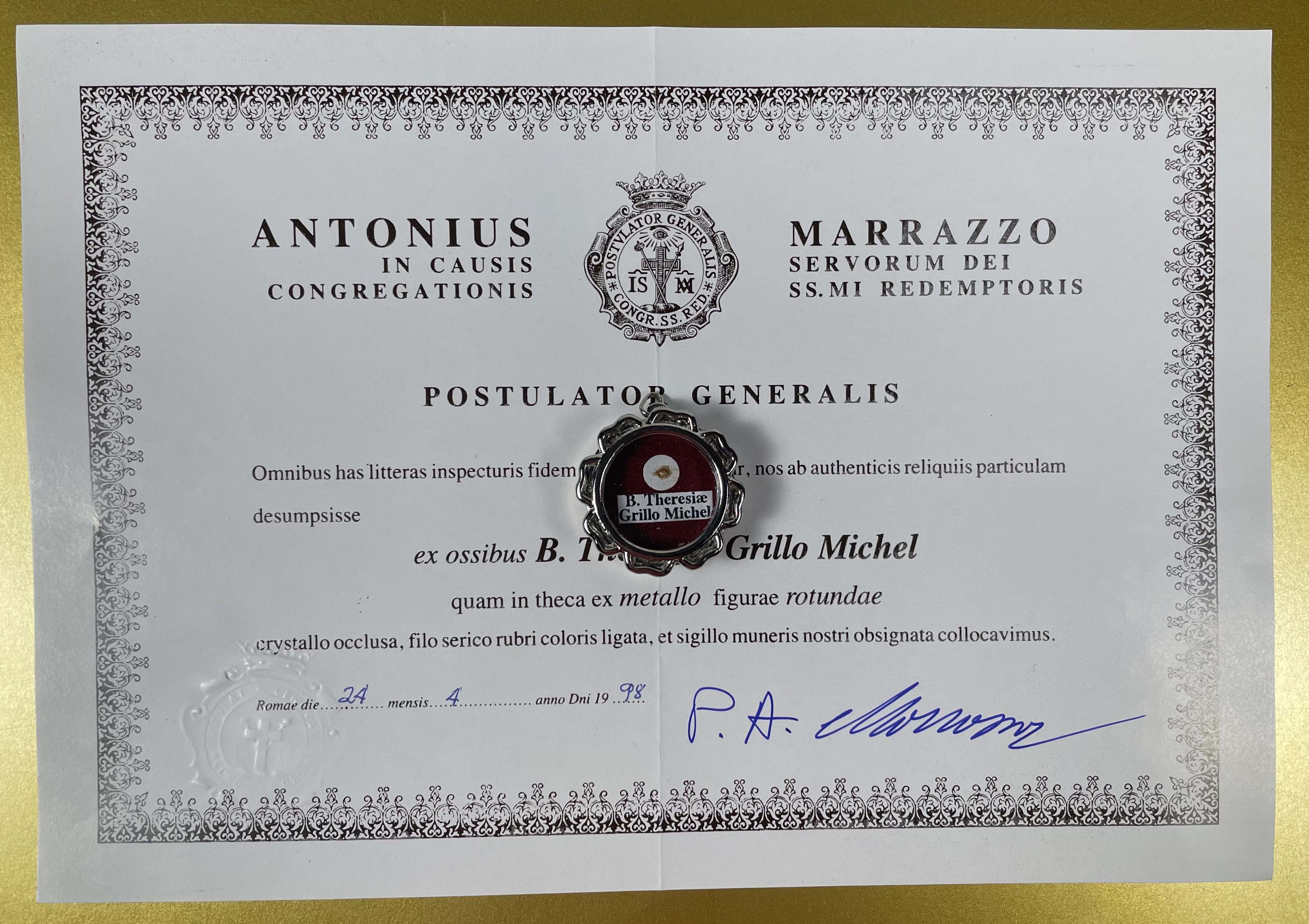 Blessed Teresa Grillo Michel (†1944), also known by her religious name Maria Antonia, was an Italian Roman Catholic nun and the founder of the Little Sisters of Divine Providence. Grillo was a widow who also part of the Third Order of Saint Francis; she entered the religious life following the death of her husband who died leaving her in a deep depression that came a call to help the poor. Grillo founded a religious congregation that would expand into Latin America and she would also maintain contact with important individuals such as Luigi Orione and Clelia Merloni both of whom she befriended. She was beatified in Turin in 24 of May 1998 and her feast day is commemorated on 25 January.